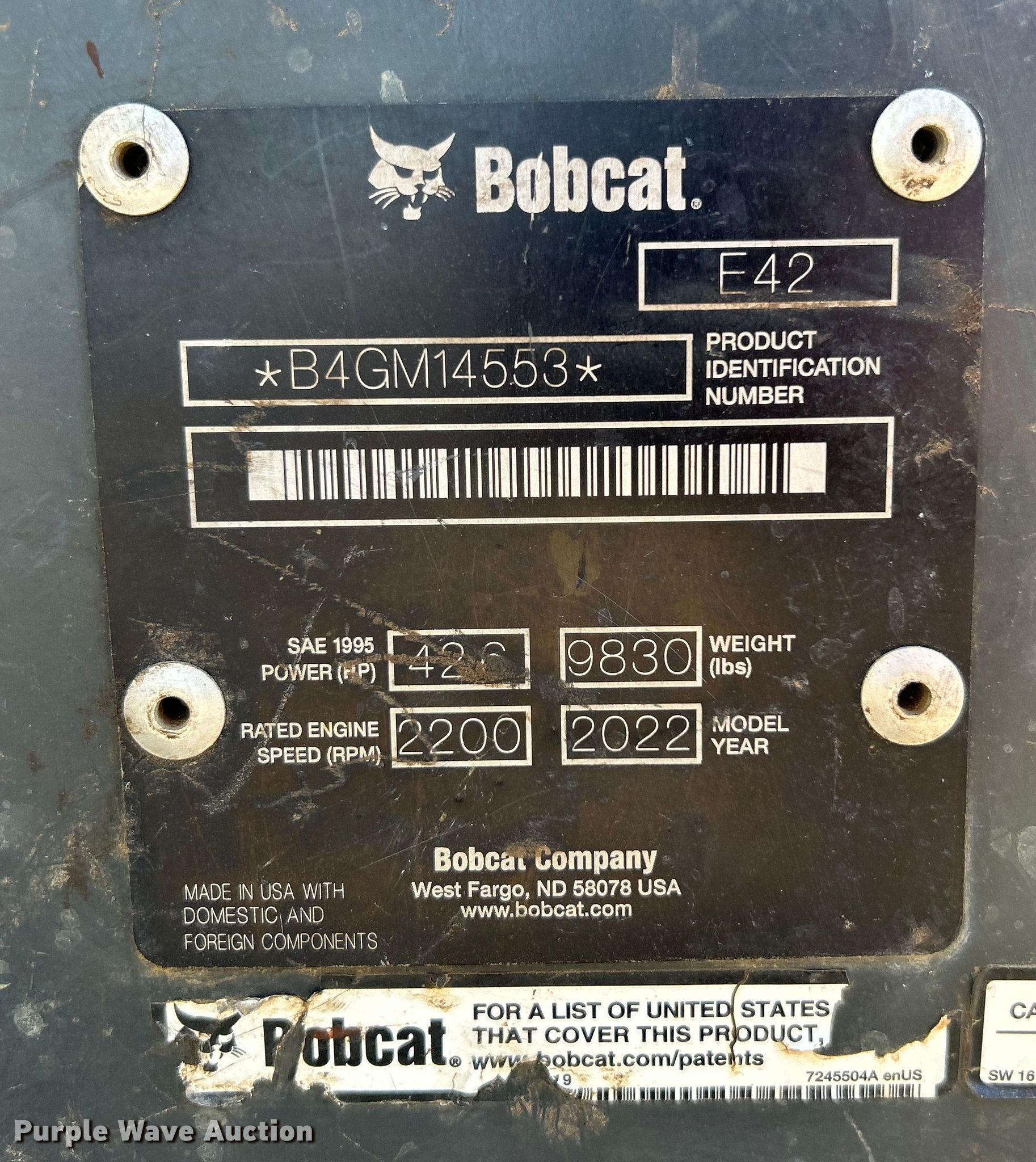 This 2022 Bobcat E42 mini excavator will sell to the highest bidder regardless of price.