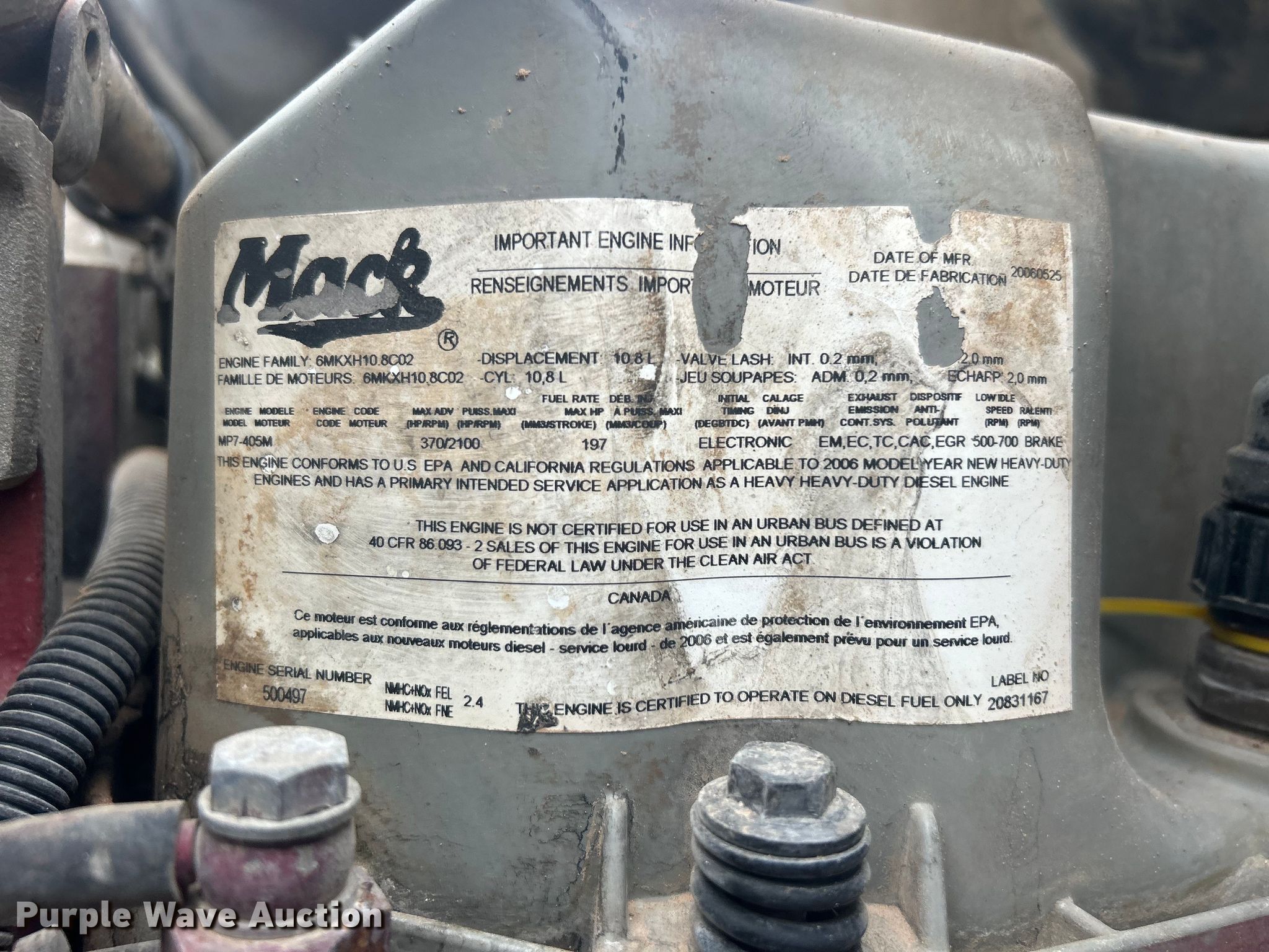 Purple Wave is selling a used Truck Tractor in Oklahoma. This item is a 2007 Mack CTP713 semi truck with the following: Miles: 552,459 on odometer, Hours: 28,357 on meter, VIN: 1M2AT04Y87M001195