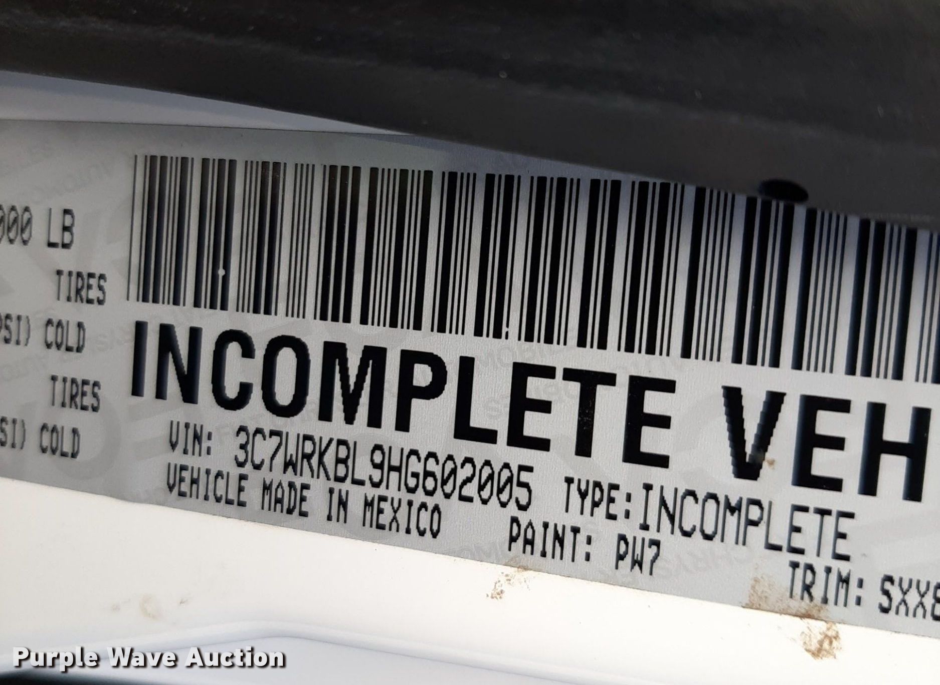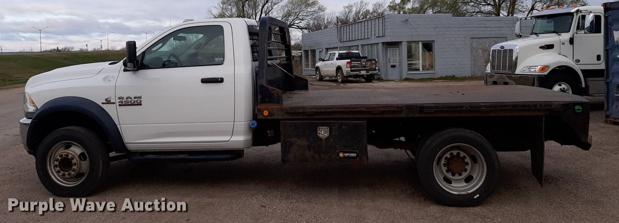 Purple Wave is selling a used Flat Bed Truck in Kansas. This item is a 2017 Dodge Ram 4500 flatbed truck with the following: Miles: 173,058 on odometer, VIN: 3C7WRKBL9HG602005