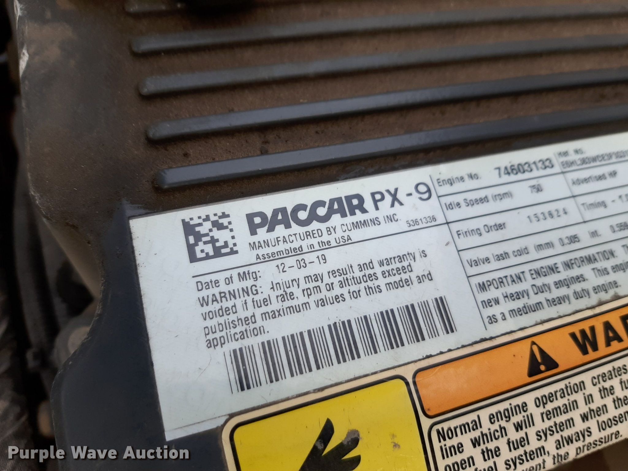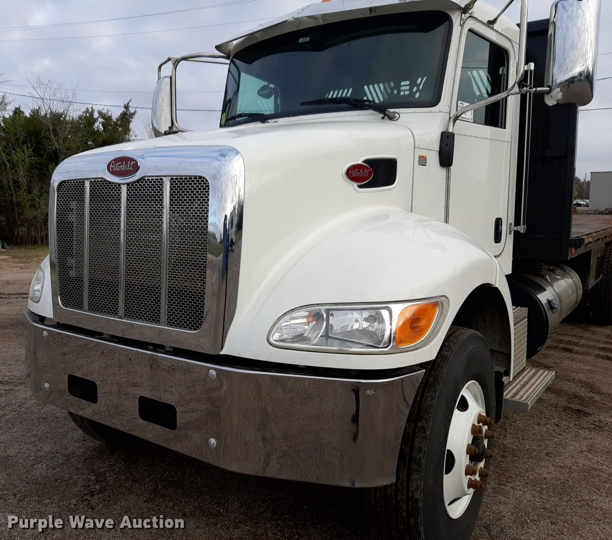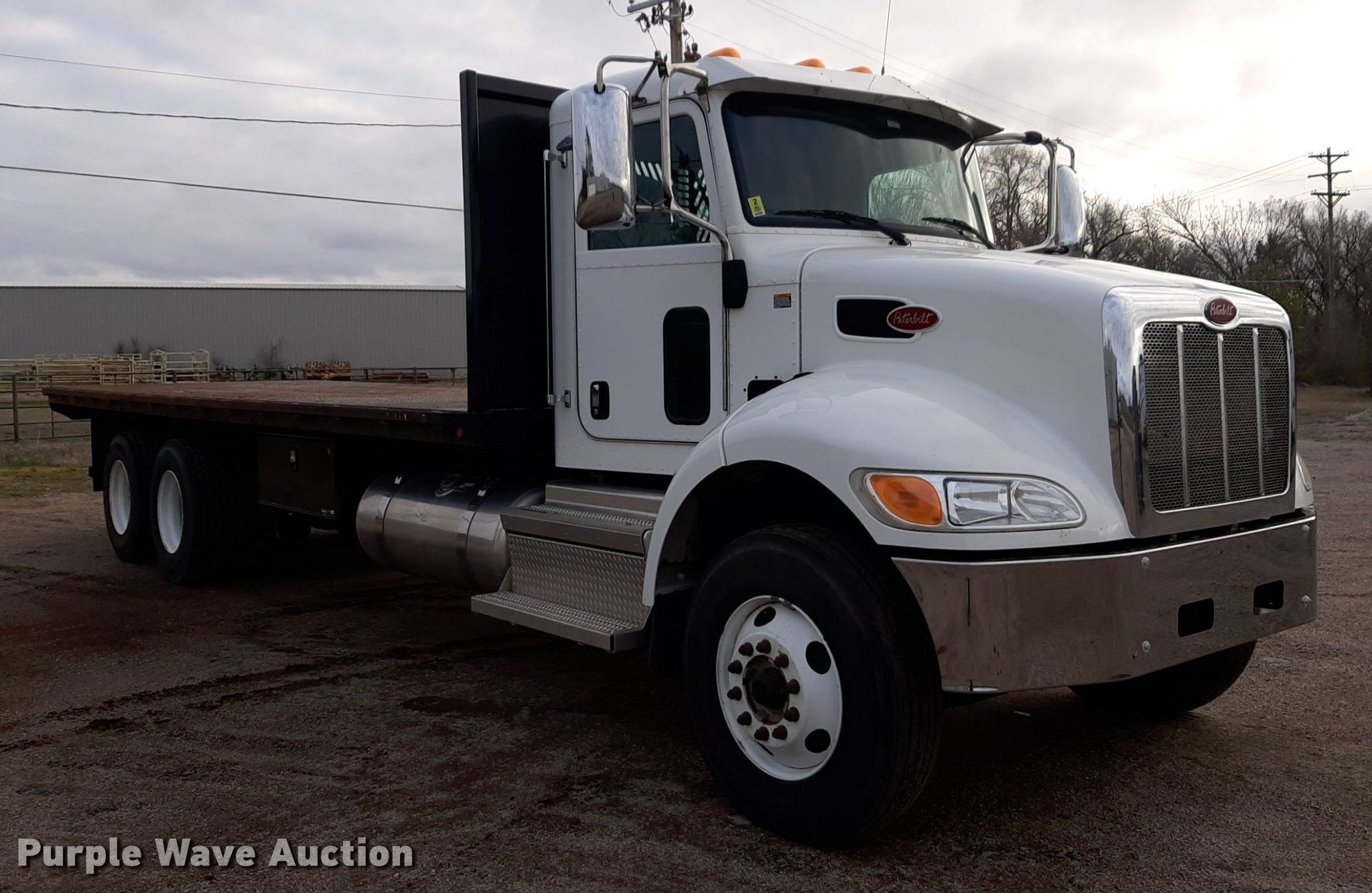 2020 Peterbilt 348 flatbed truck. Miles: 278,258 on odometer, Hours: 4,950 on meter, VIN: 2NP3LJ9X8LM730345. Engine Paccar PX-9, Displacement: 8.9L, Cylinders: 6, Fuel type: Diesel. Transmission Automatic. Chassis Axles: Tandem, Suspension: Air, Brakes: Air, GVWR: 53,220 lbs. Interior AC, Heat, Heated mirrors, Power windows, Power locks, Cruise control. Features Flatbed 26' L x 102" W. Tires Size: 11R22.5. Kansas title. Title distribution may be delayed up to 14 days from verification of funds. Augusta, KS 67010