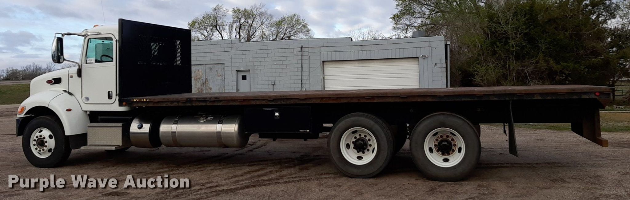 Purple Wave is selling a used Flat Bed Truck in Kansas. This item is a 2020 Peterbilt 348 flatbed truck with the following: Miles: 278,258 on odometer, Hours: 4,950 on meter, VIN: 2NP3LJ9X8LM730345