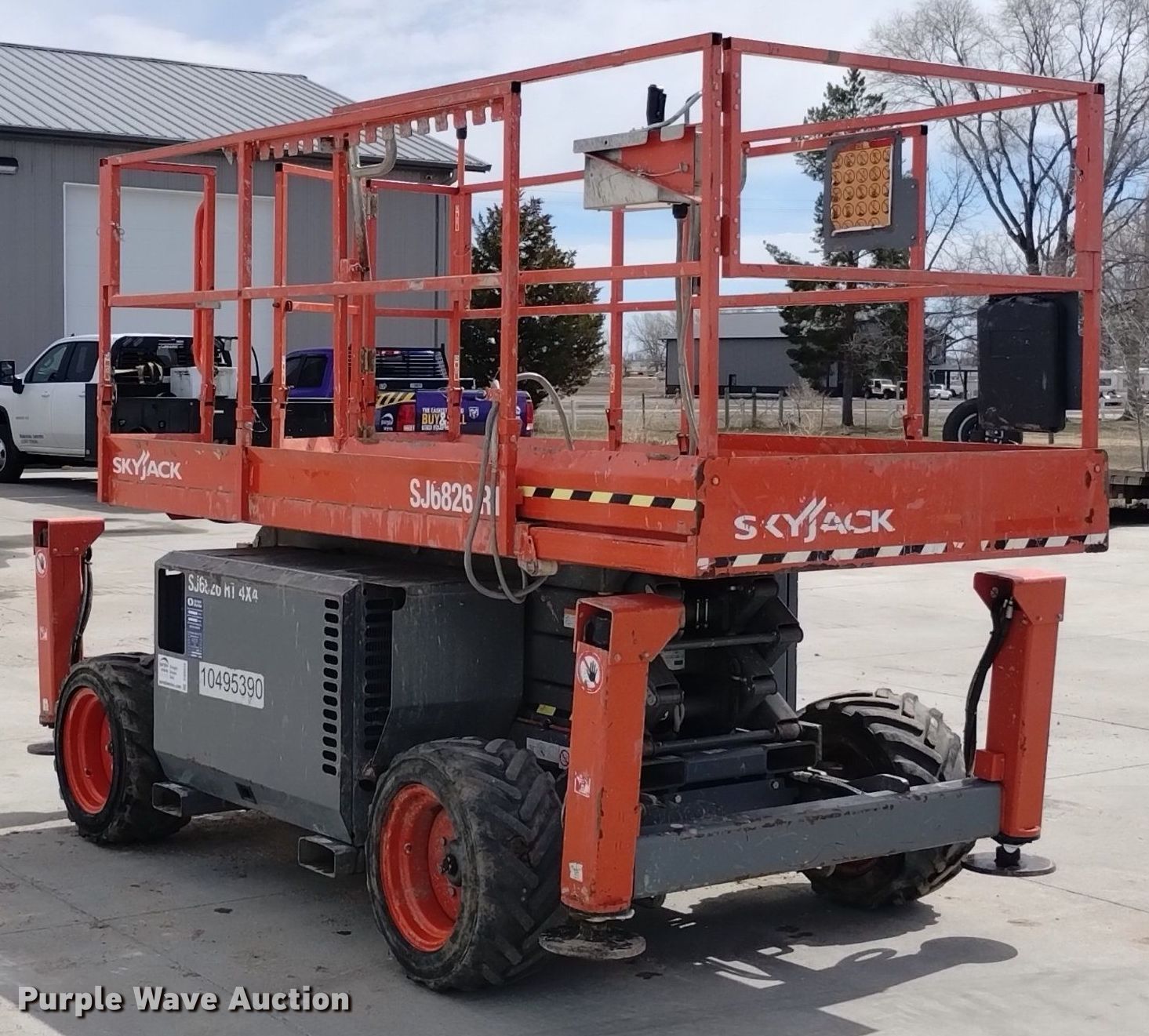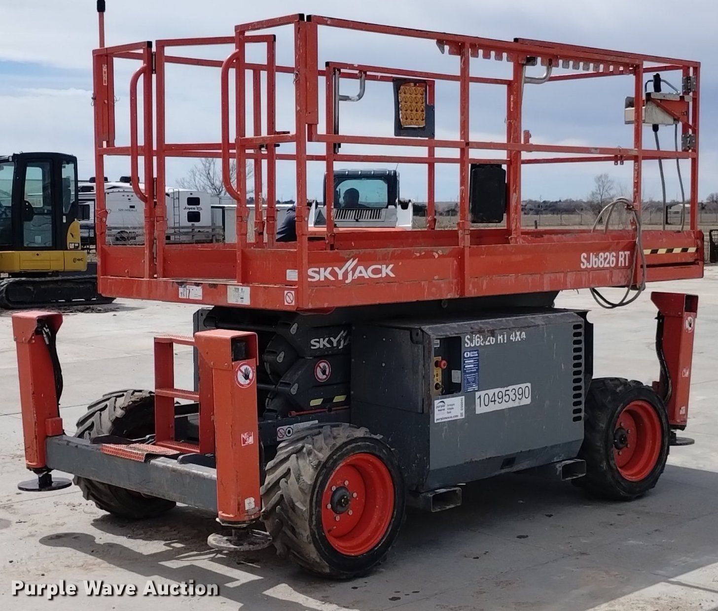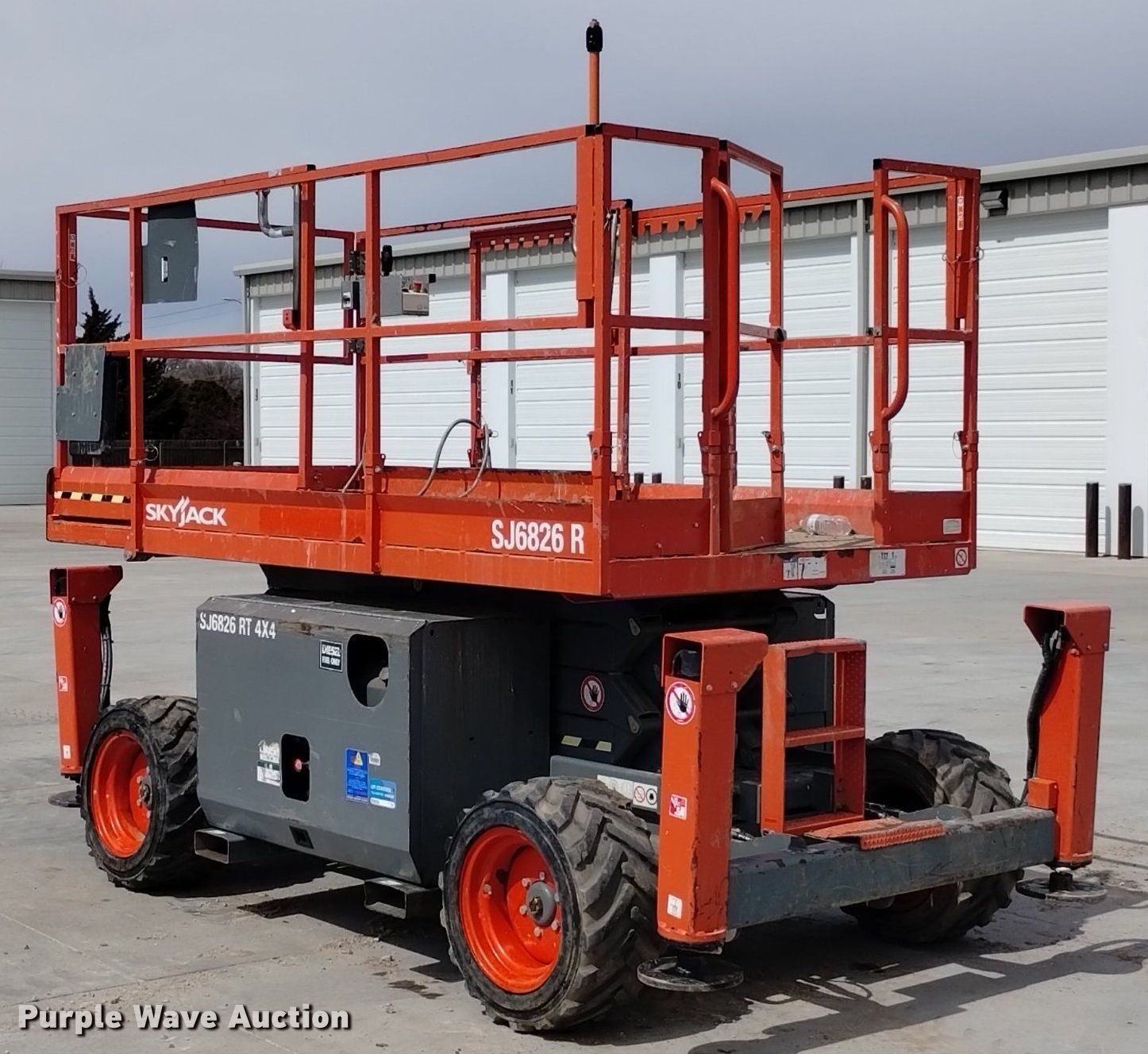 Purple Wave is selling a used Scissor or Vertical Lift in Nebraska. This item is a 2016 SkyJack SJ 6826RT scissor lift with the following: Hours: 1,988 on meter, Serial: 37008349