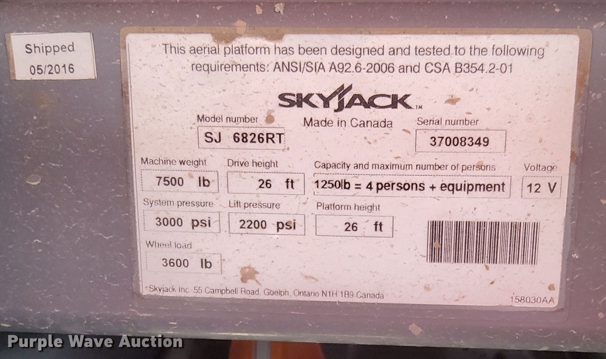 2016 SkyJack SJ 6826RT scissor lift has sold in North Platte, Nebraska for $15400. Item DQ6045 sold on April 25th, 2024.