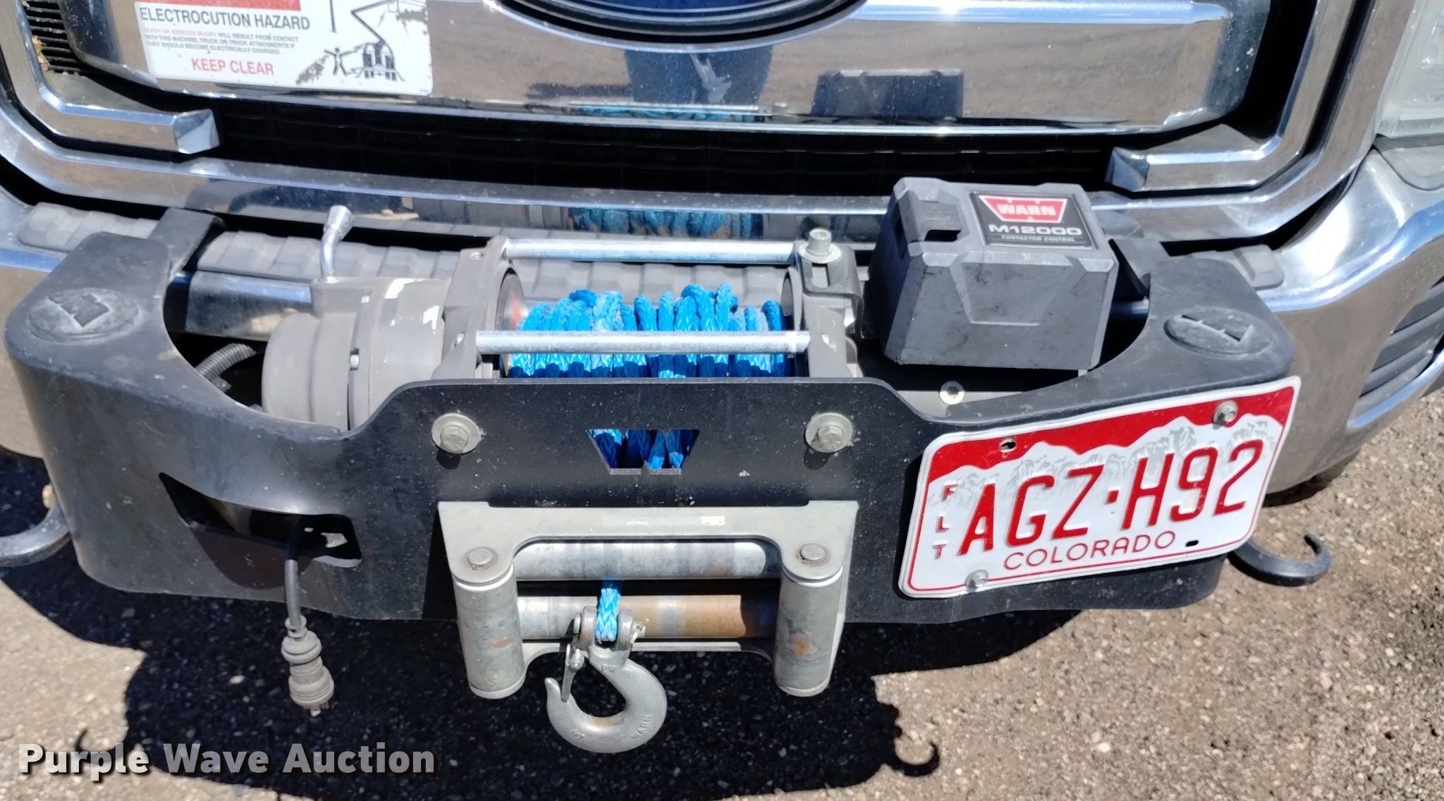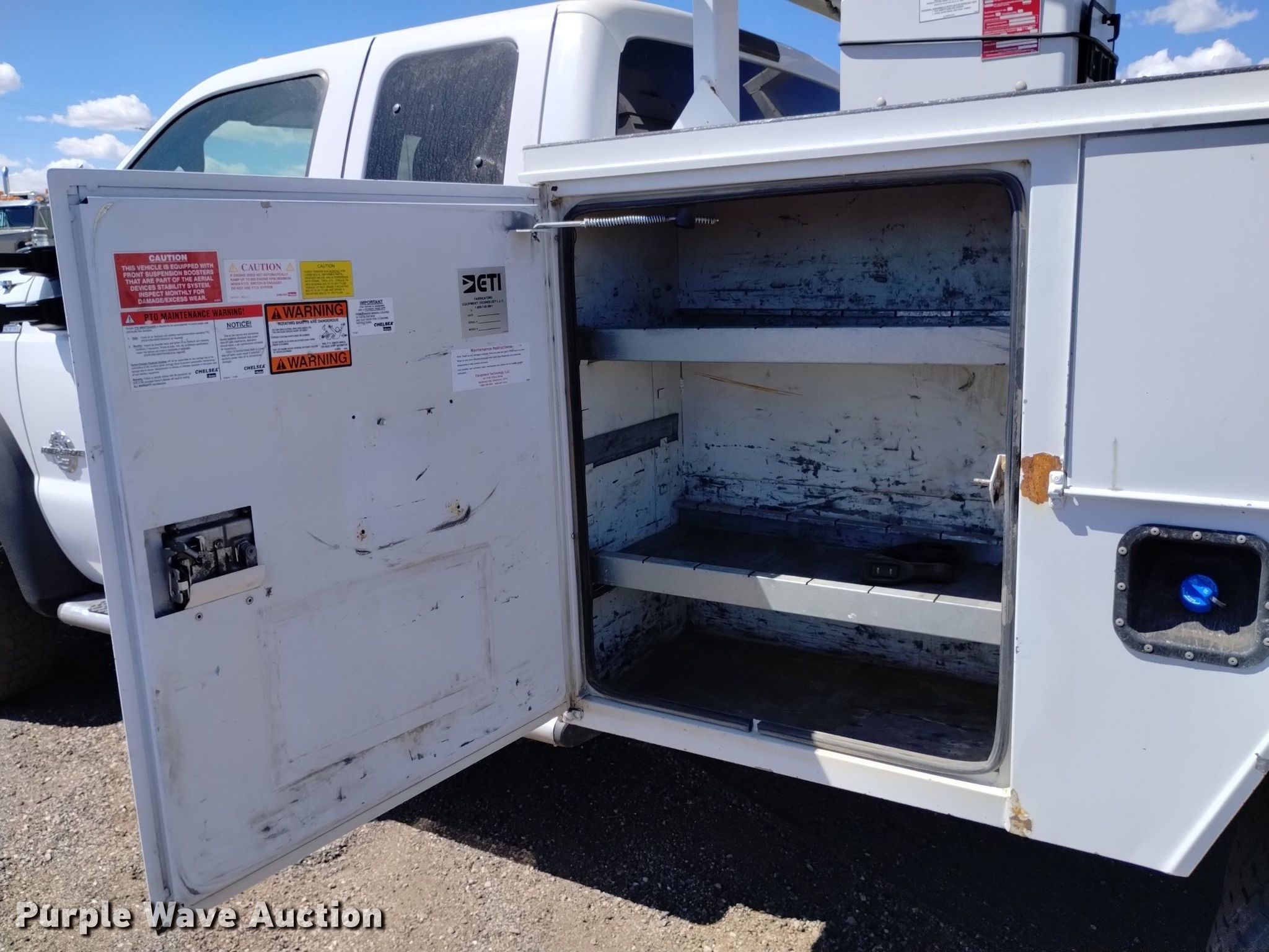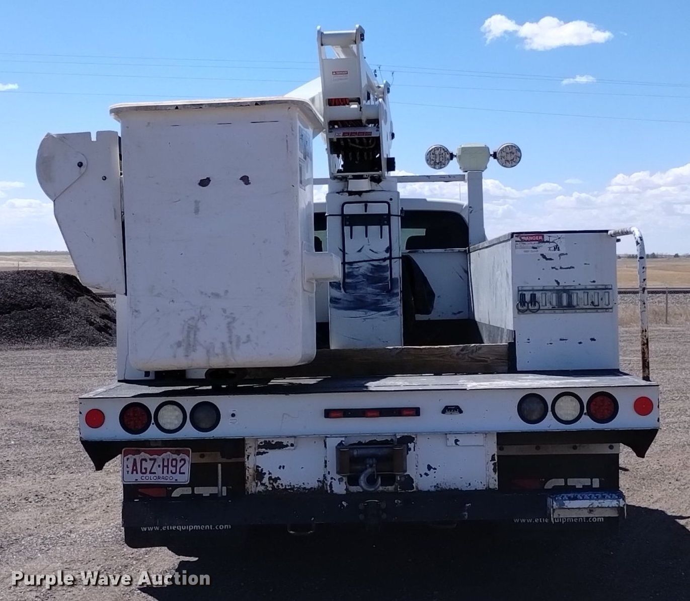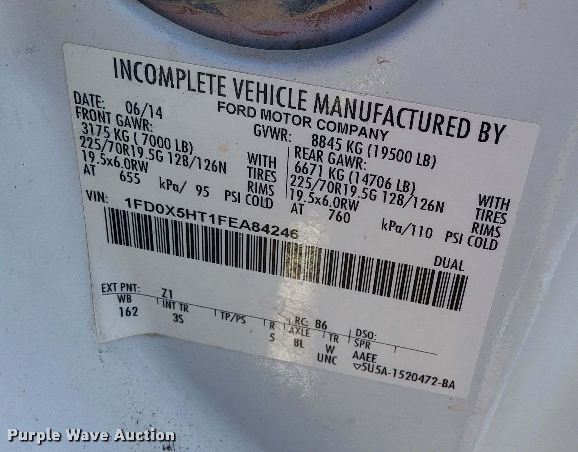 2015 Ford F550 bucket truck. Miles: 231,100 on odometer, VIN: 1FD0X5HT1FEA84246. Engine Displacement: 6.7L V8 OHV, Cylinders: 8, Fuel type: Diesel. Transmission Automatic. Chassis Four wheel drive, Axles: Single, Suspension: Spring, Brakes: Hydraulic, PTO, GVWR: 19,500 lbs. Interior AC, Heat, Heated mirrors, Power windows, Power locks, Cruise control, Auxiliary controls, Brake controller. Features Bed ETI, 12' L x 96" W, Boom 2014 ETI ETC37IH, Maximum lift capacity: 350 lbs, Maximum lift height: 37', Boom type: Articulating, Insulated, Telescopic, Man basket, Boom controls Ground, Platform/ basket, Remote control, Certification valid through: 02/2025, Front winch, Rear winch. Tires Size: 225/70R19.5. Notes Dash warning indicator: Check engine, Possible hydraulic leak, Rear seat missing. Colorado title. Title distribution may be delayed up to 14 days from verification of funds. Y-W Electric Association, Inc.. Akron, CO 80720