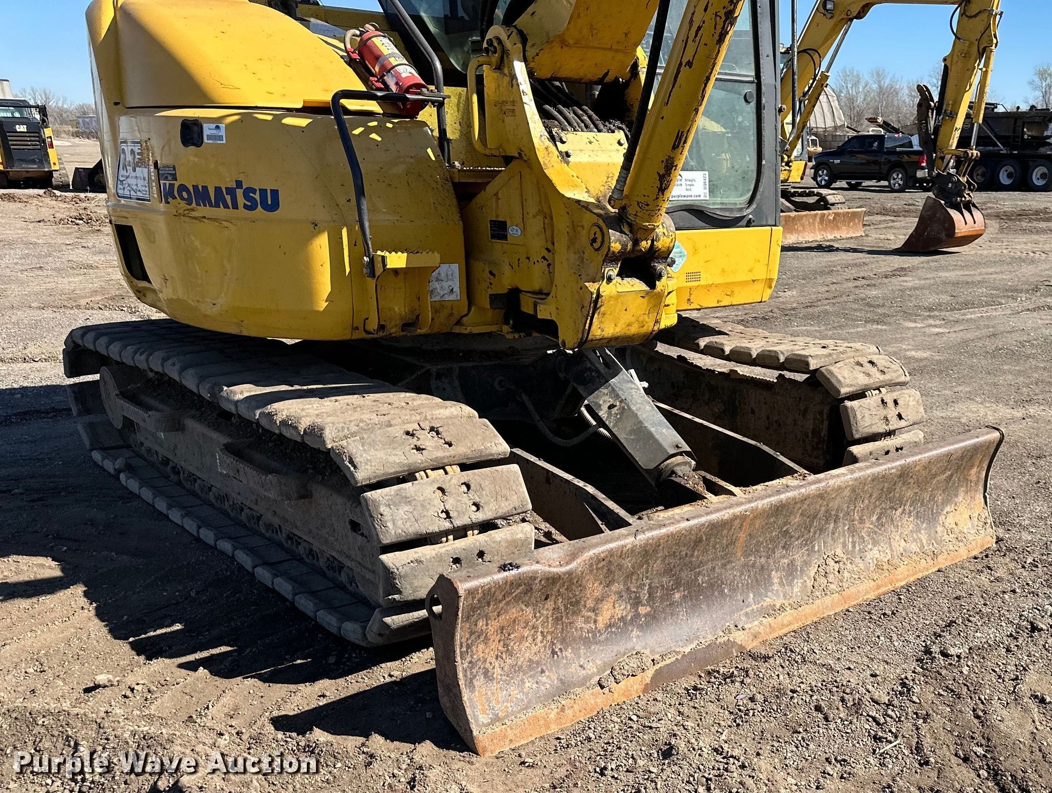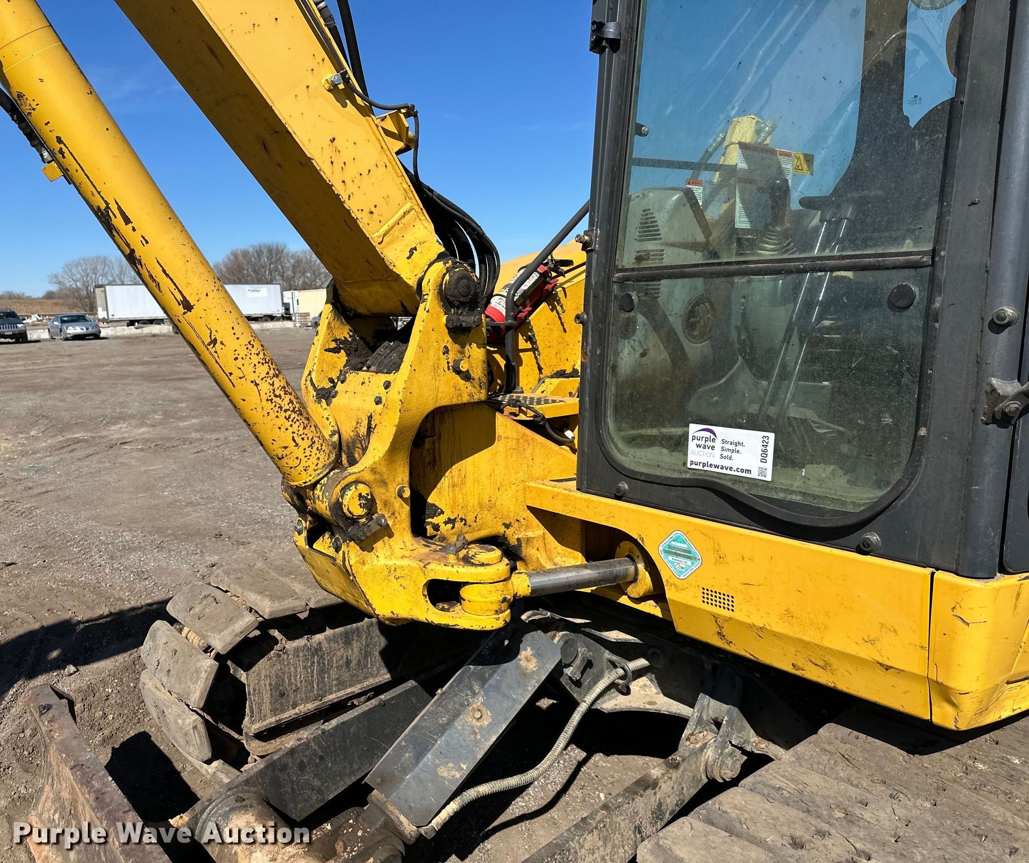2015 Komatsu PC88MR-10 mini excavator. Hours: 285 on meter Actual hours: Unknown, Serial: 7378. Engine Komatsu, Displacement: 3.2L, Cylinders: 4, Fuel type: Diesel. Transmission Hydrostatic. Operators station Enclosed cab, AC, Heat, Pattern changer. Features Auxiliary hydraulics Standard, Two-way, Backfill blade Width: 91.5", Boom Swing, Stick Stick length: 83", Quick coupler: Mechanical, Thumb: Hydraulic WB, Bucket WB, Width: 36", Cutting edge: Weld-on, Teeth: 6. Tracks Width: 17.5", Steel, Track pads: Rubber. Sunflower Paving Inc.. 4123 Northeast Seward Avenue. Topeka, KS 66616