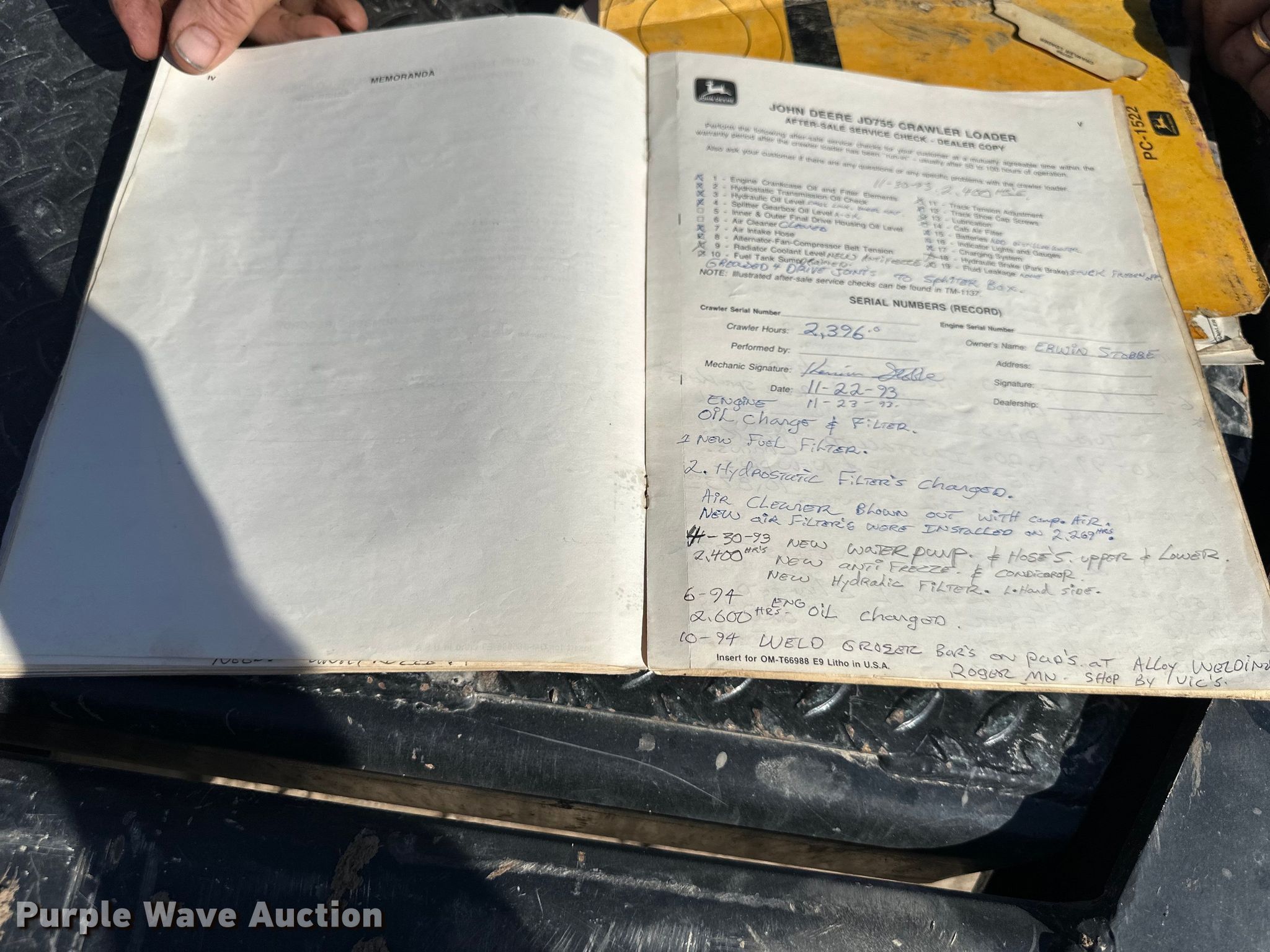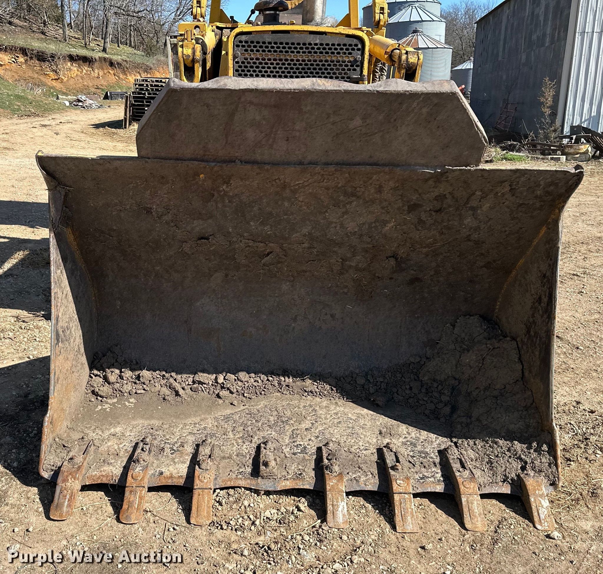 1979 John Deere JD755 track loader. Hours: Unknown, Serial: 331846T. Engine John Deere, Cylinders: 6, Fuel type: Diesel. Transmission Hydrostatic. Operators station Canopy, Bucket controls: Joystick. Features Counter weights, Bucket Capacity: 2 cu.yd., Width: 83", Teeth: 7. Tracks Width: 15", Grouser pads: Double. Parson Family Farm. 20761 4-H Road. Leavenworth, KS 66048