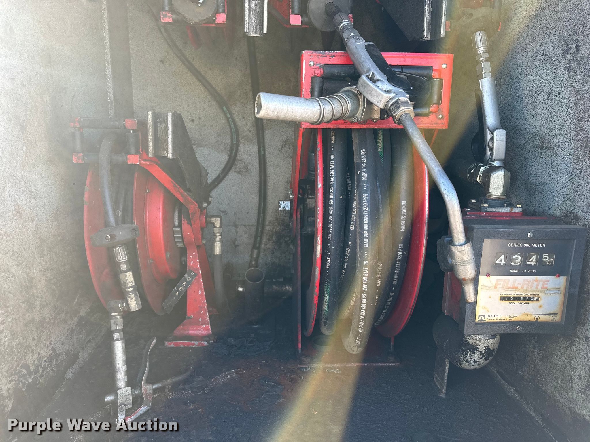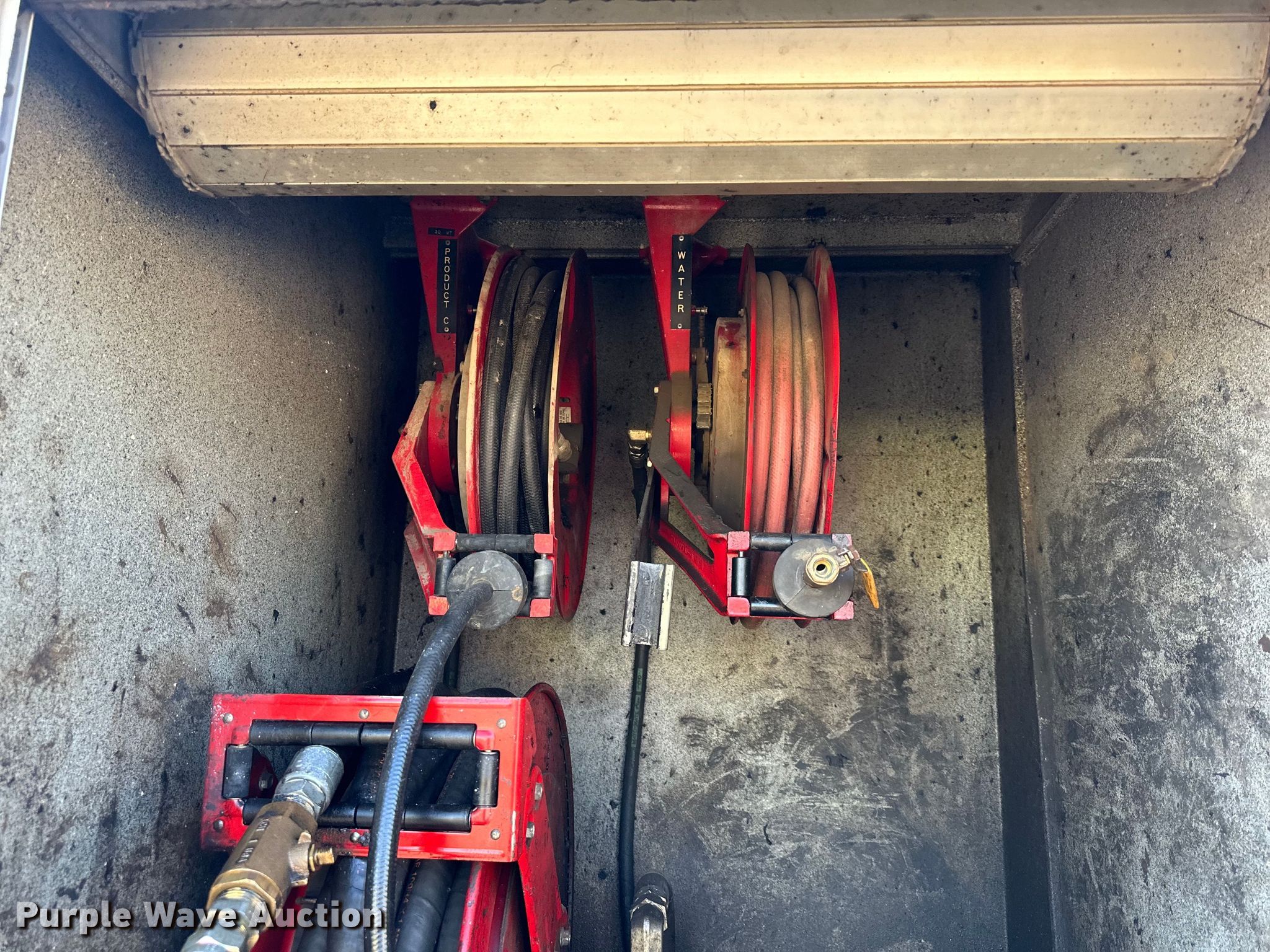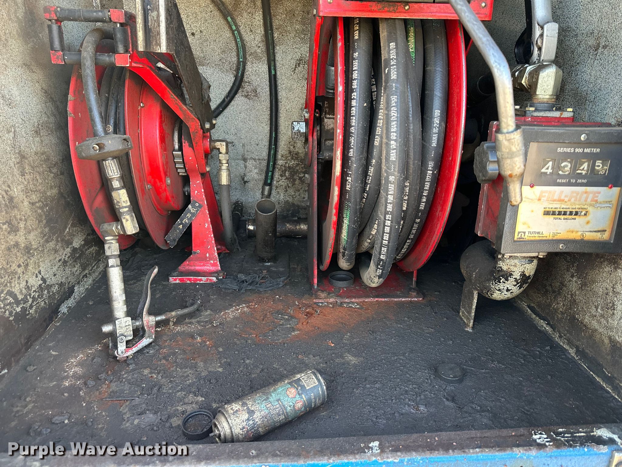 1997 Freightliner FL80 fuel truck. Miles: 193,020 on odometer, VIN: 1FUWJLBA5VL665778. Engine Cummins, Displacement: 8.3L, Cylinders: 6, Fuel type: Diesel. Transmission Allison, Automatic. Chassis Axles: Single, Suspension: Air, Brakes: Air, PTO, GVWR: 32,000 lbs. Interior Heat. Features Bed / tank Service Truck Equipment, Serial: 485, Capacity: 1,000 gallons, 15' L x 96" W, Compartments: 5, Hose reels: 8, Nozzles, Metered pumps: 1, Oil/lube reservoirs Hydraulic fluid, Grease, Motor oil, Used oil.. Tires Size: 11R22.5. Notes Possible starter issue. Missouri title. Title distribution may be delayed up to 14 days from verification of funds. Knight Excavating. 14168 Santa Fe Trail Dr. Lenexa, KS 66215