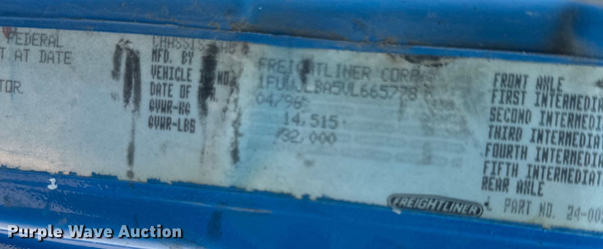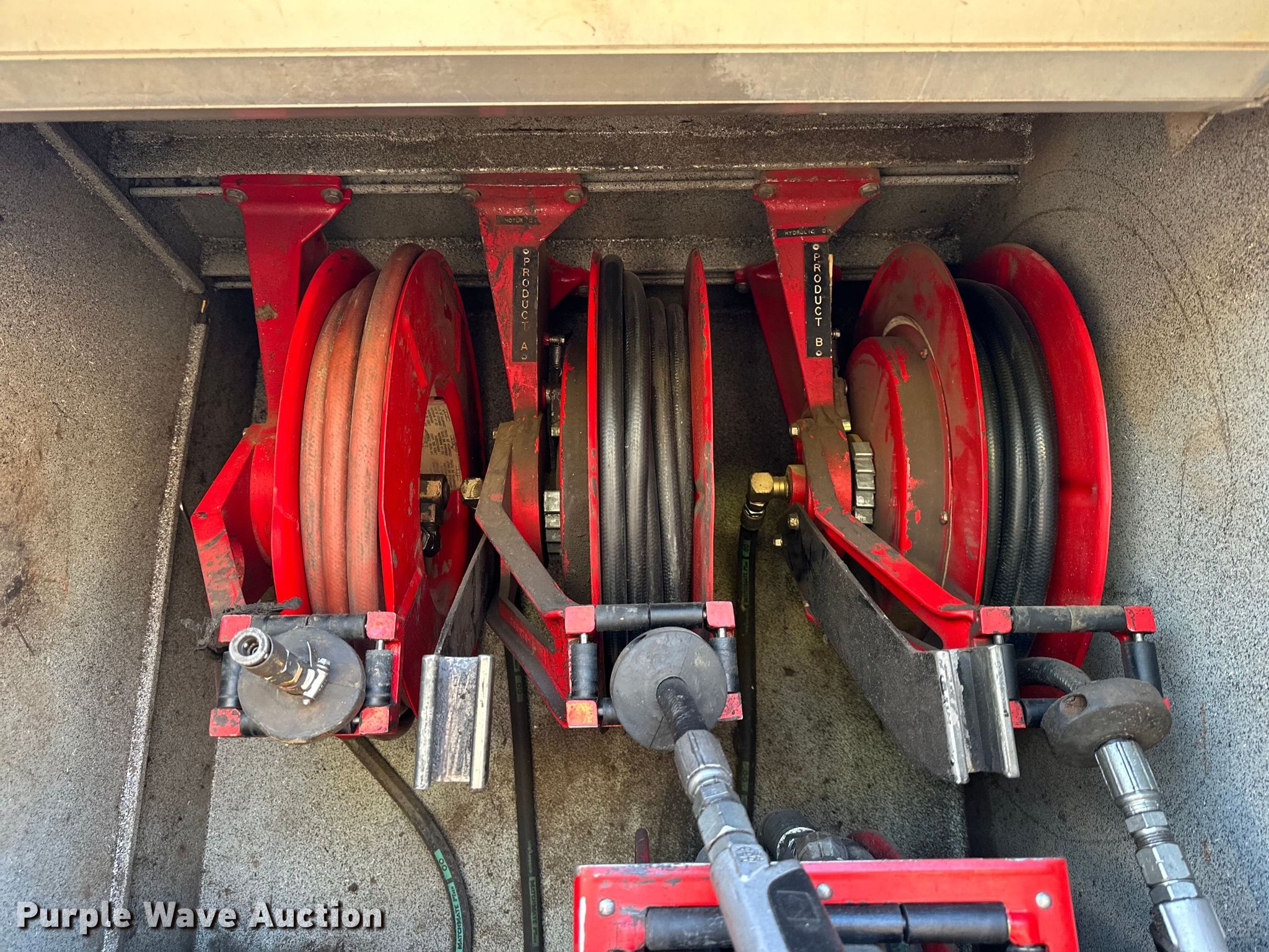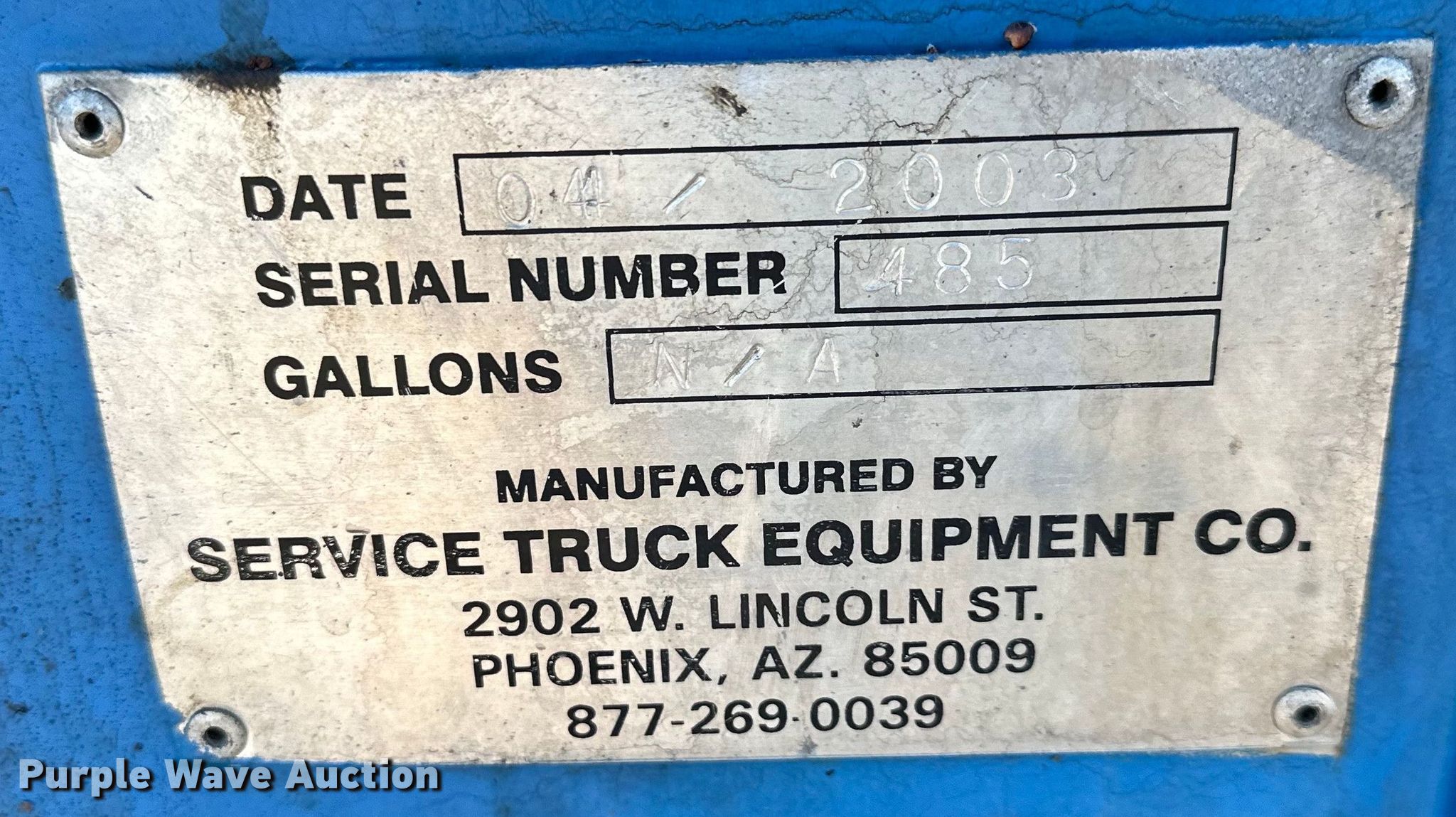 1997 Freightliner FL80 fuel truck. Miles: 193,020 on odometer, VIN: 1FUWJLBA5VL665778. Engine Cummins, Displacement: 8.3L, Cylinders: 6, Fuel type: Diesel. Transmission Allison, Automatic. Chassis Axles: Single, Suspension: Air, Brakes: Air, PTO, GVWR: 32,000 lbs. Interior Heat. Features Bed / tank Service Truck Equipment, Serial: 485, Capacity: 1,000 gallons, 15' L x 96" W, Compartments: 5, Hose reels: 8, Nozzles, Metered pumps: 1, Oil/lube reservoirs Hydraulic fluid, Grease, Motor oil, Used oil.. Tires Size: 11R22.5. Notes Possible starter issue. Missouri title. Title distribution may be delayed up to 14 days from verification of funds. Knight Excavating. 14168 Santa Fe Trail Dr. Lenexa, KS 66215