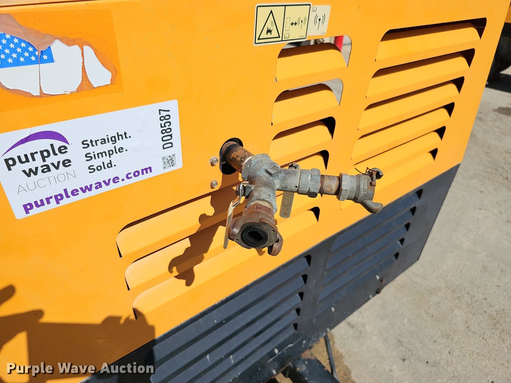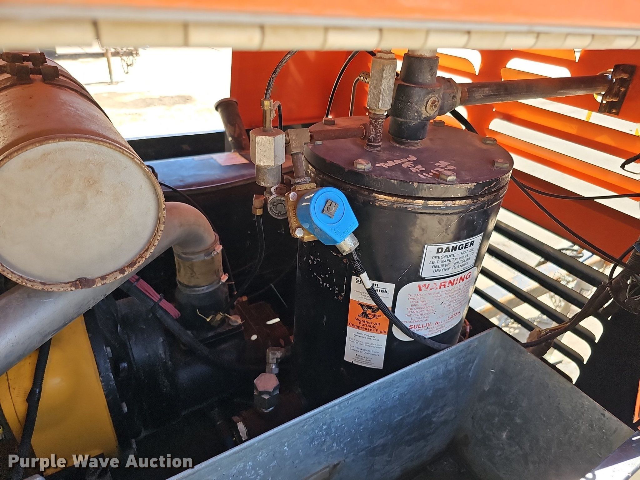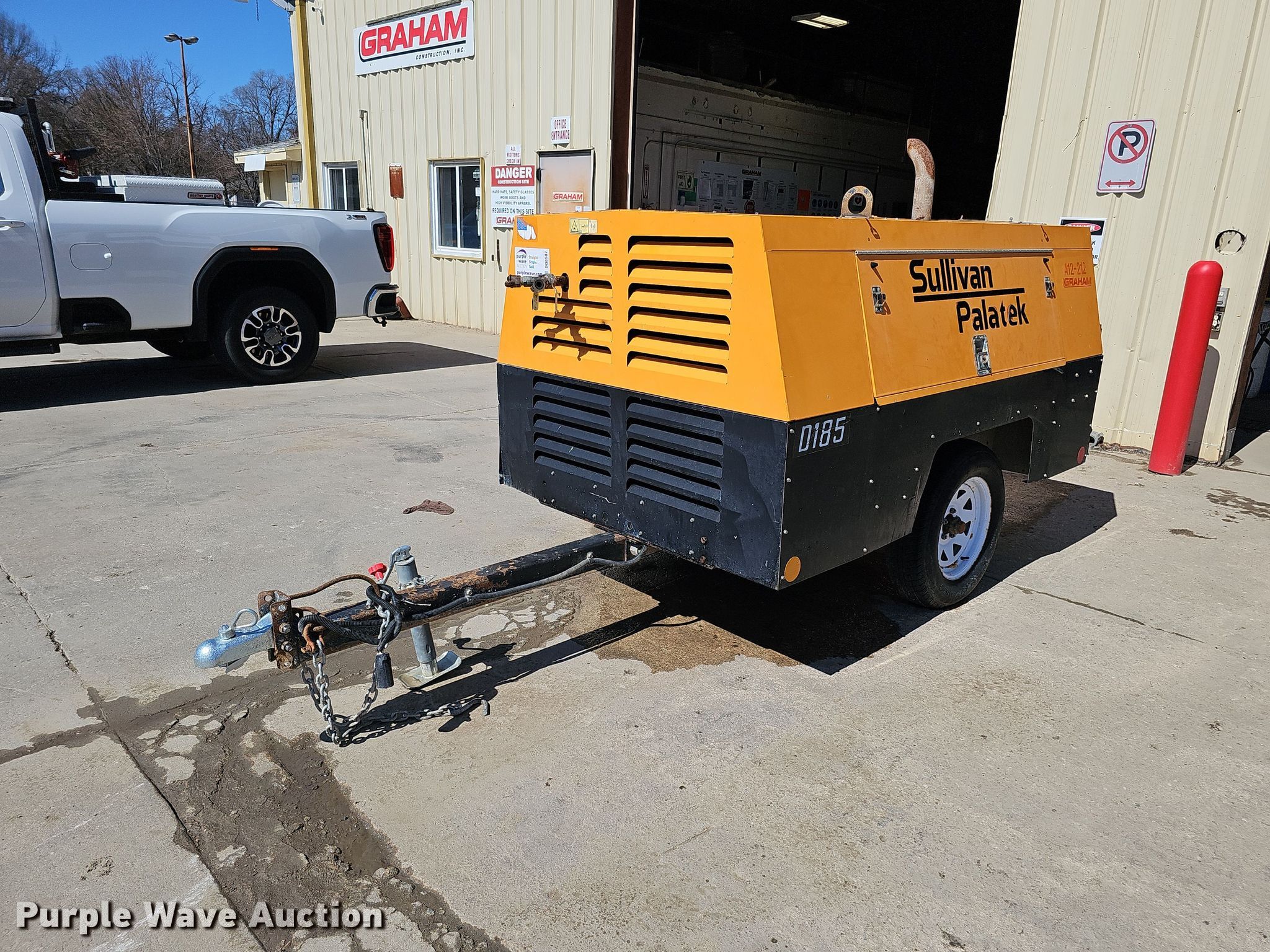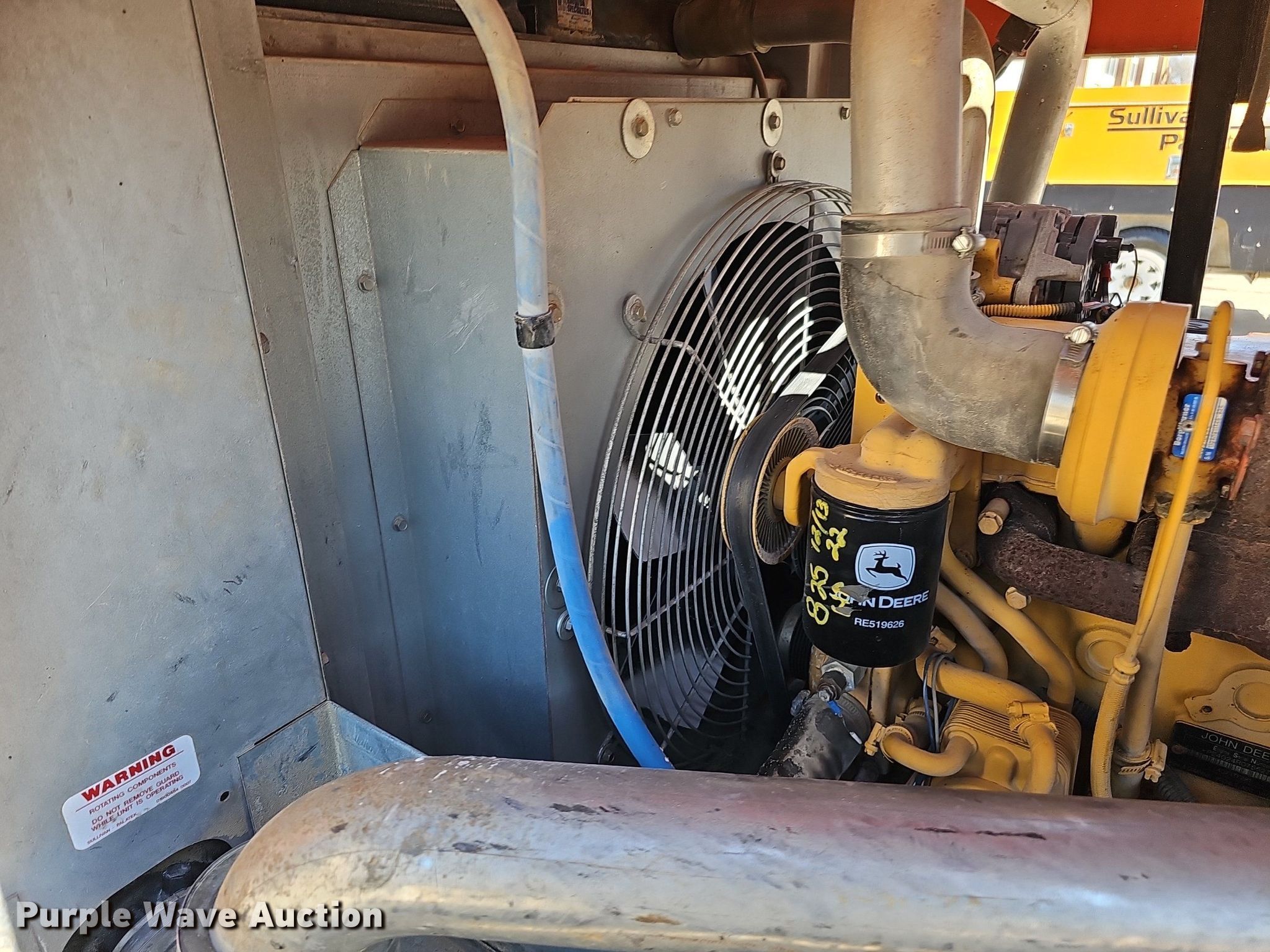 Purple Wave is selling a used Air Compressor in Nebraska. This item is a Sullivan Palatek D185PJD air compressor with the following: Hours: 896 on meter, Serial: 30533, Unit #: A12-212