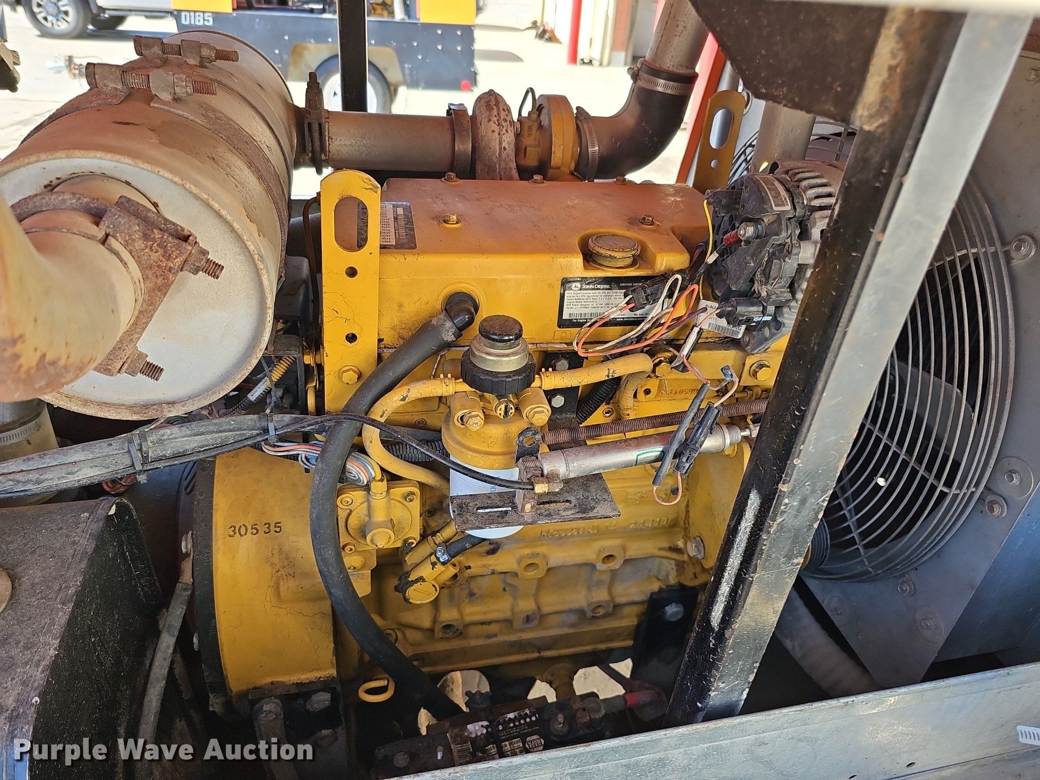 Sullivan Palatek D185PJD air compressor. Hours: 1,012 on meter, Serial: 30535, Unit #: A12-211. Engine John Deere 4024TF281A, Displacement: 2.4L, Cylinders: 4, Fuel type: Diesel. Features Air compressor CFM: 185, PSI: 100. Trailer 12' L x 55" W, Ball hitch size: 2", Suspension: Spring, Axles: Single, Tire size: ST205/75D15. Notes Non-operational engine, Non-operational unit. Transfer of ownership documentation will be a bill of sale. Graham Construction, Inc.. 2209 N 88th St. Omaha, NE 68134