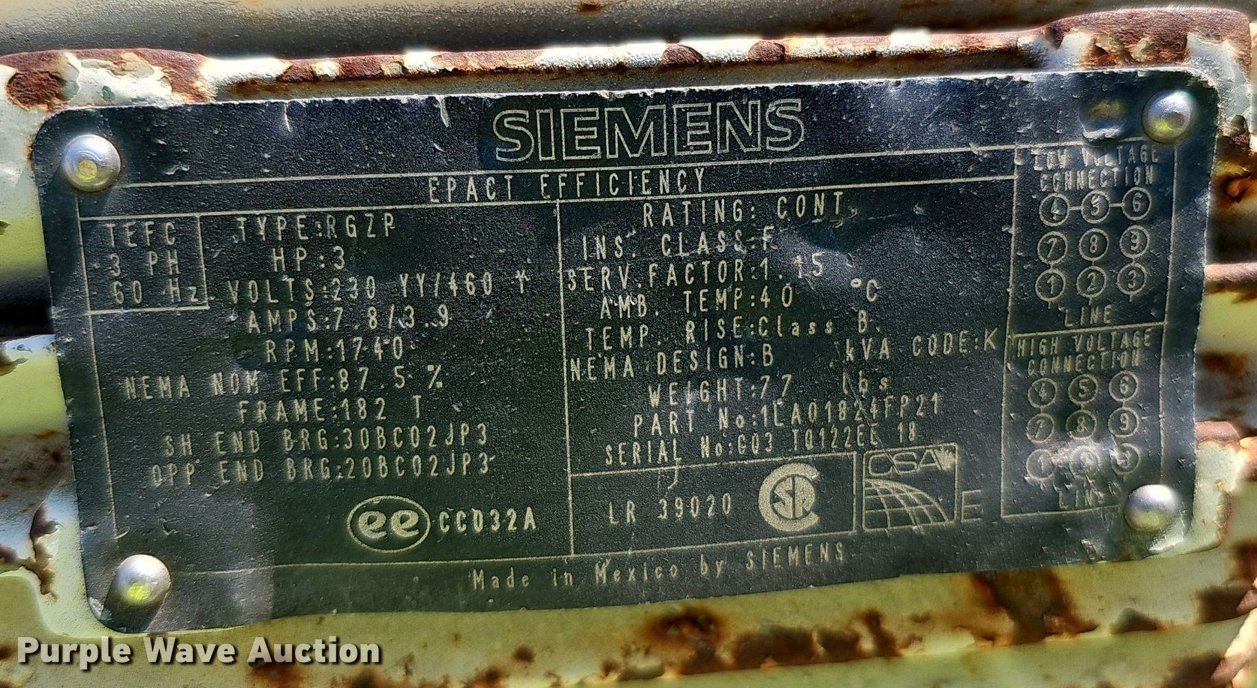 Purple Wave is selling a used Screen or Screening Plant in Nebraska. This item is a screen with the following: Siemens RGZP, HP: 3, Volts: 230, Phase: Three