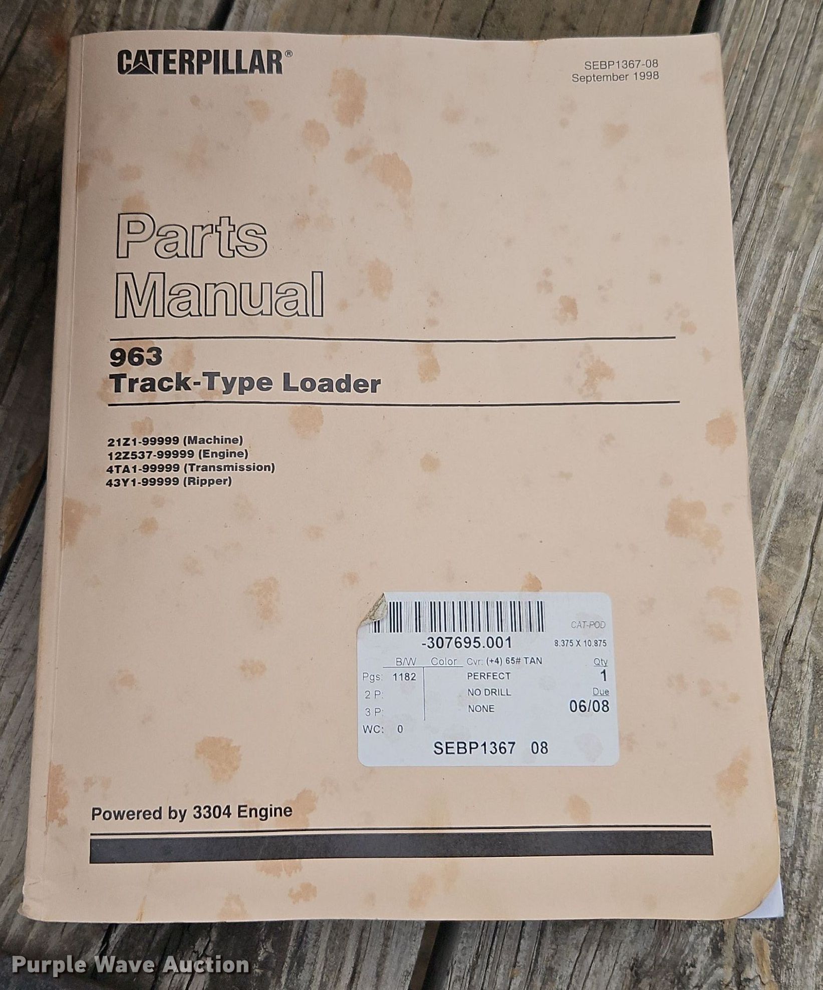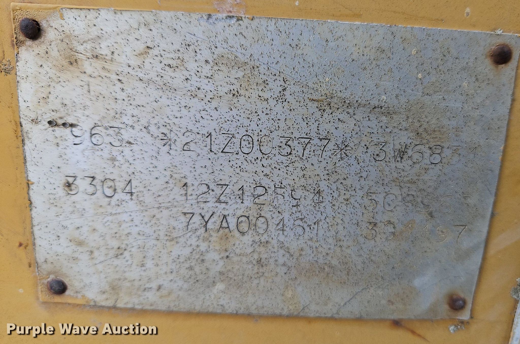 1985 Caterpillar 963 track loader. Hours: 16,069 on meter, Hours: Unknown, Serial: 21Z00377. Engine Caterpillar 3304, Serial: 12Z12594, Cylinders: 6, Fuel type: Diesel. Transmission Hydrostatic. Operators station Canopy, Bucket controls: Two-lever. Features Bucket Balderson, Width: 100", Teeth: 8. Tracks Width: 22", Grouser pads: Double. Notes Hour meter replaced at 11,480 hours. Robert Lacy. Olivet, KS 66856