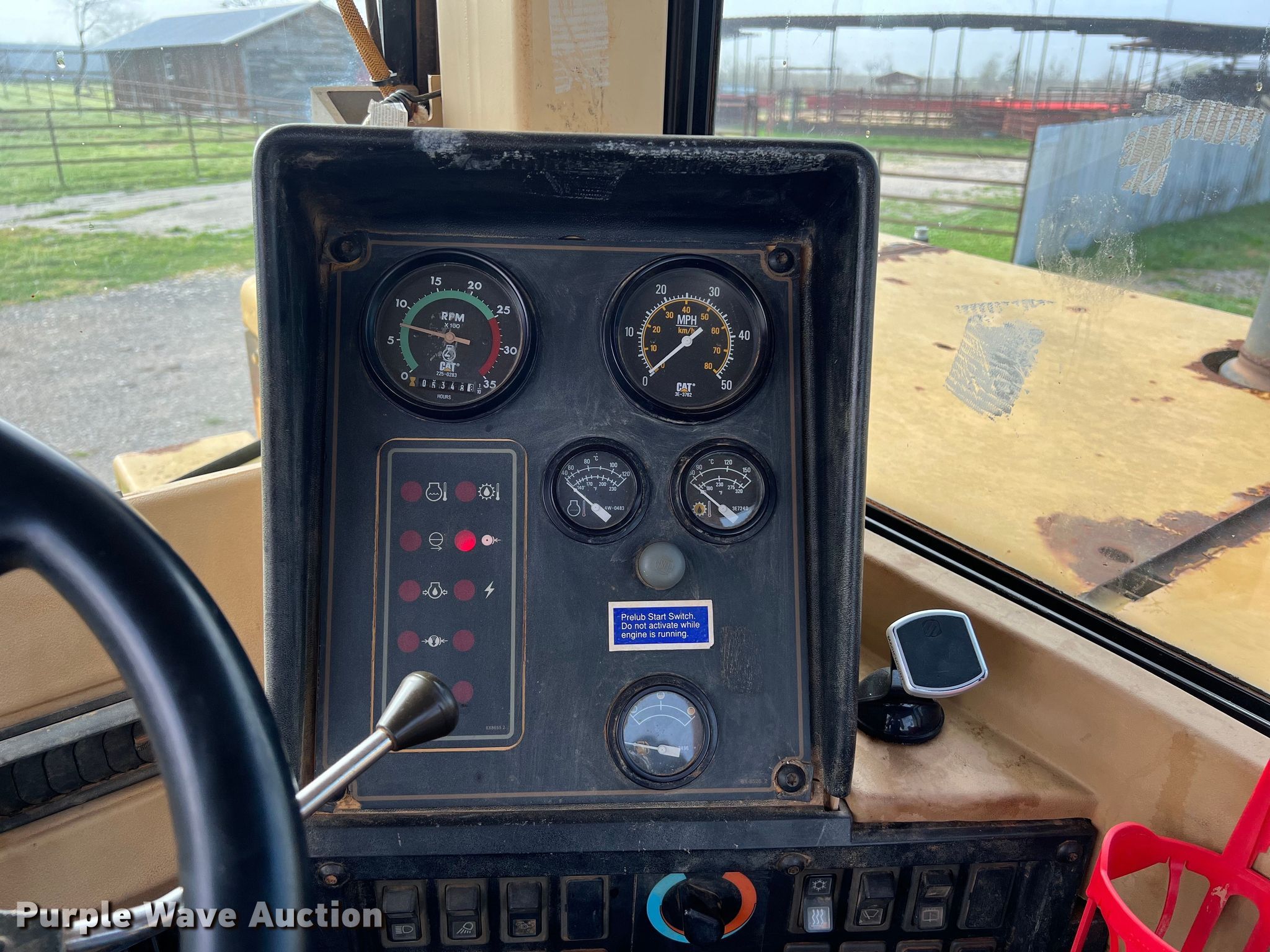 1995 Caterpillar 621F conventional scraper. Hours: 5,349 on meter, Serial: 8PL00043. Engine Caterpillar 3406, Cylinders: 6, Fuel type: Diesel. Transmission Powershift, 8F - 1R. Chassis Brakes: Air. Operators station Enclosed cab, AC, Heat. Features Reversible cutting edge, Hydraulic lift, Scraper controls: Lever controls No. of controls: 3, Rear push block. Tires Size: 33.25-29. Notes Glass cracked. 18505 Camino Real. Dale, TX 78616
