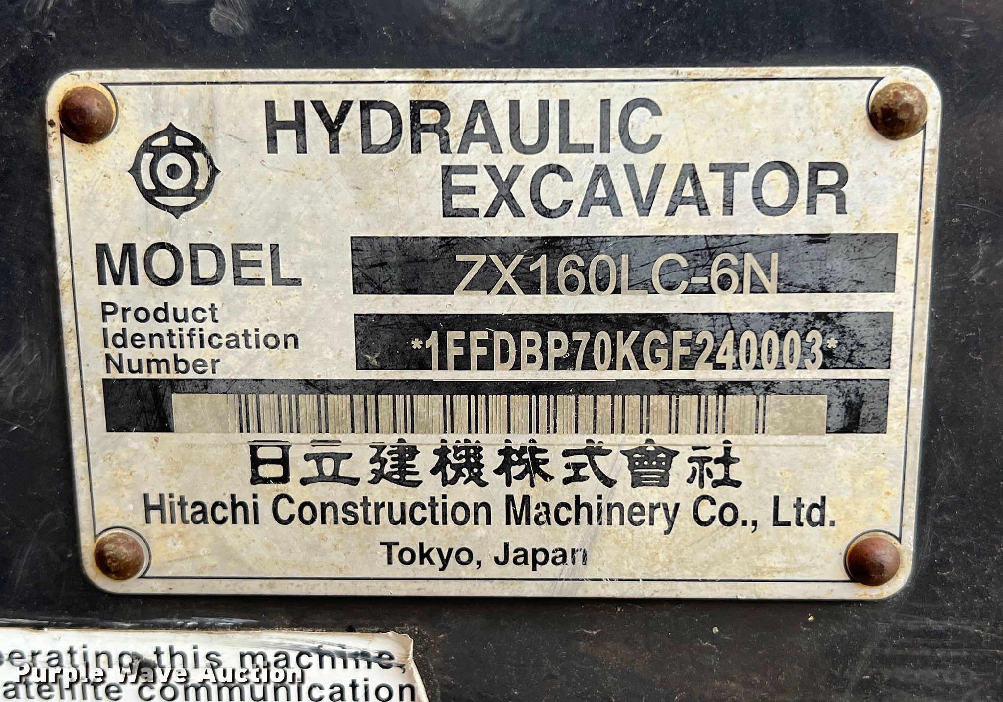 Purple Wave is selling a used Hydraulic Excavator in Texas. This item is a 2016 Hitachi Zaxis 160LC-6 excavator with the following: Hours: 4,435 on meter, Serial: 1FFDBP70KGF240003
