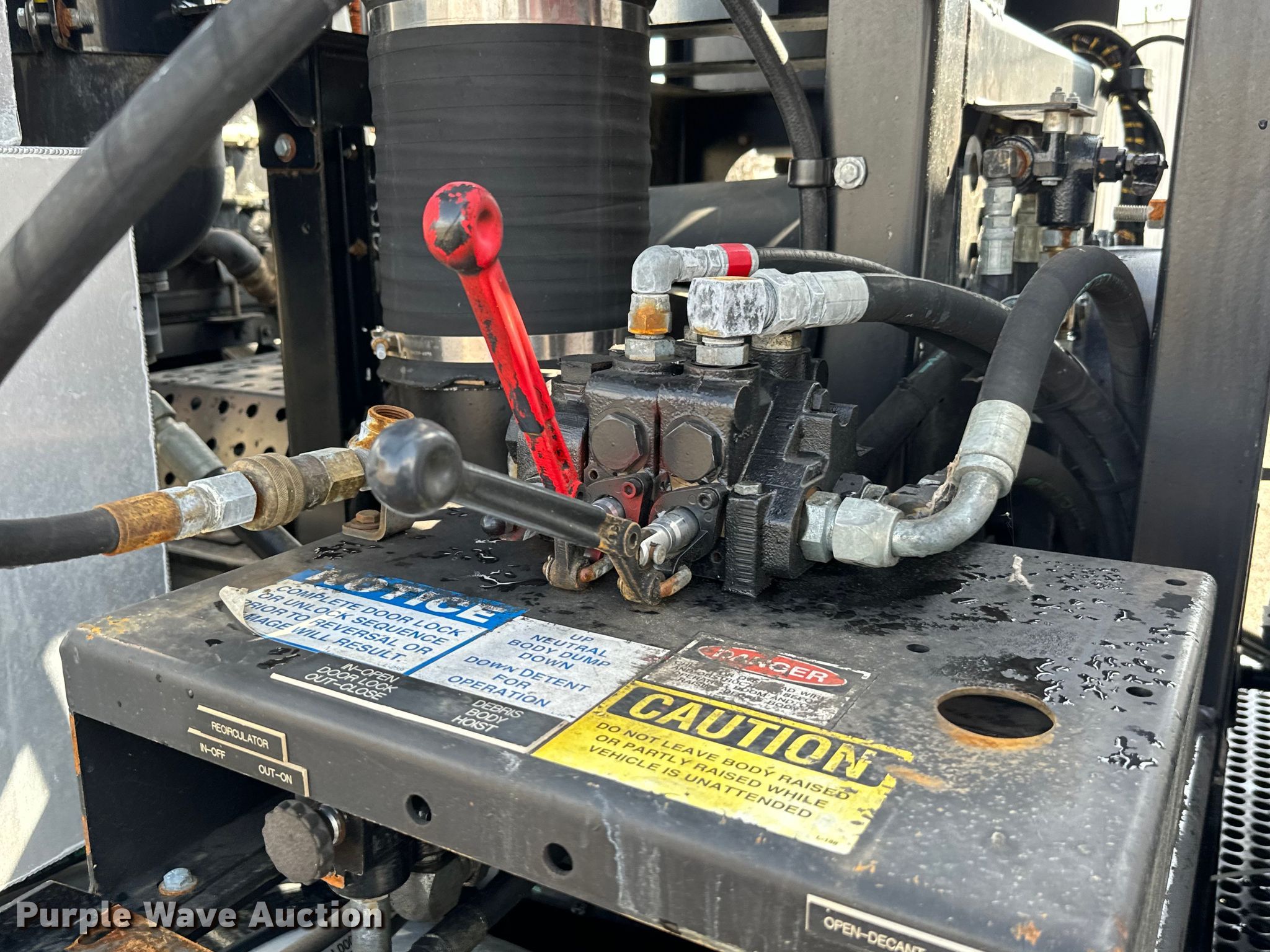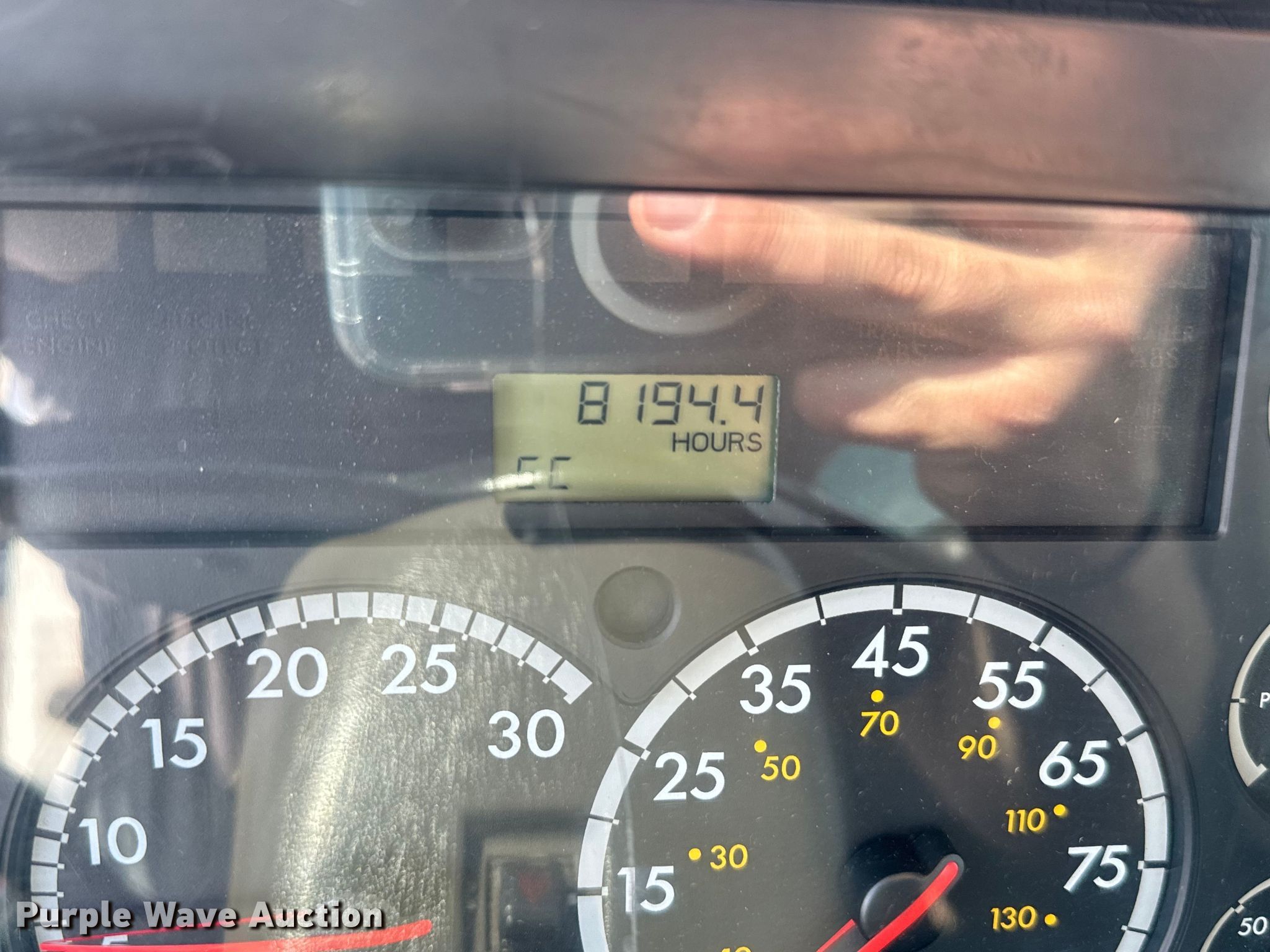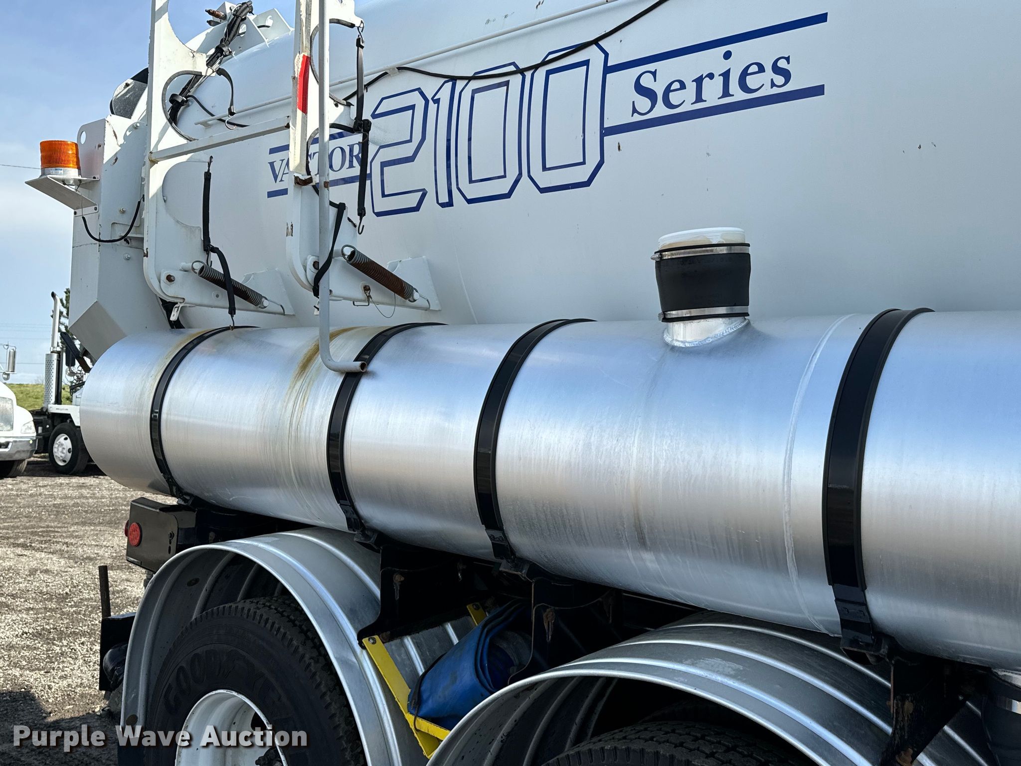 2004 Sterling L-Line sewer jetter truck. Miles: 112,911 on odometer, Hours: 8,195 on meter, VIN: 2FZHATAK84AM63485. Engine Caterpillar 3126, Serial: 3CPXH0442HBW, Displacement: 7.2L, Cylinders: 6, Fuel type: Diesel. Transmission Automatic. Chassis Axles: Tandem, Suspension: Spring, Brakes: Air, PTO. Interior AC, Heat, Auxiliary controls. Features Tank bed Vactor 2100, Capacity: 1,200 gallons, Rear manway, Rear outlet: 6", Vacuum pump Vactor 2100, Serial: 04-07V-9088, CFM: 3600, Hose reel Front, Hydraulic, Diameter: 1". Tires Front: 425/65R22.5, Rear: 11R22.5. Oklahoma title. Title distribution may be delayed up to 14 days from verification of funds. 15107 North 137th East Avenue. Collinsville, OK 74021