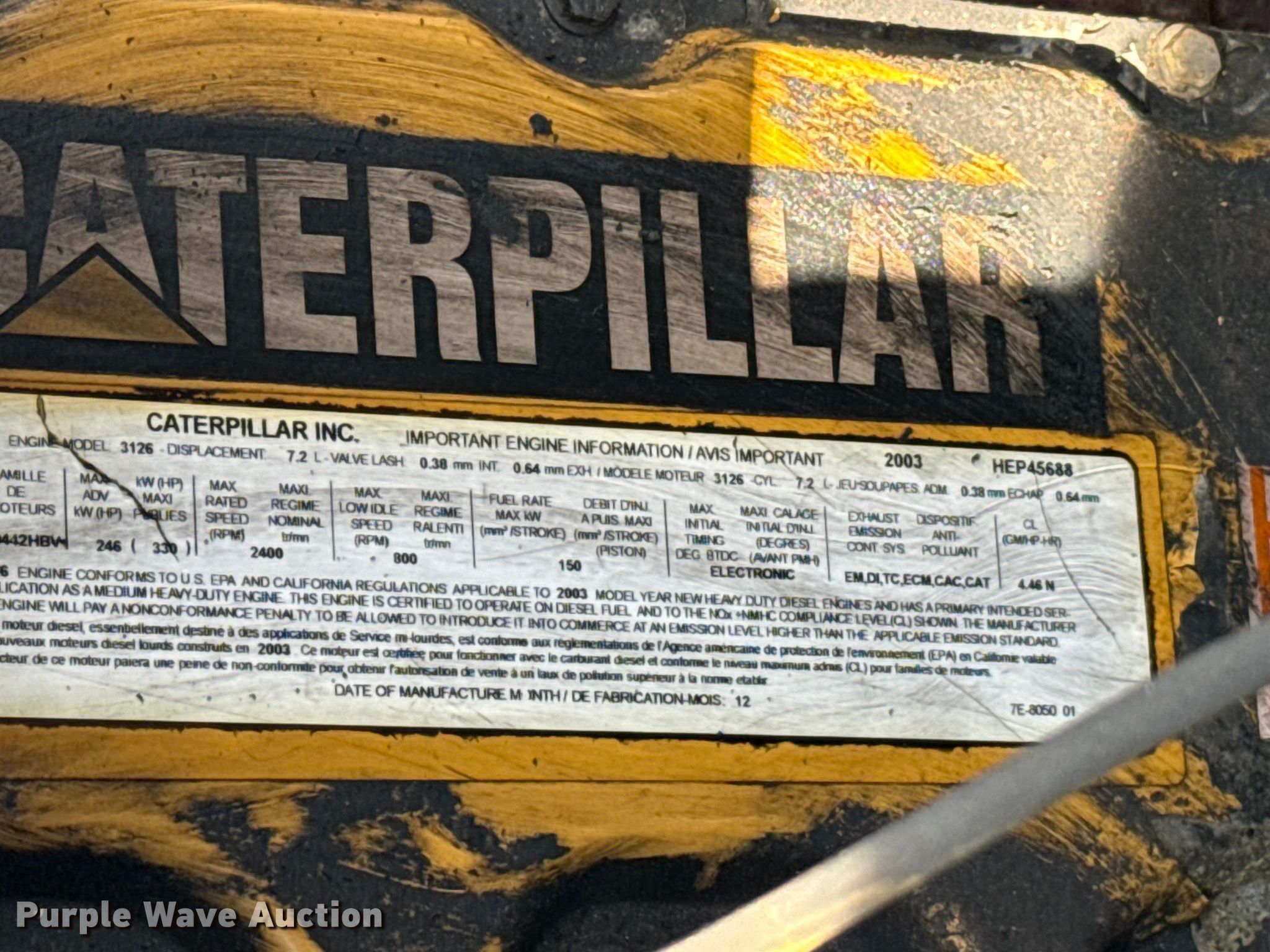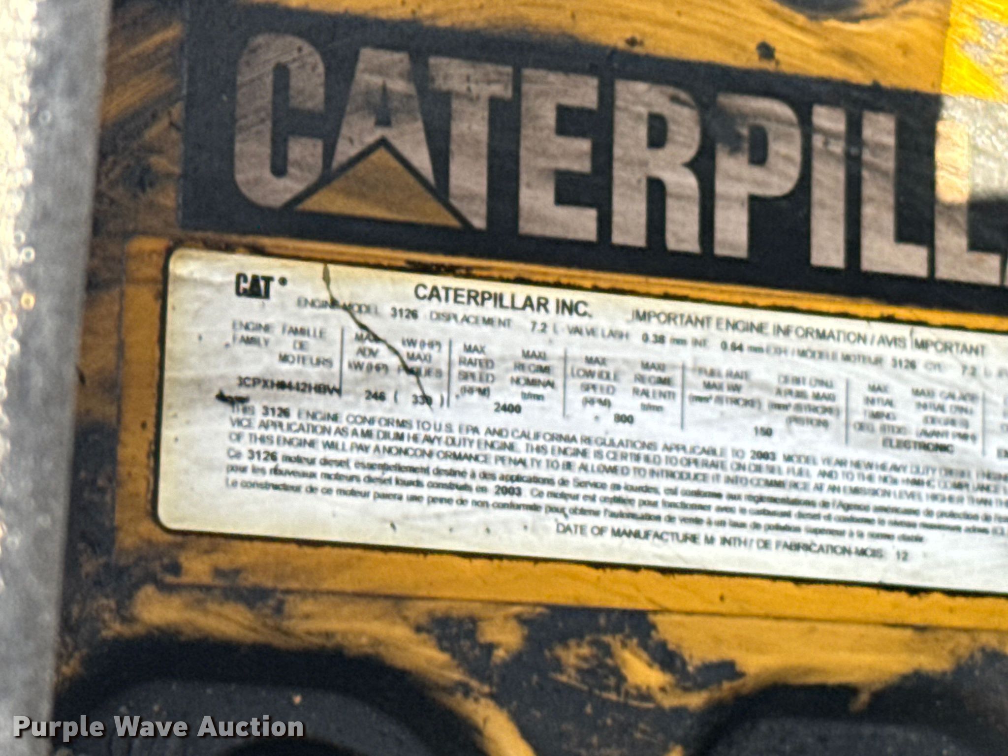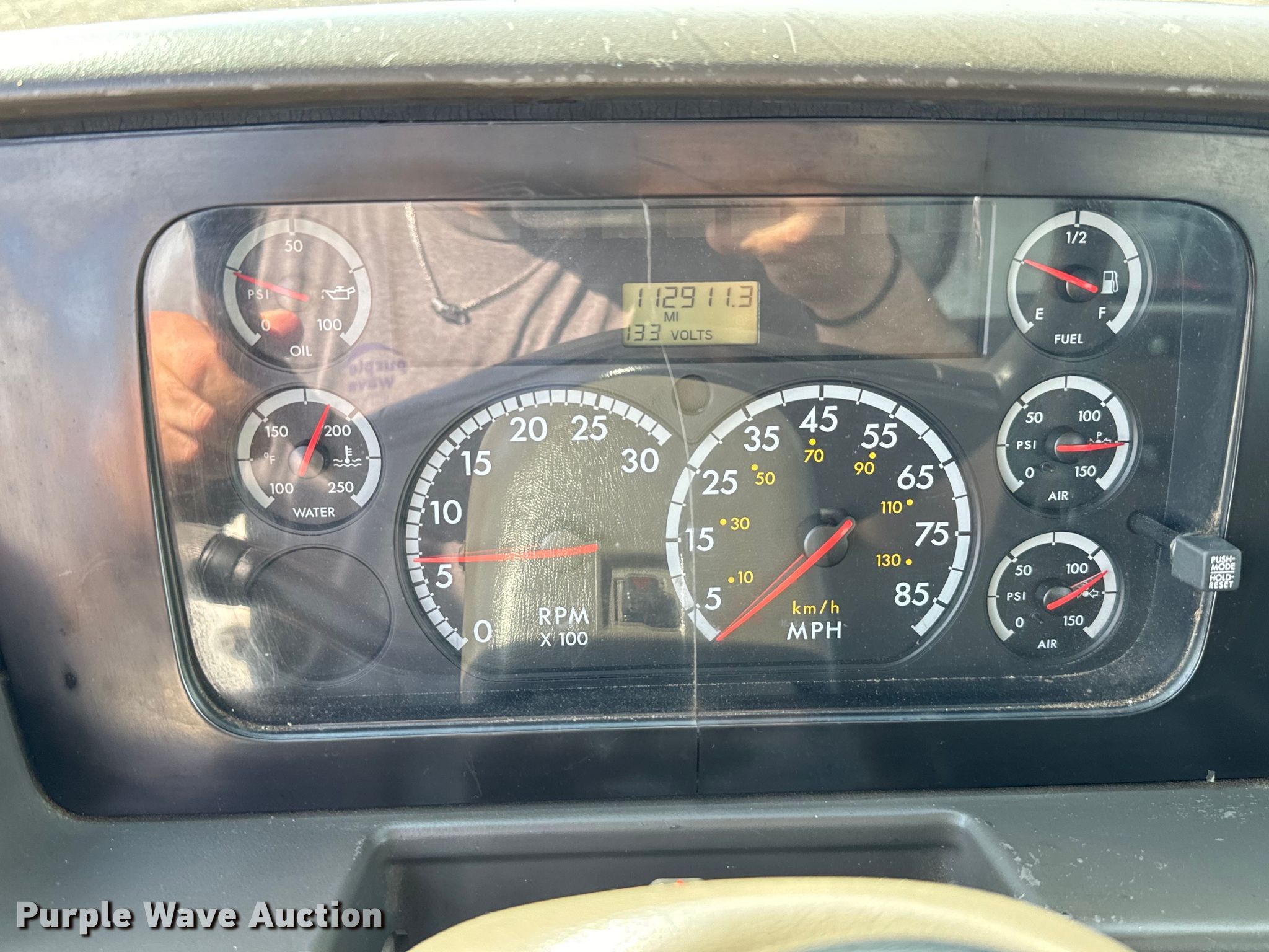 2004 Sterling L-Line sewer jetter truck. Miles: 112,911 on odometer, Hours: 8,195 on meter, VIN: 2FZHATAK84AM63485. Engine Caterpillar 3126, Serial: 3CPXH0442HBW, Displacement: 7.2L, Cylinders: 6, Fuel type: Diesel. Transmission Automatic. Chassis Axles: Tandem, Suspension: Spring, Brakes: Air, PTO. Interior AC, Heat, Auxiliary controls. Features Tank bed Vactor 2100, Capacity: 1,200 gallons, Rear manway, Rear outlet: 6", Vacuum pump Vactor 2100, Serial: 04-07V-9088, CFM: 3600, Hose reel Front, Hydraulic, Diameter: 1". Tires Front: 425/65R22.5, Rear: 11R22.5. Oklahoma title. Title distribution may be delayed up to 14 days from verification of funds. 15107 North 137th East Avenue. Collinsville, OK 74021