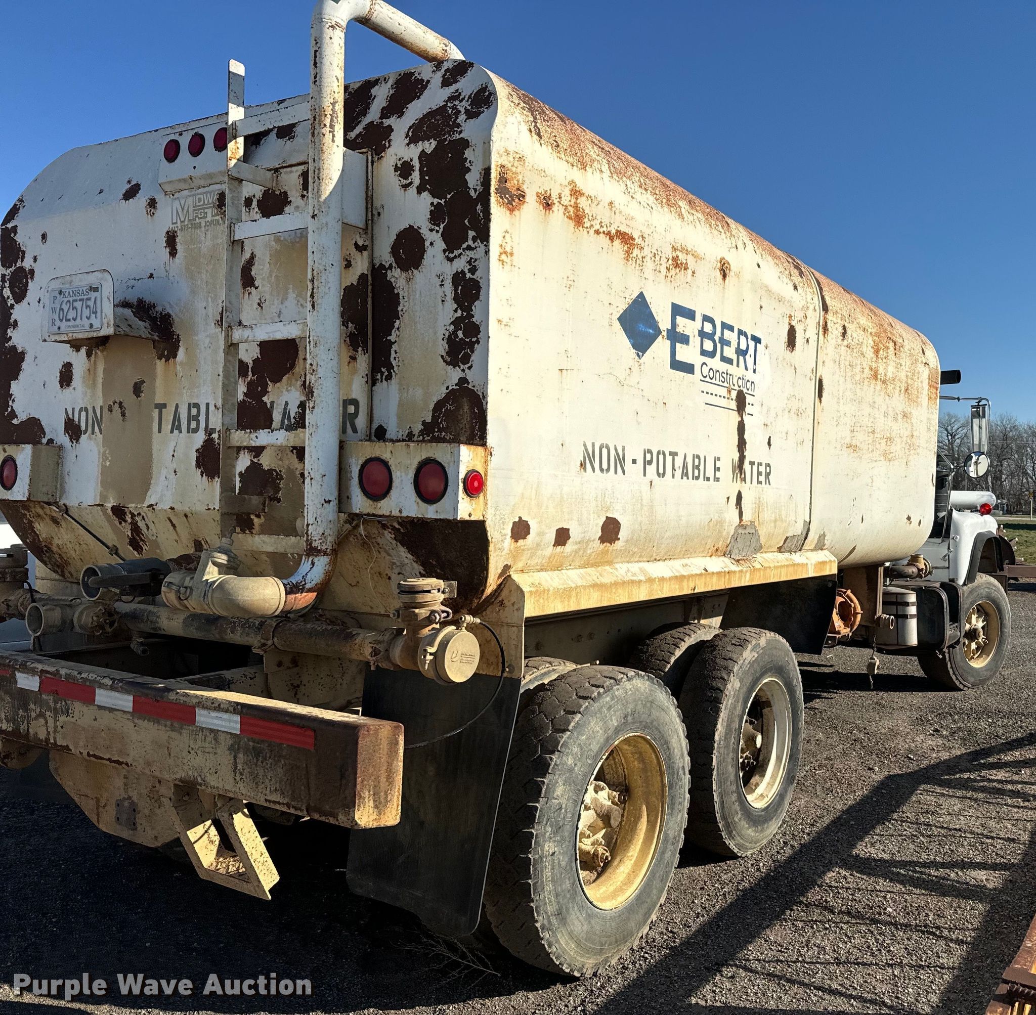 Purple Wave is selling a used Tank Truck or Water Truck in Kansas. This item is a 1980 Mack water truck with the following: Miles: 271,590 on odometer, Hours: 971 on meter, VIN: DM685S45744