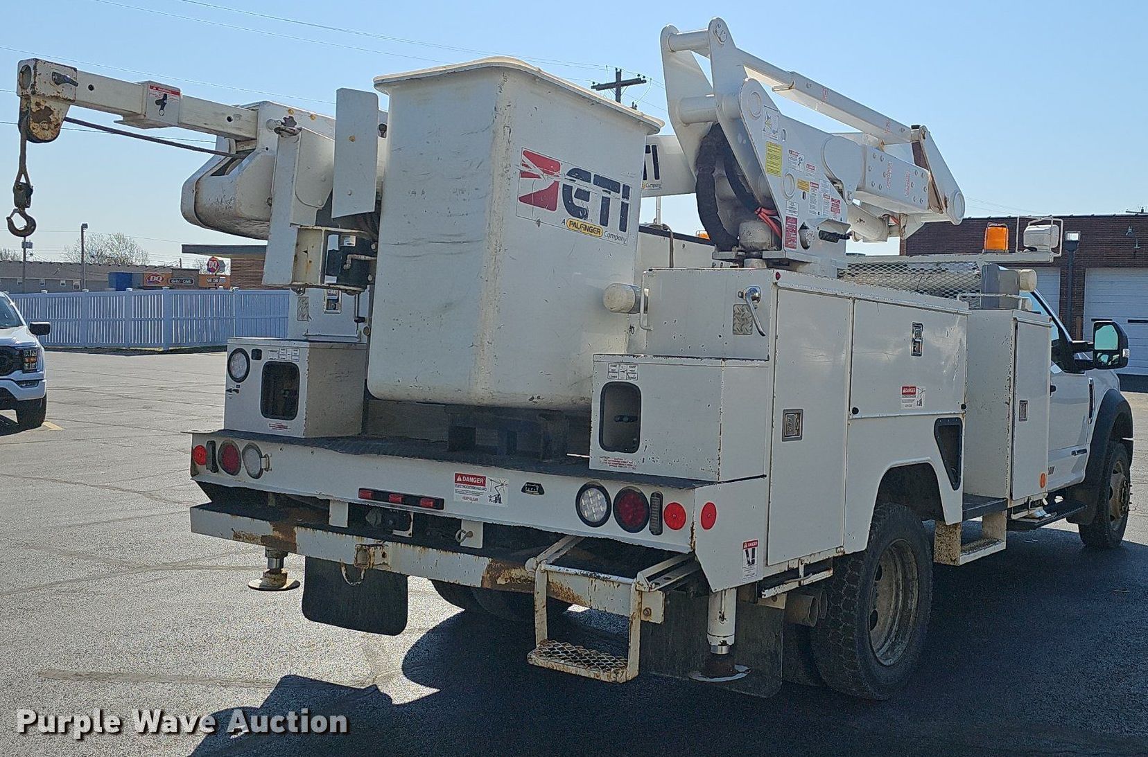 2018 Ford F550 Super Duty XL bucket truck. Miles: 172,266 on odometer, VIN: 1FDUF5HTXJEC47845, Unit #: 718. Engine Ford Power Stroke, Displacement: 6.7L, Cylinders: 8, Fuel type: Diesel. Transmission Automatic. Chassis Four wheel drive, Axles: Single, Suspension: Spring, Brakes: Hydraulic, PTO, GVWR: 19,500 lbs, Wheelbase: 169". Interior AC, heat, Power windows, power locks, Cruise control, Auxiliary controls, Brake controller. Features Bed ETI SB122DD96B18Q, Serial: 14425, 10' 2" L x 96" W, Boom 2011 ETI ETCMH37IH, Serial: 1111CM78645, Maximum lift capacity: 1,000 lbs, Maximum lift height: 37', Boom type: Articulating, Insulated, telescopic, Man basket Maximum capacity: 400 lbs, Boom controls Ground, Platform/ basket, Material handler. Tires Size: 225/70R19.5. Missouri title. Title distribution may be delayed up to 14 days from verification of funds. Southwest Electric Coop. 1023 S Springfield Ave. Bolivar, MO 65613