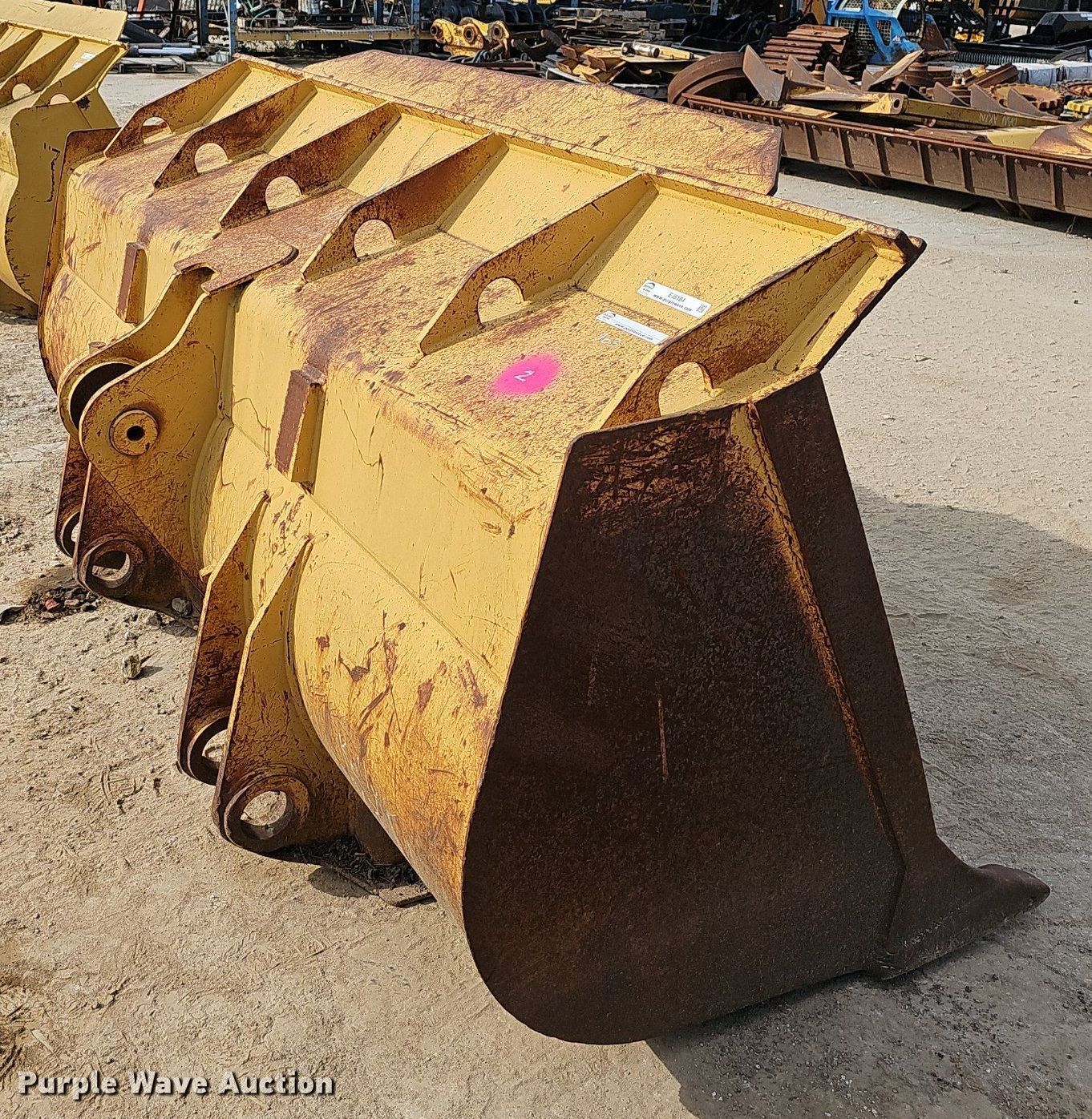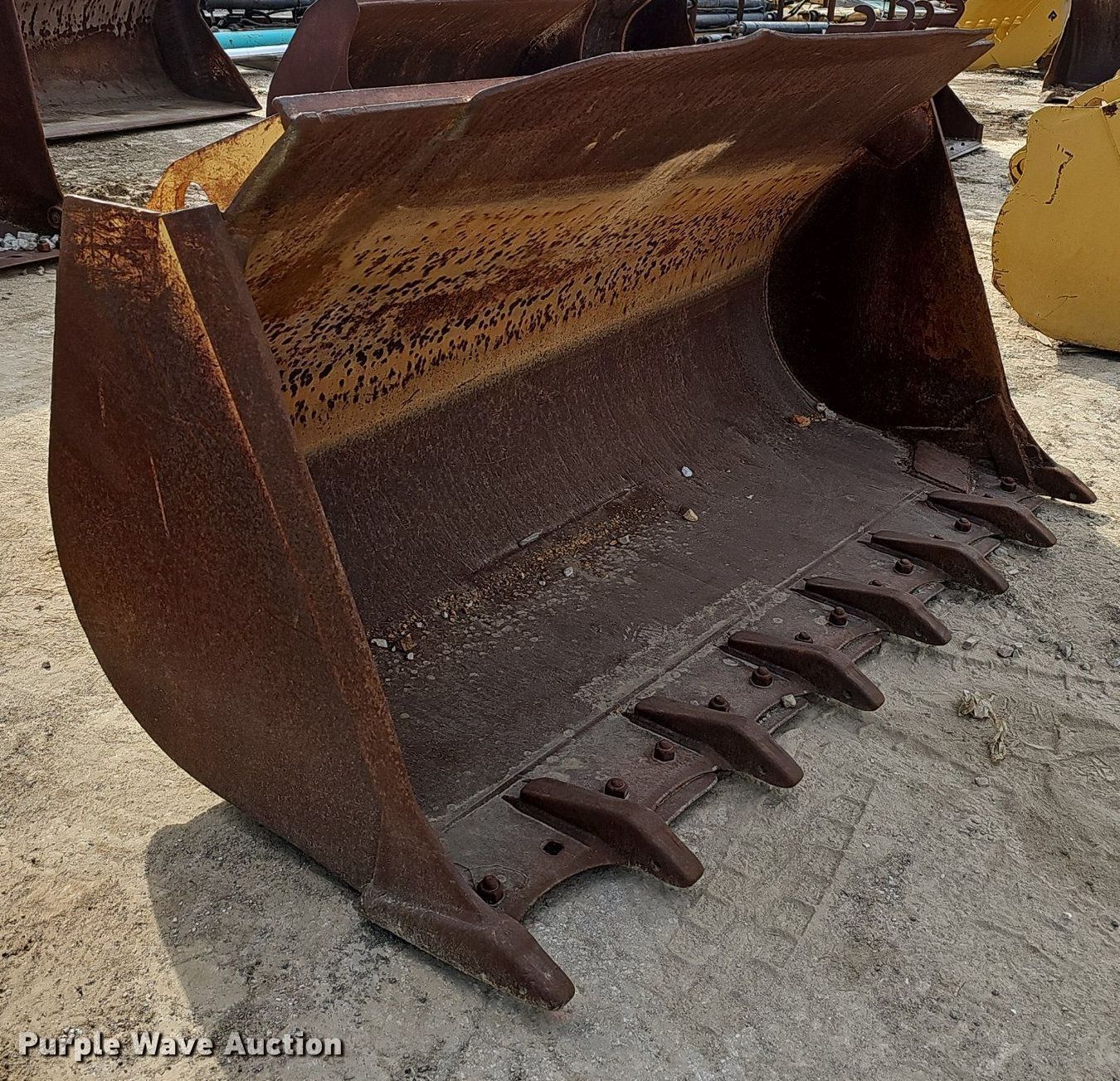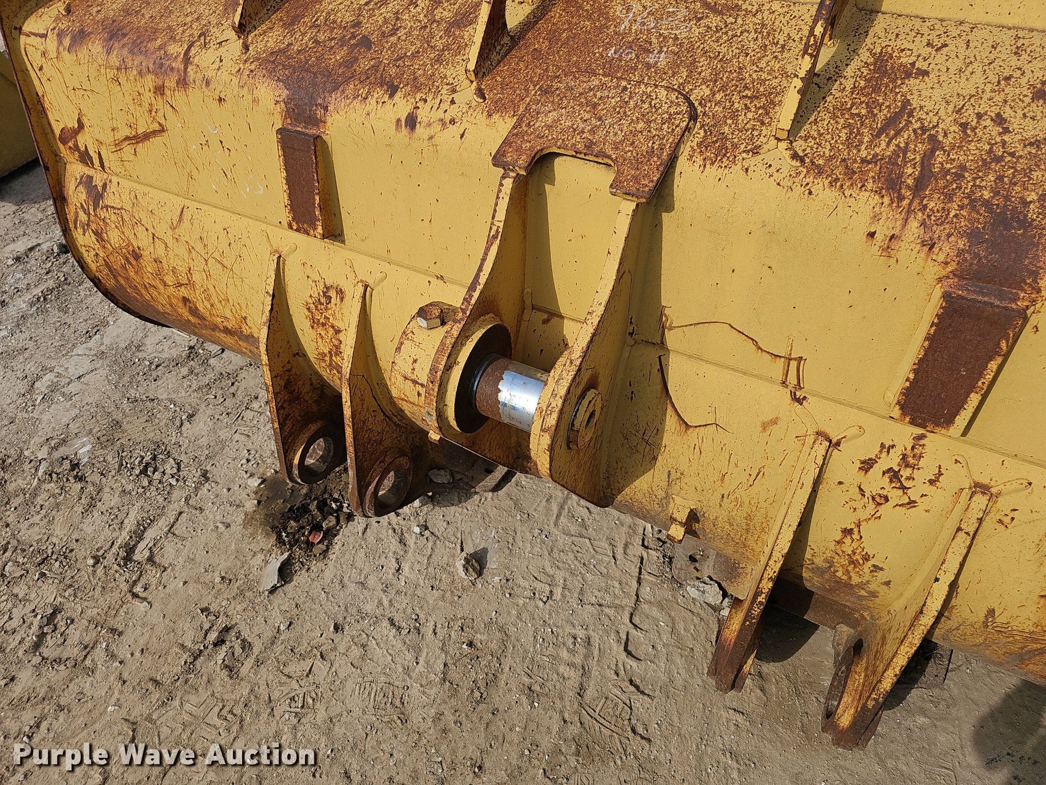 Purple Wave is selling a used Wheel Loader Attach. in Missouri. This item is a 100" W bucket with the following: Bolt on cutting edge, Weld on teeth, Teeth: 8, Fits Caterpillar 963