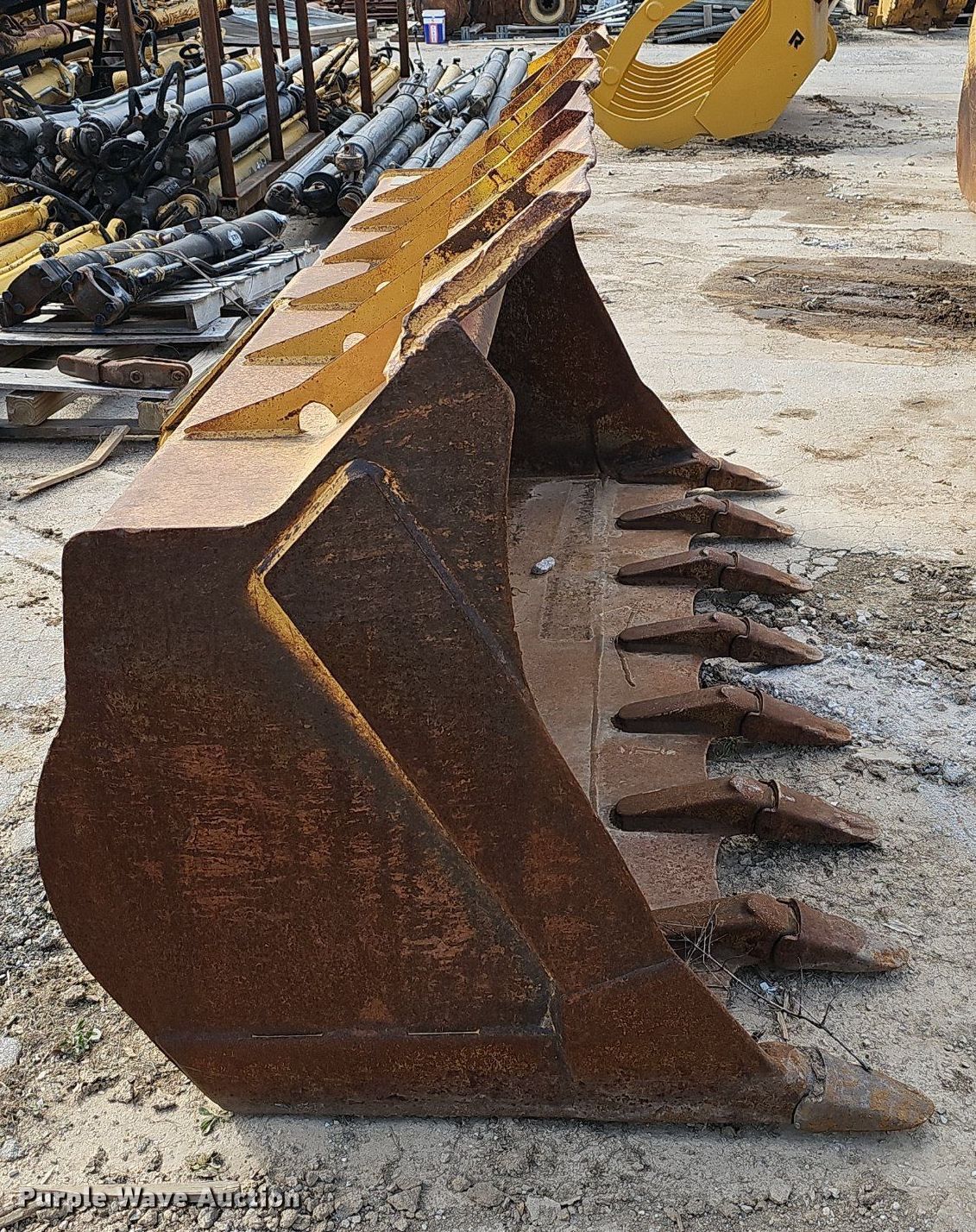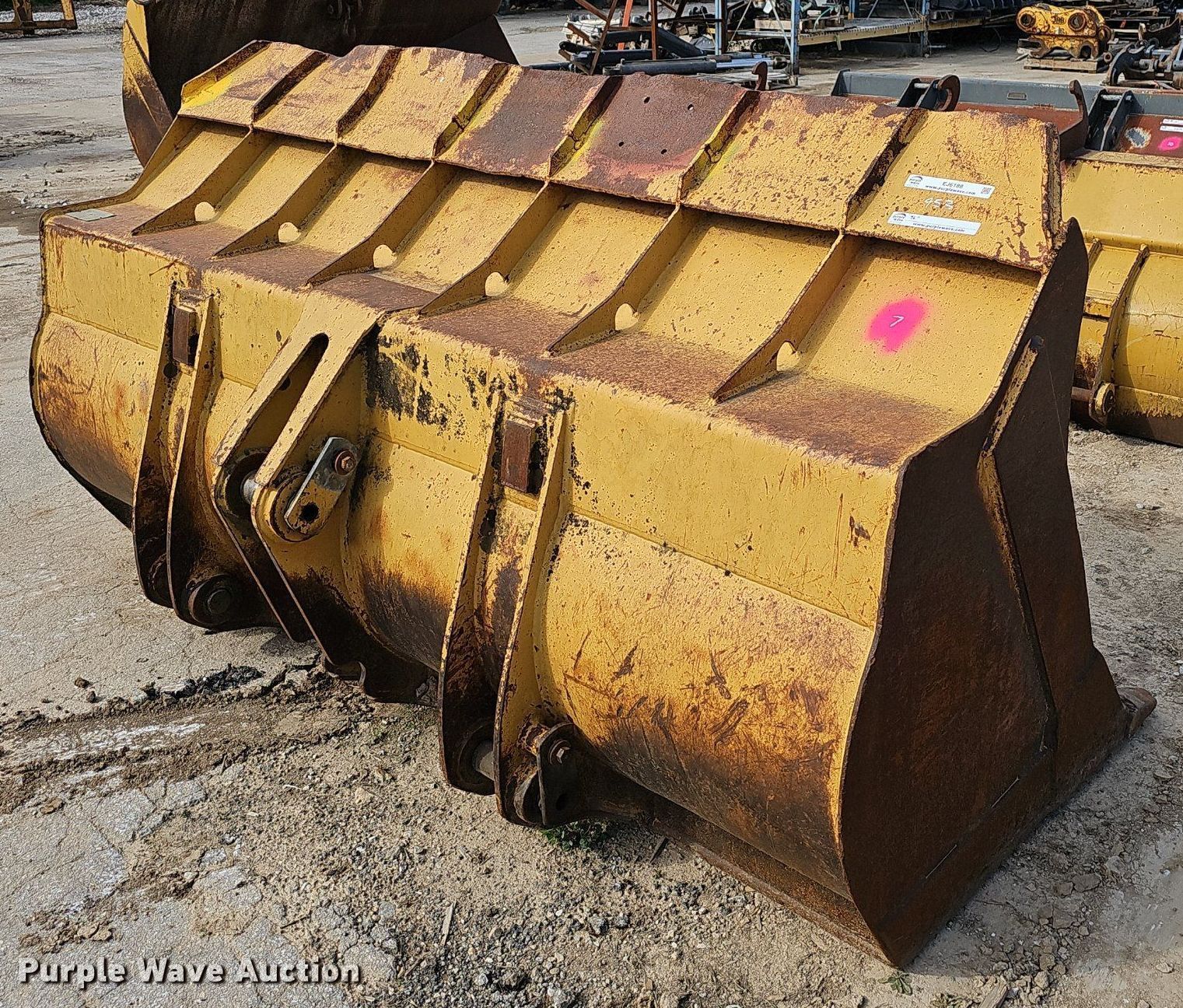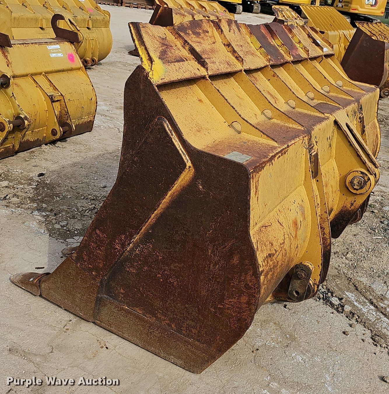 Purple Wave is selling a used Wheel Loader Attach. in Missouri. This item is a 96" W bucket with the following: Weld on teeth, Teeth: 8, Fits Caterpillar 953