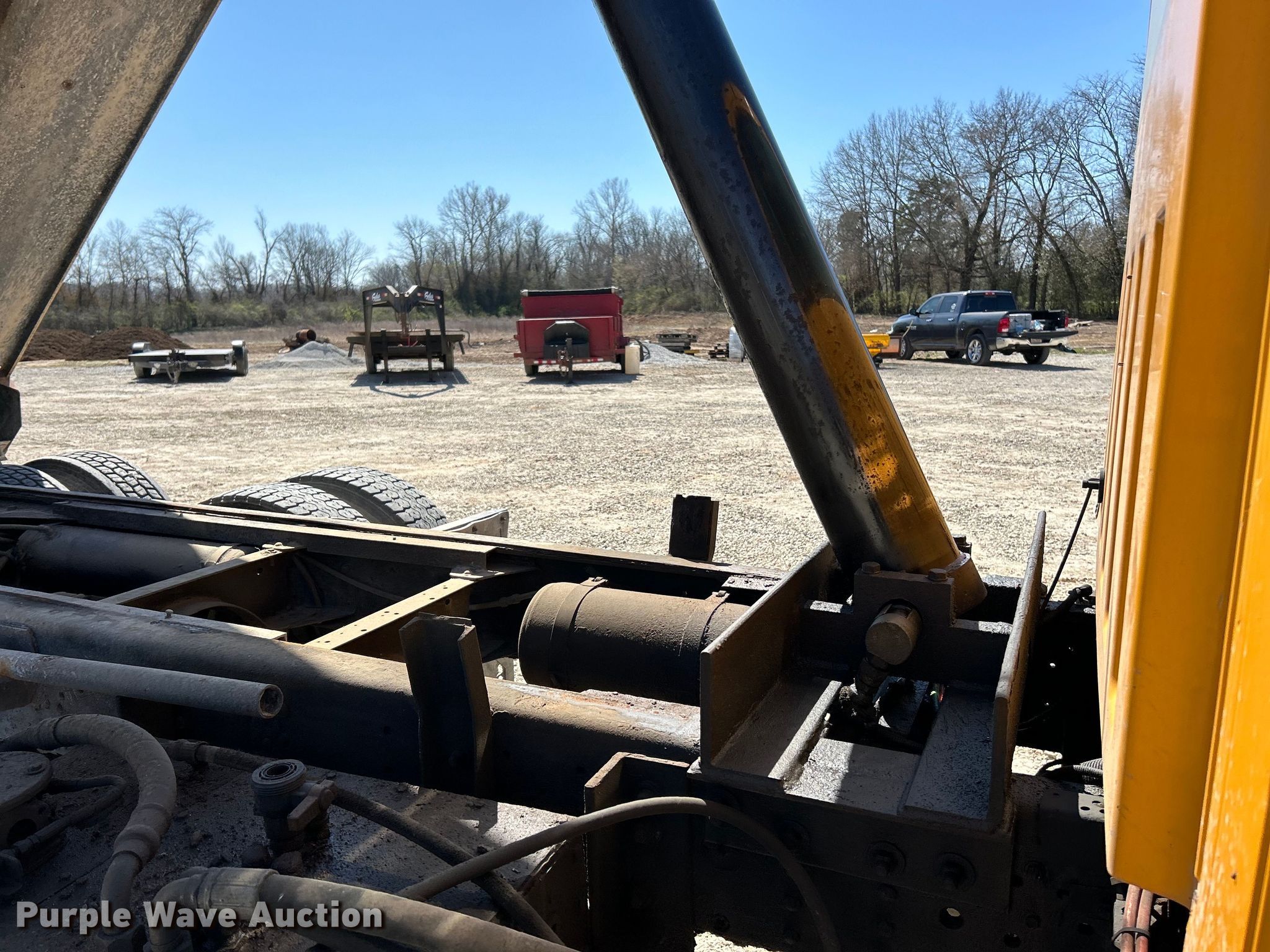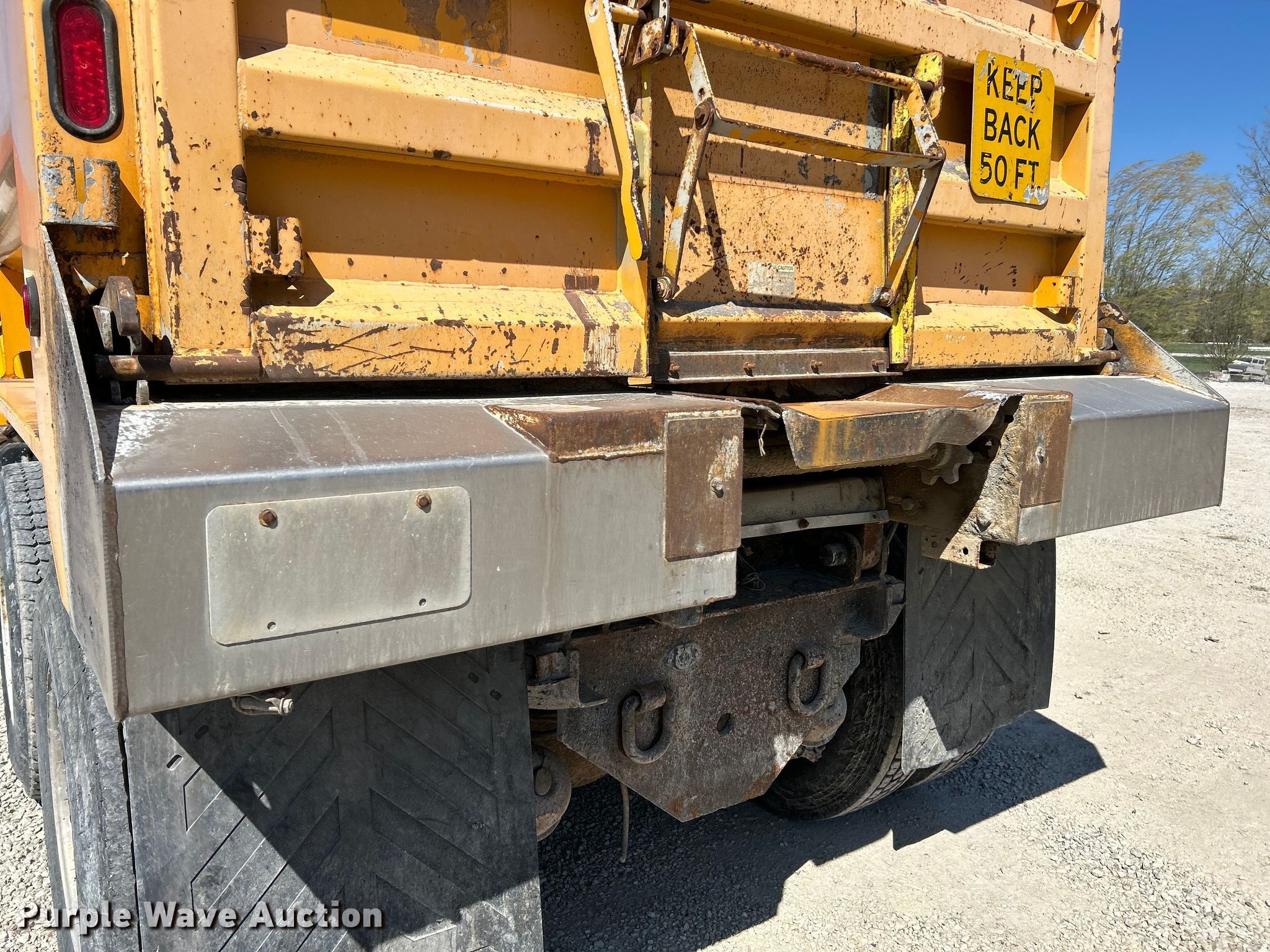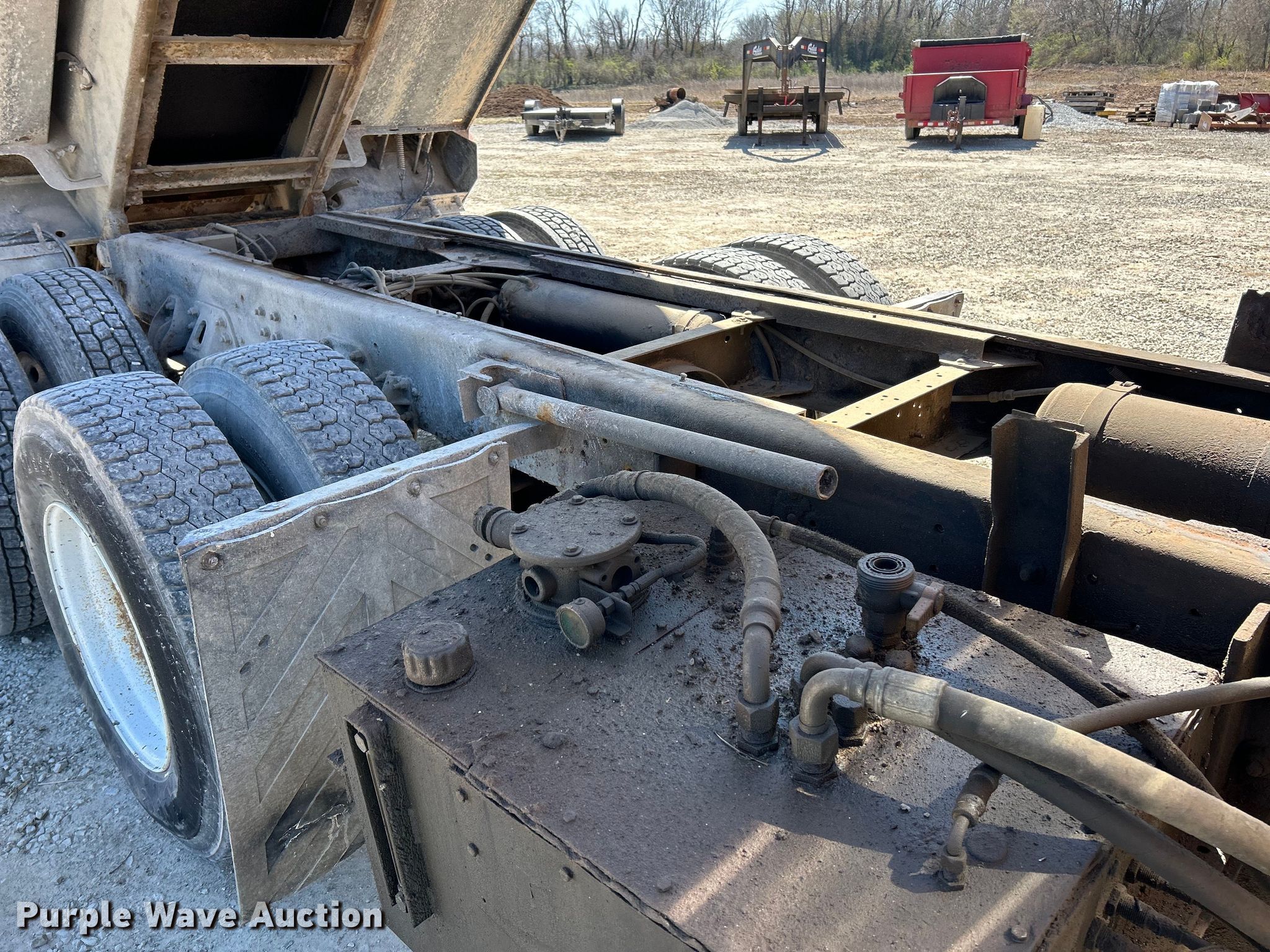 2006 GMC C8500 dump truck. Miles: 100,585 on odometer, VIN: 1GDT8C4C06F434092. Engine Caterpillar C7, Displacement: 7.2L, Cylinders: 6, Fuel type: Diesel. Transmission Automatic. Chassis Axles: Tandem, Suspension: Spring over walking beam, Brakes: Air, PTO, GVWR: 54,600 lbs FAWR: 14,600 lbs, IAWR: 20,000 lbs, RAWR: 20,000 lbs. Interior Heat, Cruise control. Features Dump bed 14' L x 96" W, Bed type: Barrel, Roll tarp, Ram: Single, End gate: Air operated. Tires Front: 315/80R22.5, Rear: 11R22.5. Notes Windshield chipped or cracked, Possible fuel issues, only starts with starting fluid. Missouri title. Title distribution may be delayed up to 14 days from verification of funds. Stump-I-Cide, LLC. Pacific, MO 63069