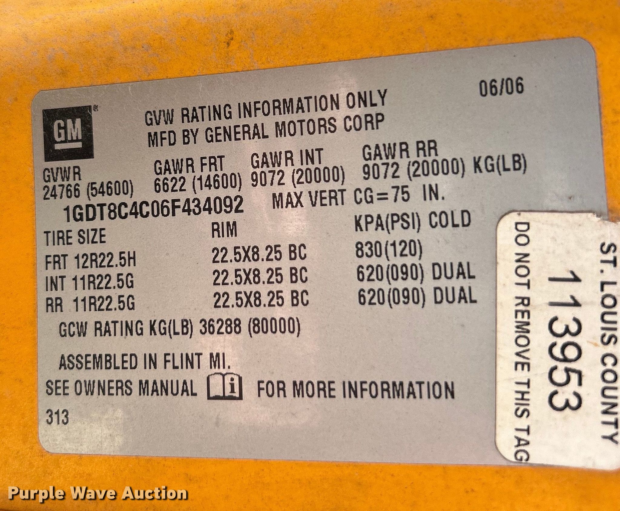 Purple Wave is selling a used Construction Dump Truck in Missouri. This item is a 2006 GMC C8500 dump truck with the following: Miles: 100,585 on odometer, VIN: 1GDT8C4C06F434092