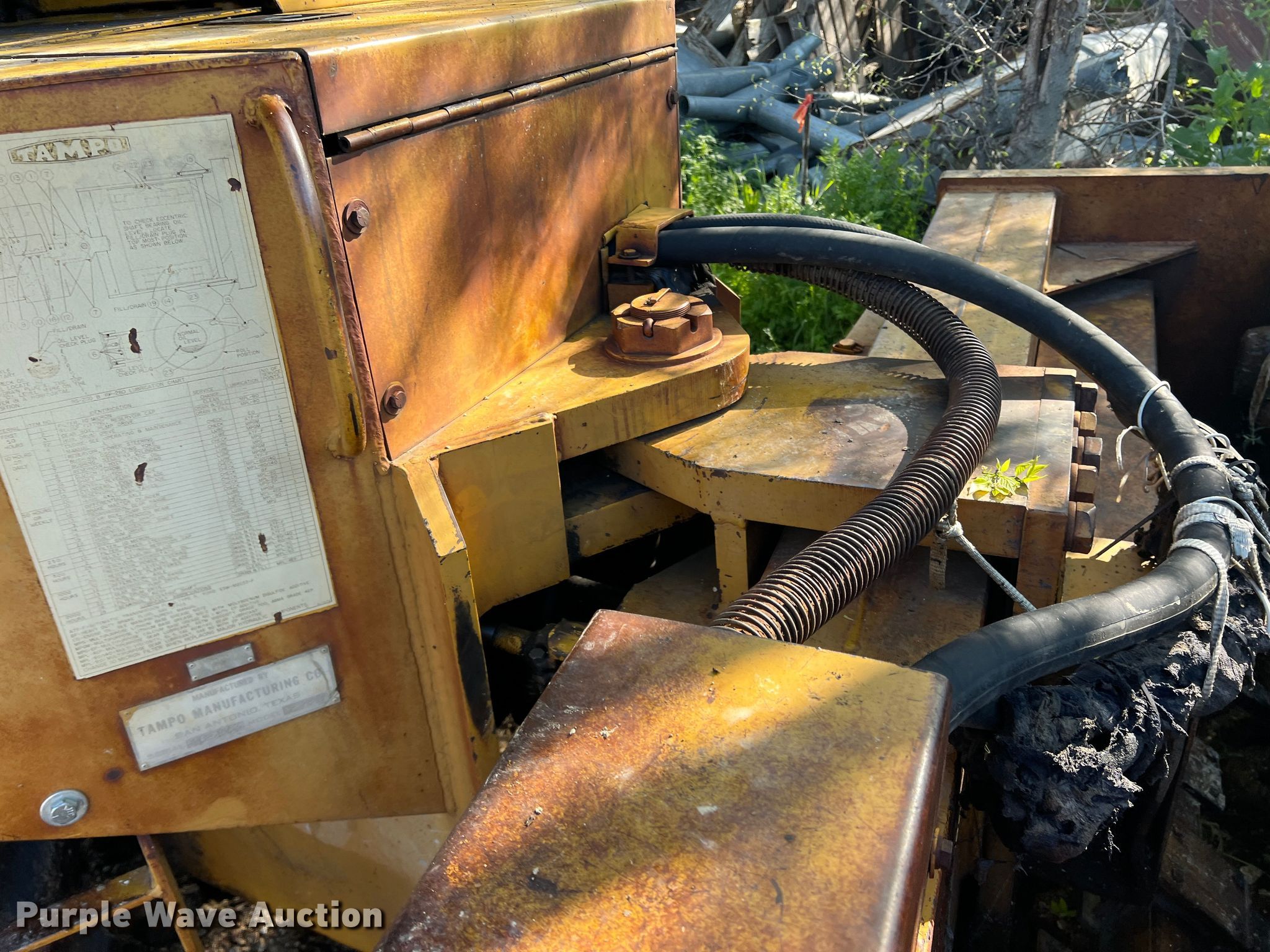 Purple Wave is selling a used Single Drum Roller Compactor in Texas. This item is a Tampo RP28D single drum roller with the following: Hours: 1,062 on meter, Serial: GMC-31553