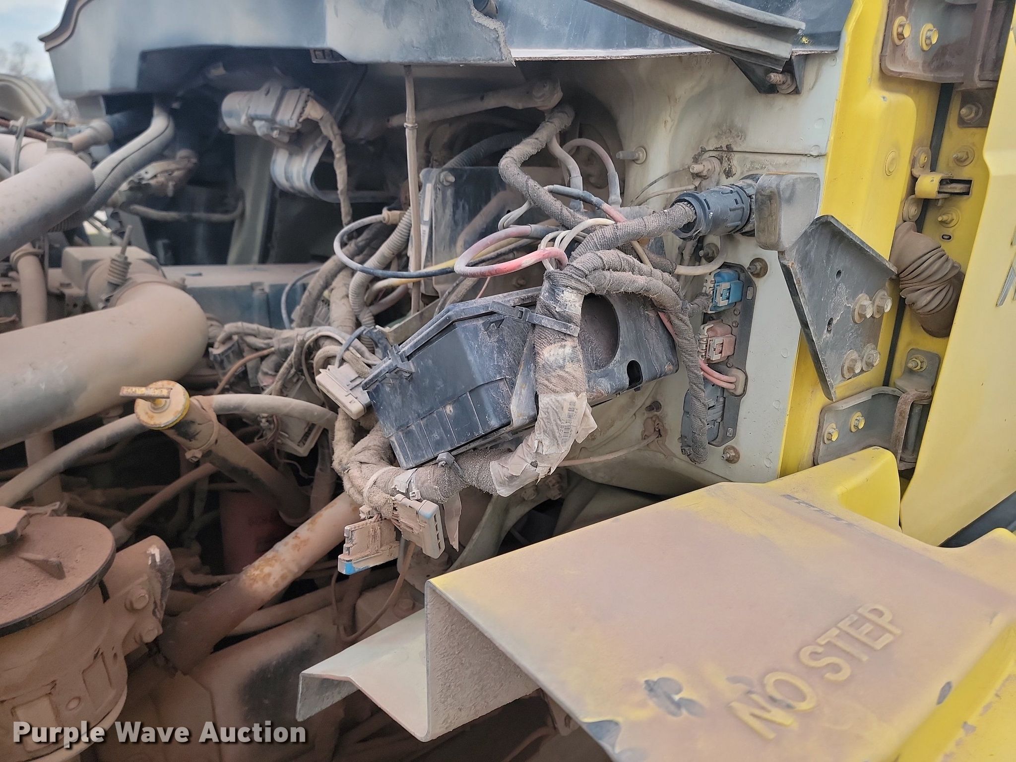 2002 International 7400 ready mix truck. Miles: 169,066 on odometer, Hours: 24,412 on meter, VIN: 1HTWHADT02J052807. Engine Cylinders: 6, Fuel type: Diesel. Transmission Eaton Fuller, Manual. Chassis Double frame, Axles: Tandem, Differential lock: Inter-axle, Suspension: Spring over walking beam, Brakes: Air, Front mount PTO. Interior AC, Heat, Cruise control. Features Mixer Kimber Mixer Company K-2000, Serial: KS29OHD200i, Capacity: 9 cu.yd., Discharge: Rear, In-cab controls, Rear drum controls, Water tank capacity: 115 gallons, Chute Extensions: 3, Chute type: Aluminum.. Tires Front: 425/65R22.5, Rear: 11R22.5, Lift axle: 215/75R17.5. Notes Transmission issues, shifts hard. South Dakota title. Title distribution may be delayed up to 14 days from verification of funds. Knife River - Sweetman Const.. 1305 N Louise Ave. Sioux Falls, SD 57107