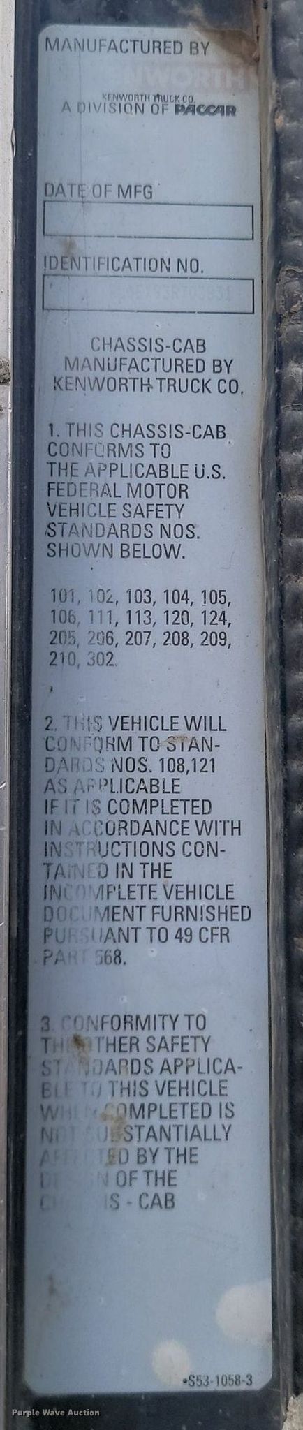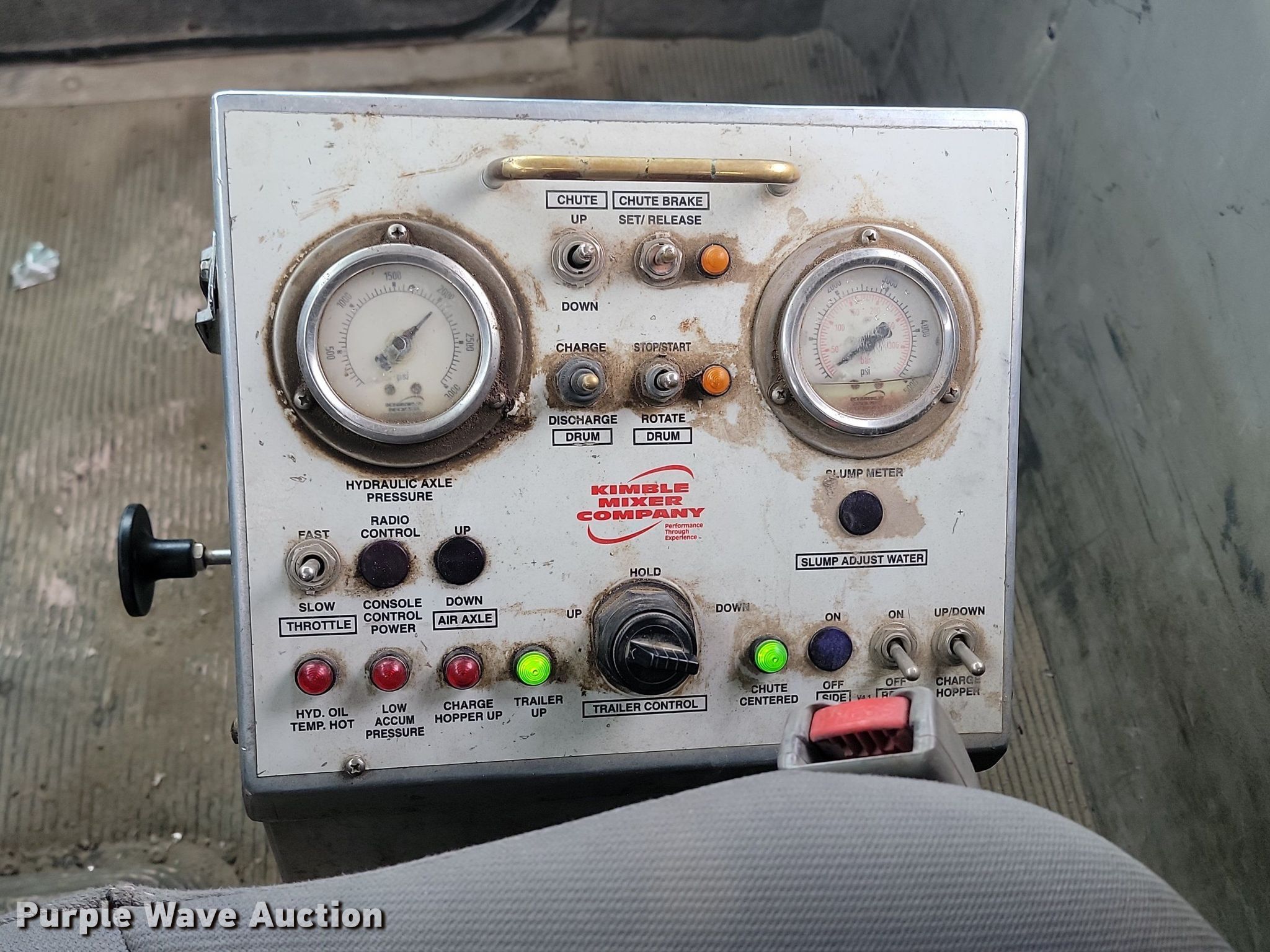 2003 Kenworth W900 ready mix truck. Miles: 209,266 on odometer, Hours: 27,170 on meter, VIN: 1NKWL0EX93R703831. Engine Cummins ISM, Displacement: 10.8L, Cylinders: 6, Fuel type: Diesel. Transmission Eaton Fuller, Manual, Speed: 11. Chassis Axles: 4, Pusher axle Steerable, Differential lock: Inter-axle, Suspension: Spring over walking beam, Brakes: Air, PTO, GVWR: 78,000 lbs. Interior AC, Heat, Heated mirrors, Cruise control. Features Mixer Kimberly K-2000, Serial: K211HD2007, Capacity: 11 cu.yd., Discharge: Rear, Bins: Sand, In-cab controls, Rear drum controls, Water tank capacity: 150 gallons, Chute Extensions: 3, Chute type: Aluminum.. Tires Front: 425/65R22.5, Rear: 11R22.5, Lift axle: 215/75R17.5. South Dakota title. Title distribution may be delayed up to 14 days from verification of funds. Knife River - Sweetman Const.. 1305 N Louise Ave. Sioux Falls, SD 57107