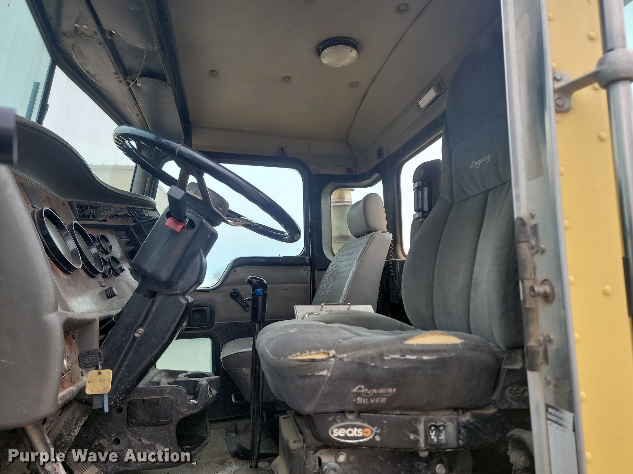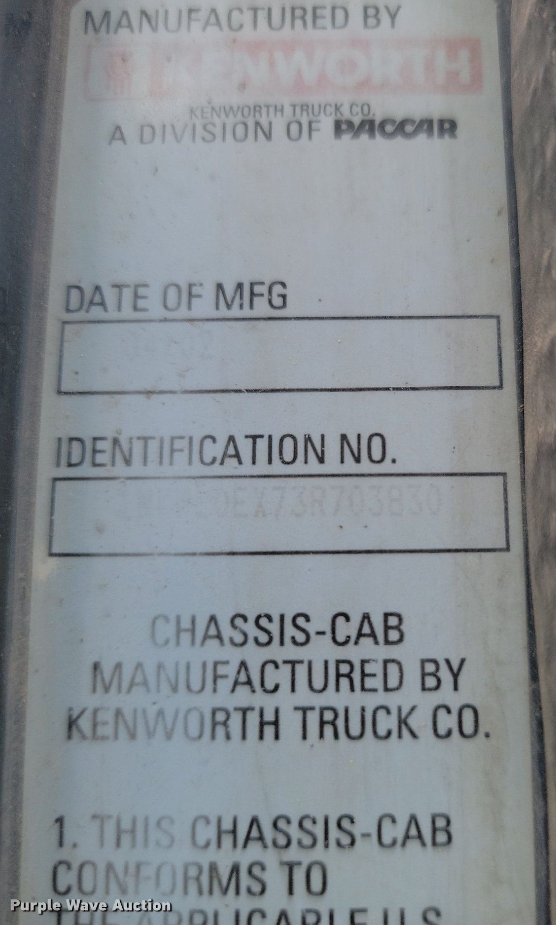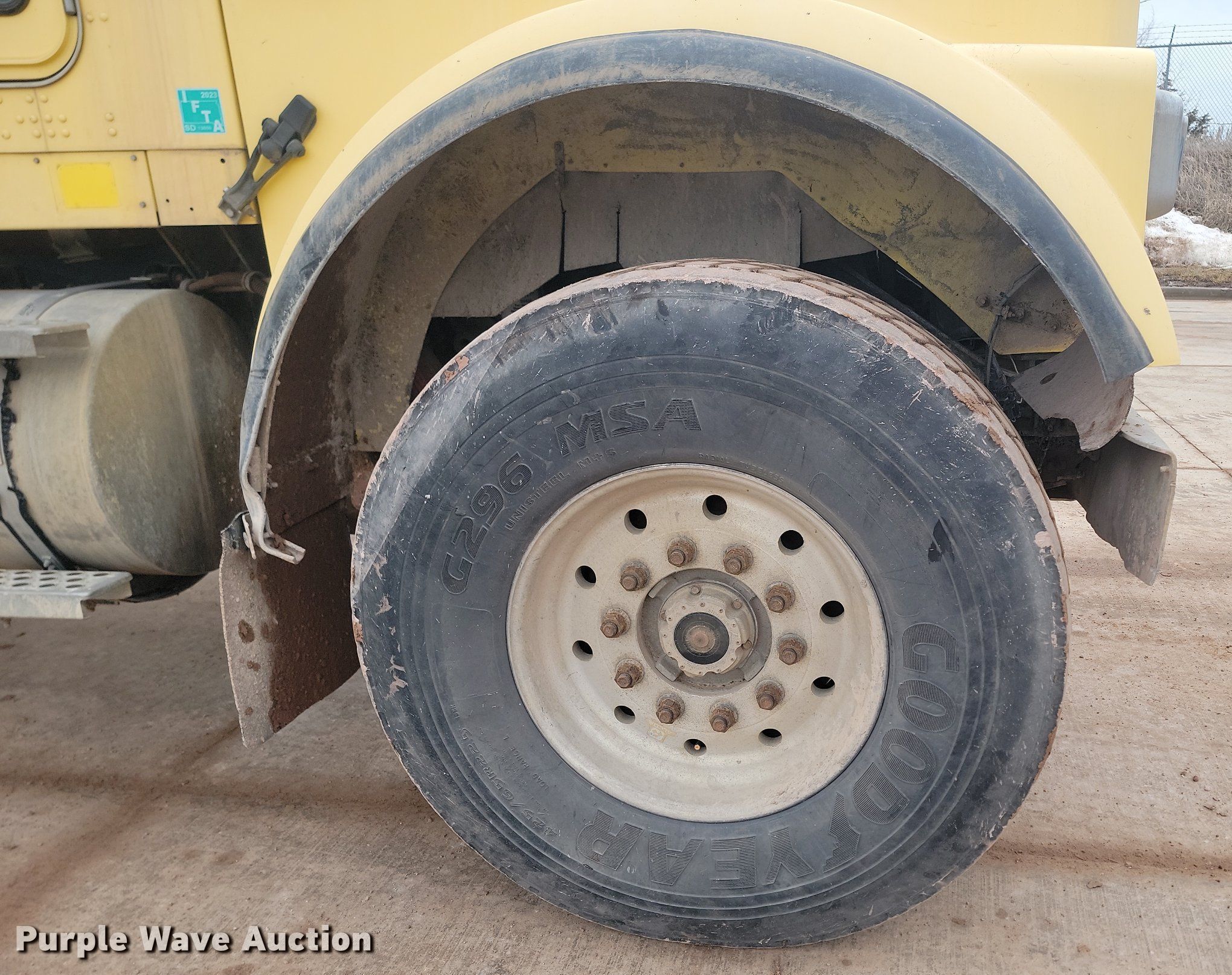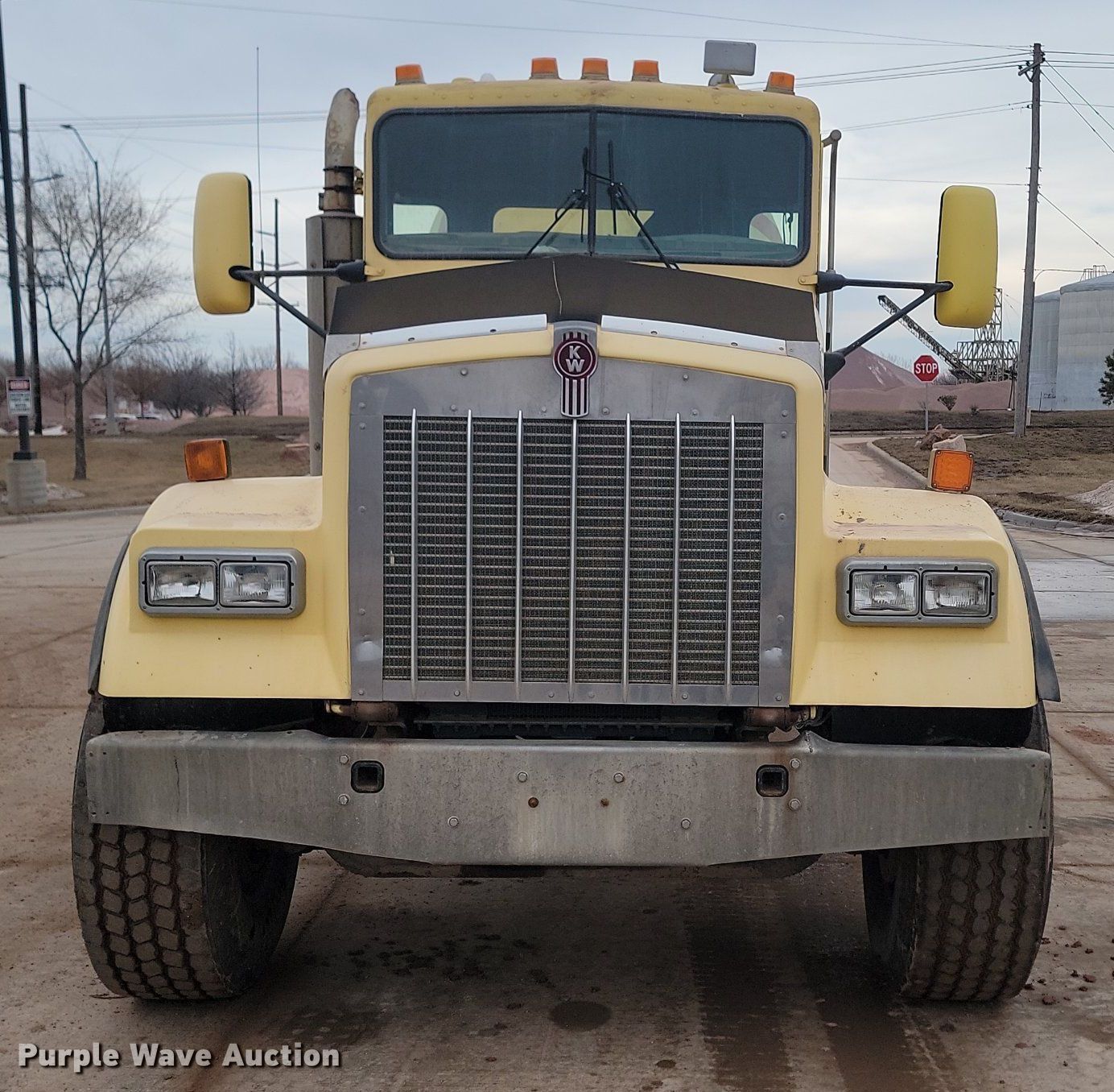 2003 Kenworth W900 ready mix truck. Miles: 247,099 on odometer, Hours: 33,025 on meter, VIN: 1NKWL0EX73R703830. Engine Cummins ISM, Displacement: 10.8L, Cylinders: 6, Fuel type: Diesel. Transmission Eaton Fuller, Manual, Speeds: 11. Chassis Axles: 4, Pusher axle Steerable, Tag axle, Differential lock: Inter-axle, Suspension: Spring over walking beam, Brakes: Air, PTO. Interior AC, Heat, Heated mirrors, Cruise control. Features Mixer Kimber K-2000, Serial: K211HD2006, Capacity: 11 cu.yd., Discharge: Rear, In-cab controls, Rear drum controls, Water tank capacity: 150 gallons, Chute Extensions: 3, Chute type: Aluminum.. Tires Front: 425/65R22.5, Rear: 11R22.5, Lift axle: 215/75R17.5. South Dakota title. Title distribution may be delayed up to 14 days from verification of funds. Knife River - Sweetman Const.. 1305 N Louise Ave. Sioux Falls, SD 57107