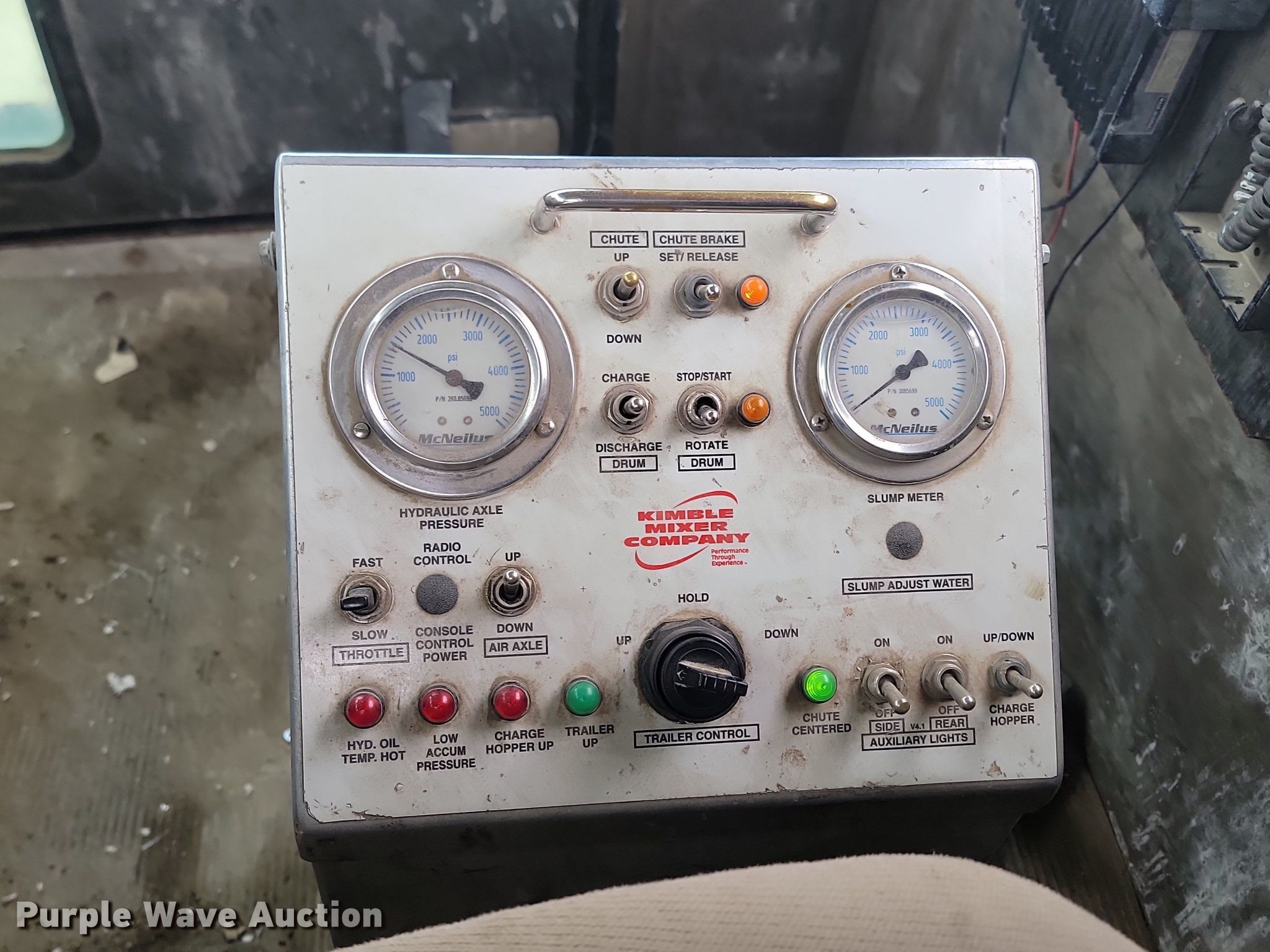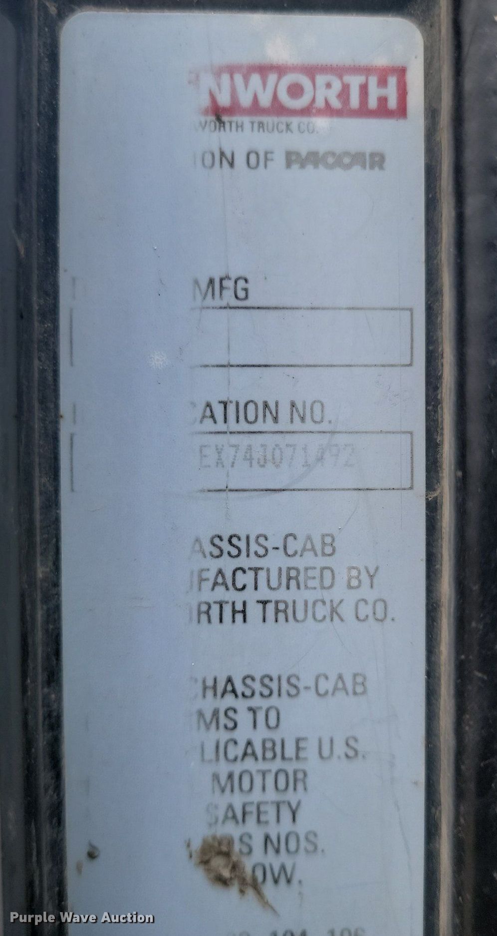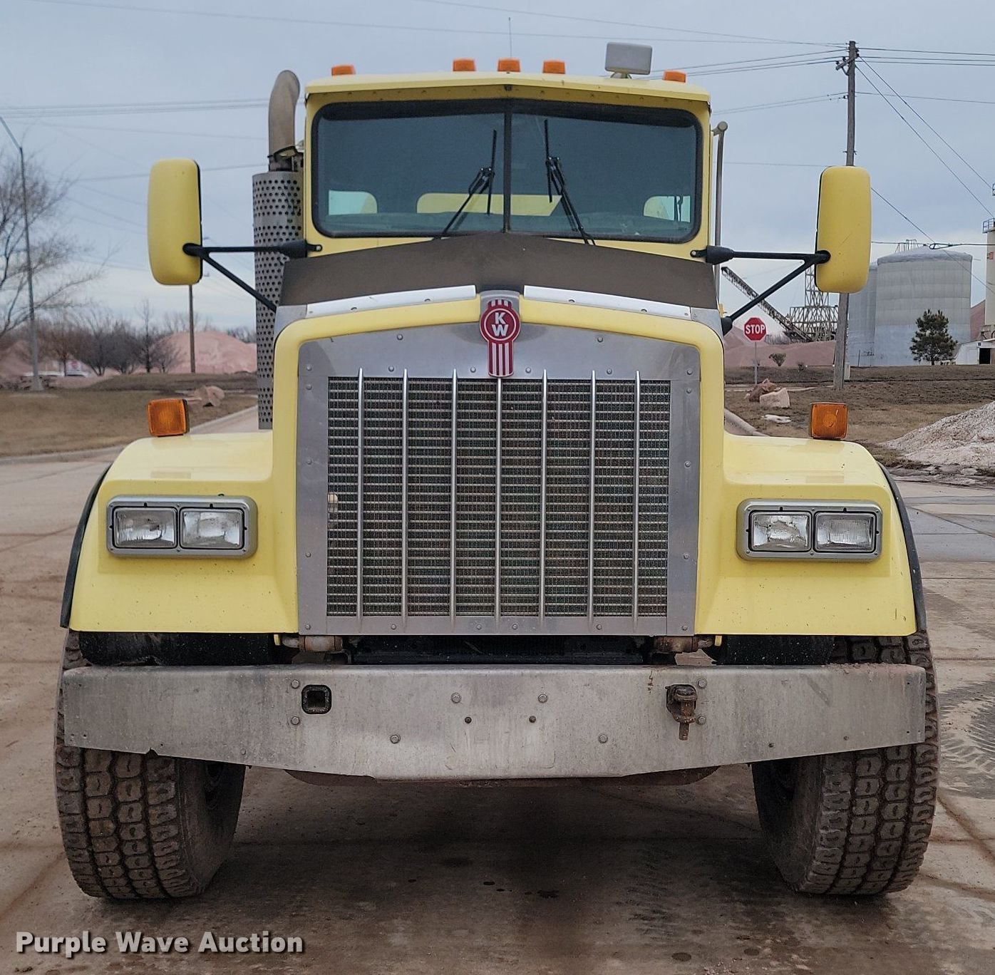 2004 Kenworth W900 ready mix truck. Miles: 5,851 on odometer Actual miles unknown, Hours: 5,043 on meter Actual hours unknown, VIN: 1NKWL0EX74J071492. Engine Cummins, Cylinders: 6, Fuel type: Diesel. Transmission Eaton Fuller, Manual, Speed: 11. Chassis Axles: 4, Pusher axle Steerable, Tag axle Steerable, Differential lock: Inter-axle, Suspension: Spring over walking beam, Brakes: Air, PTO, GVWR: 78,000 lbs FAWR: 20,000 lbs, IAWR: 23,000 lbs, RAWR: 23,000 lbs. Interior AC, Heat, Heated mirrors, Cruise control. Features Mixer Kimber K-2000, Serial: K211HD2396, Capacity: 11 cu.yd., Discharge: Rear, Bins: Aggregate, In-cab controls, Rear drum controls, Water tank capacity: 150 gallons, Chute Extensions: 3, Chute type: Aluminum.. Tires Front: 425/65R22.5, Rear: 11R22.5, Lift axle: 255/70R22.5. Notes Odometer meter has been replaced, Hour meter has been replaced. South Dakota title. Title distribution may be delayed up to 14 days from verification of funds. Knife River - Sweetman Const.. 1305 N Louise Ave. Sioux Falls, SD 57107