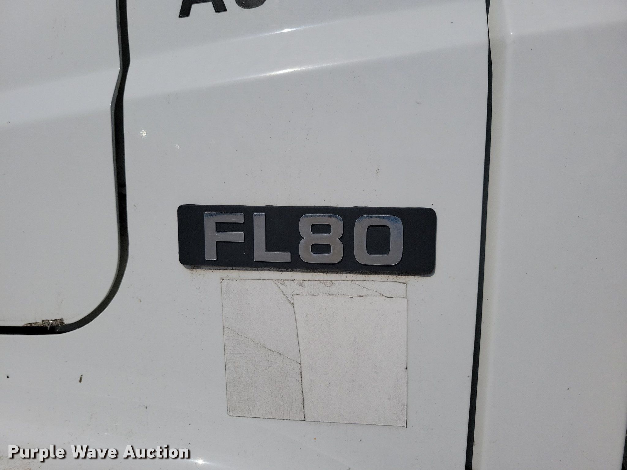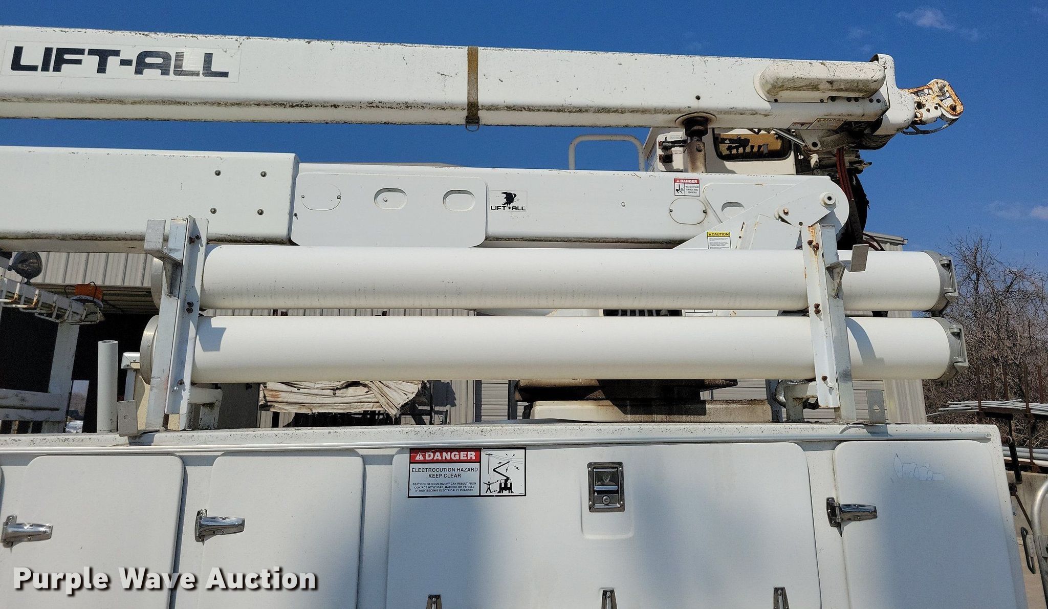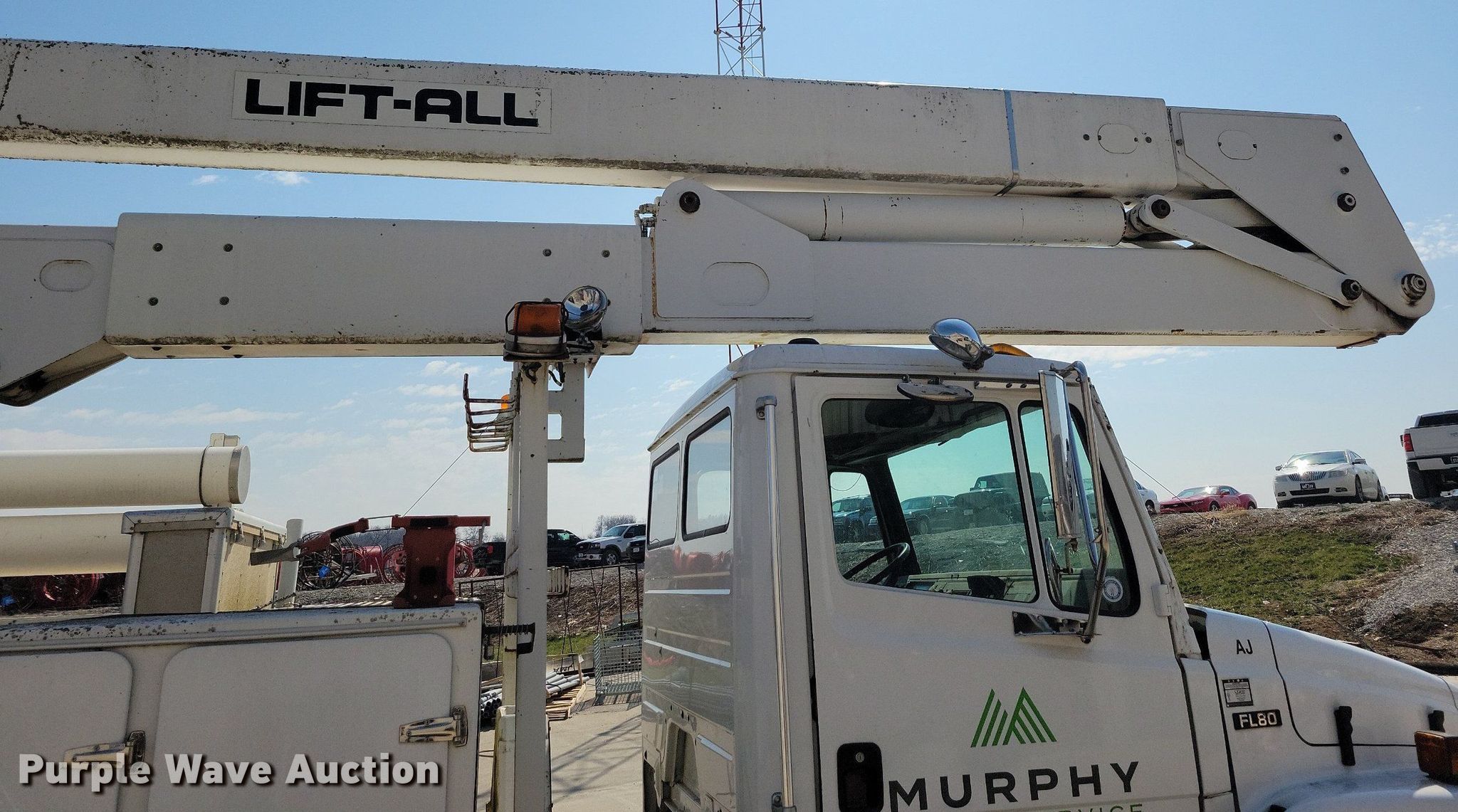 2003 Freightliner FL80 bucket truck. Miles: 124,429 on odometer, Hours: 13,245 on meter, VIN: 1FVABXAK53HK87207. Engine Caterpillar 3126, Serial: HEP02068, Displacement: 7.2L, Cylinders: 6, Fuel type: Diesel. Transmission Allison, Automatic. Chassis Axles: Single, Suspension: Spring, Brakes: Air, PTO, GVWR: 36,200 lbs. Interior AC, Heat, Cruise control, Auxiliary controls, Brake controller. Features Bed Astoria, Serial: 3006-02-9, 12' L x 96" W, Boom 2002 Lift All LOM-55-2MS, Serial: 7457100255LOM, Boom length: 46', Mast height: 9', Maximum lift capacity: 600 lbs, Maximum lift height: 55', Boom type: Articulating, Insulated, Man basket, Boom controls Platform / basket, Material handler. Tires Size: 11R22.5. Iowa title. Title distribution may be delayed up to 14 days from verification of funds. Murphy Tower Service. 20220 Iowa 5. Carlisle, IA 50047