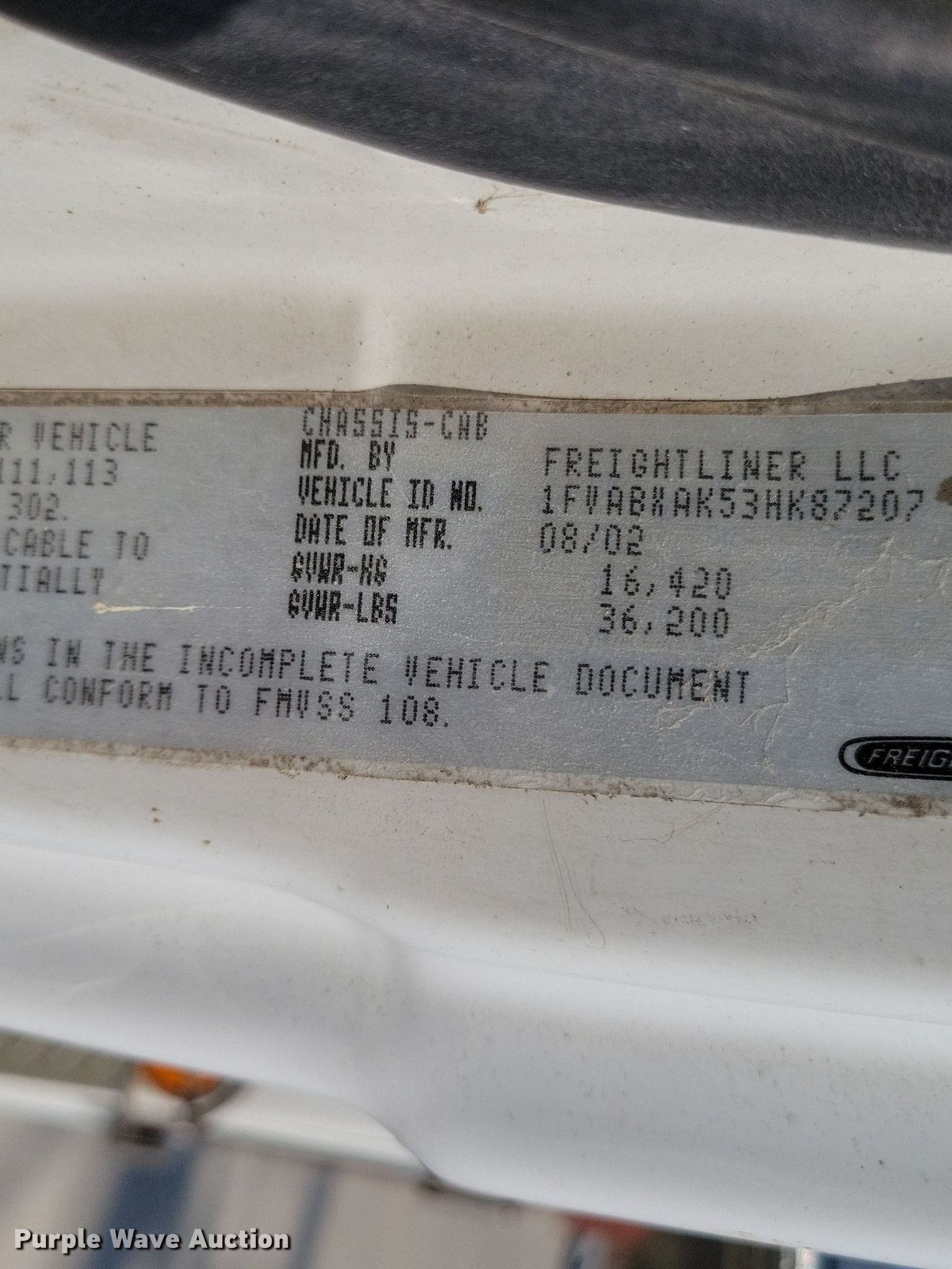 Purple Wave is selling a used Bucket Truck in Iowa. This item is a 2003 Freightliner FL80 bucket truck with the following: Miles: 124,429 on odometer, Hours: 13,245 on meter, VIN: 1FVABXAK53HK87207