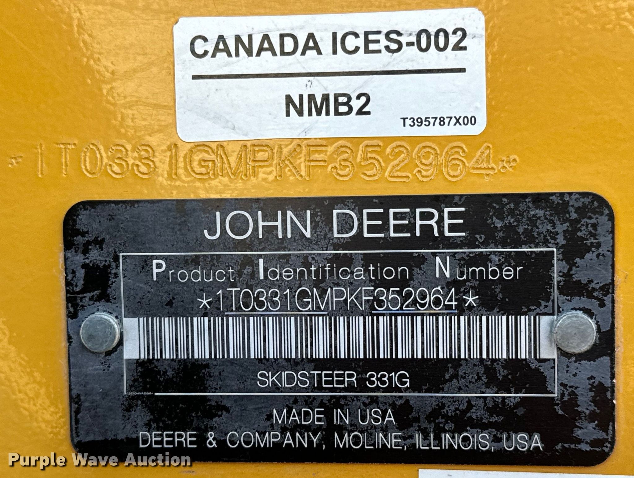 Purple Wave is selling a used Tracked Skid Steer Loader in Kansas. This item is a 2019 John Deere 331G tracked skid steer loader with the following: Hours: 1,453 on meter, Serial: 1T0331GMPKF352964
