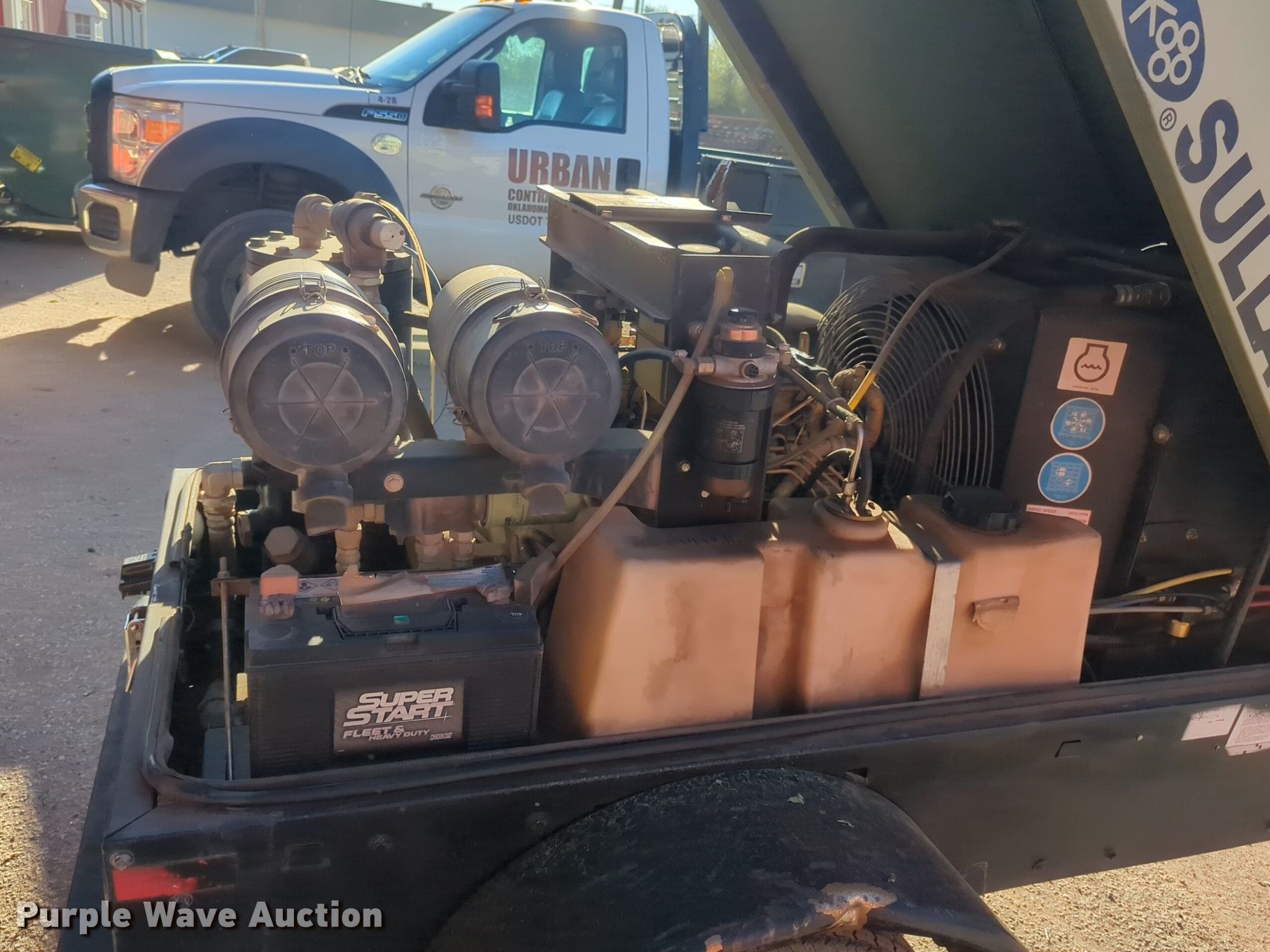 Sullair 185 air compressor. Hours: 1,312 on meter, Serial: 201109160021. Engine Caterpillar C2.2, Cylinders: 4, Fuel type: Diesel. Features Generator Electric start, Fuel tank, Air compressor CFM: 185, PSI: 100. Trailer 11' L x 60" W, Axles: Single, Tire size: 175/80R13. Transfer of ownership documentation will be a bill of sale. Urban Contractors, LLC. 7113 North Bryant Avenue. Oklahoma City, OK 73111