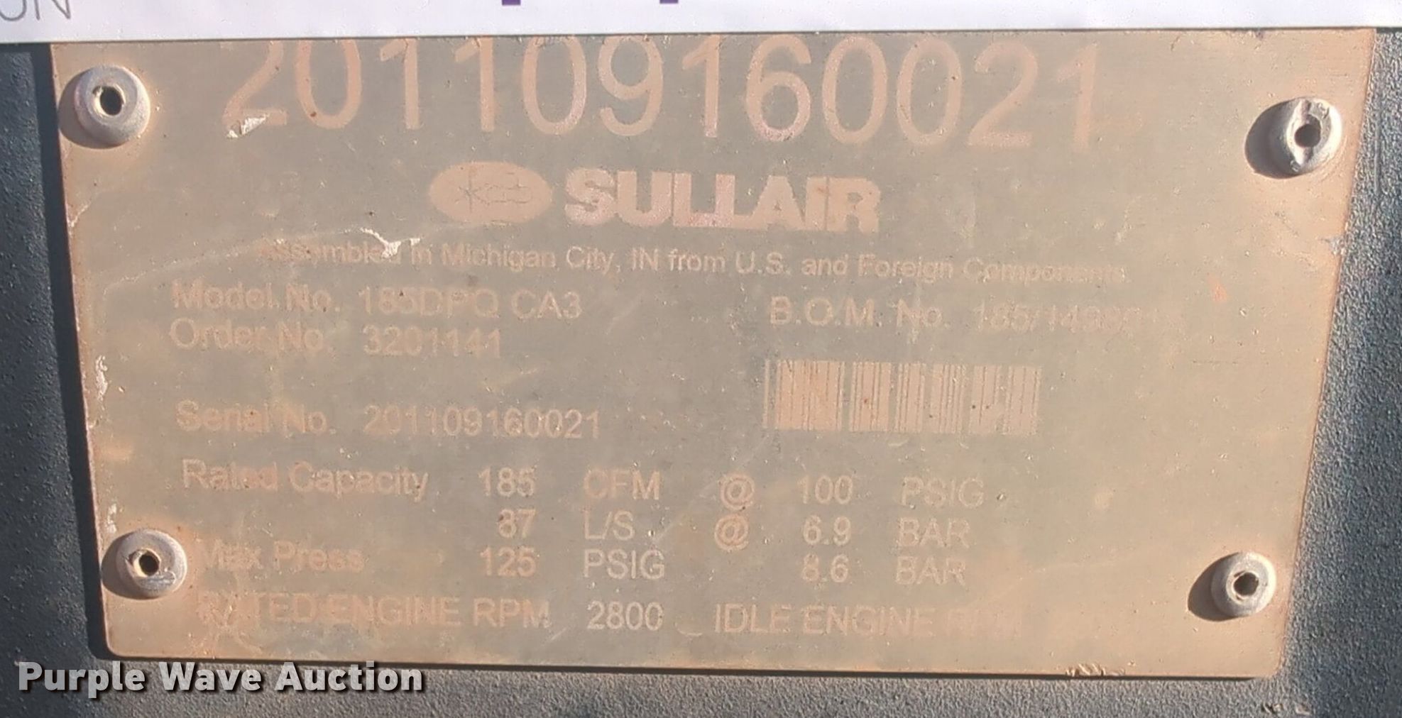 Purple Wave is selling a used Air Compressor in Oklahoma. This item is a Sullair 185 air compressor with the following: Hours: 1,312 on meter, Serial: 201109160021