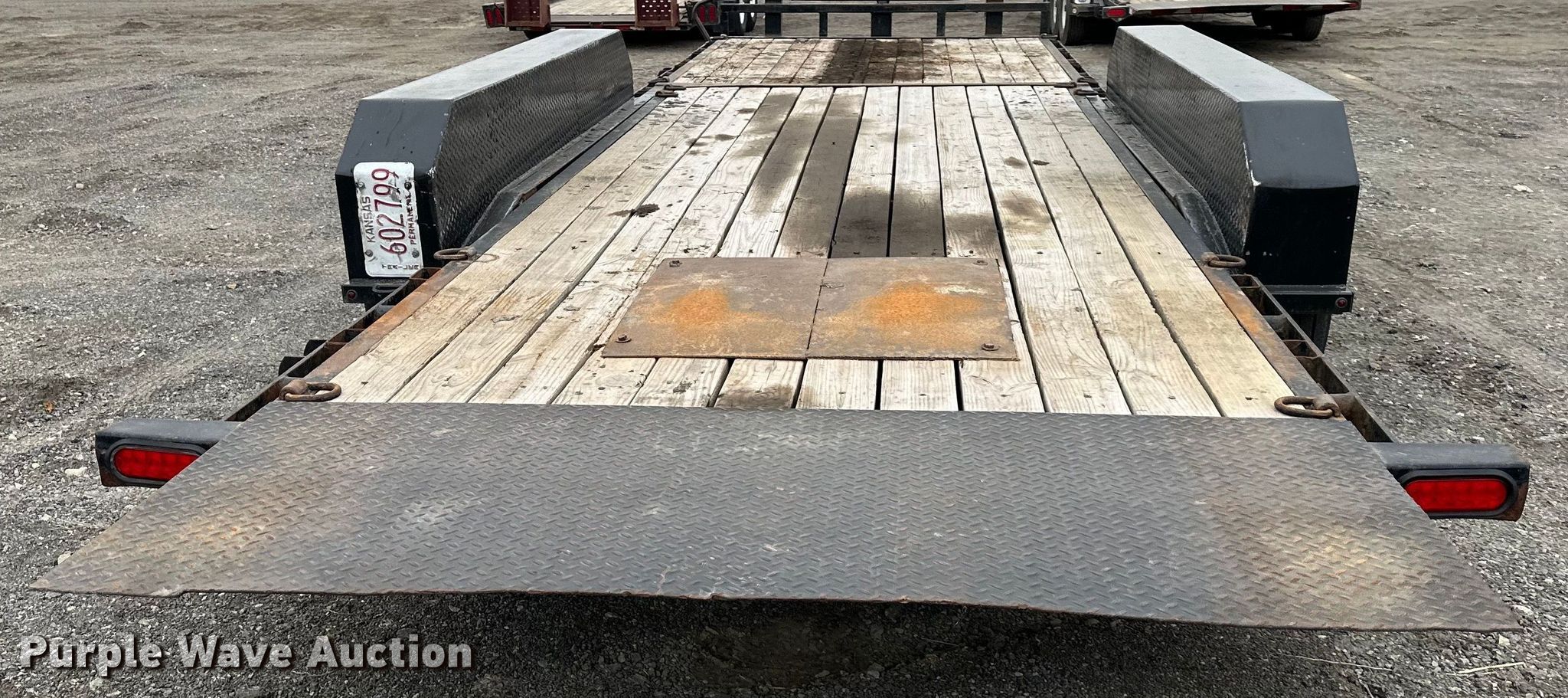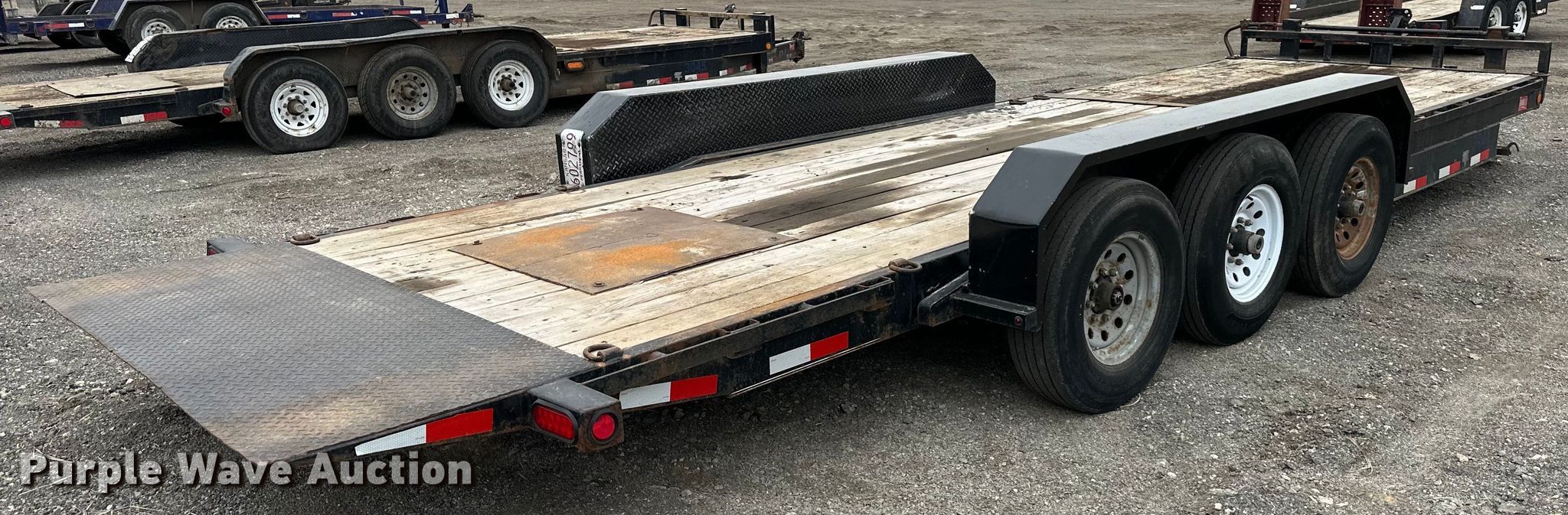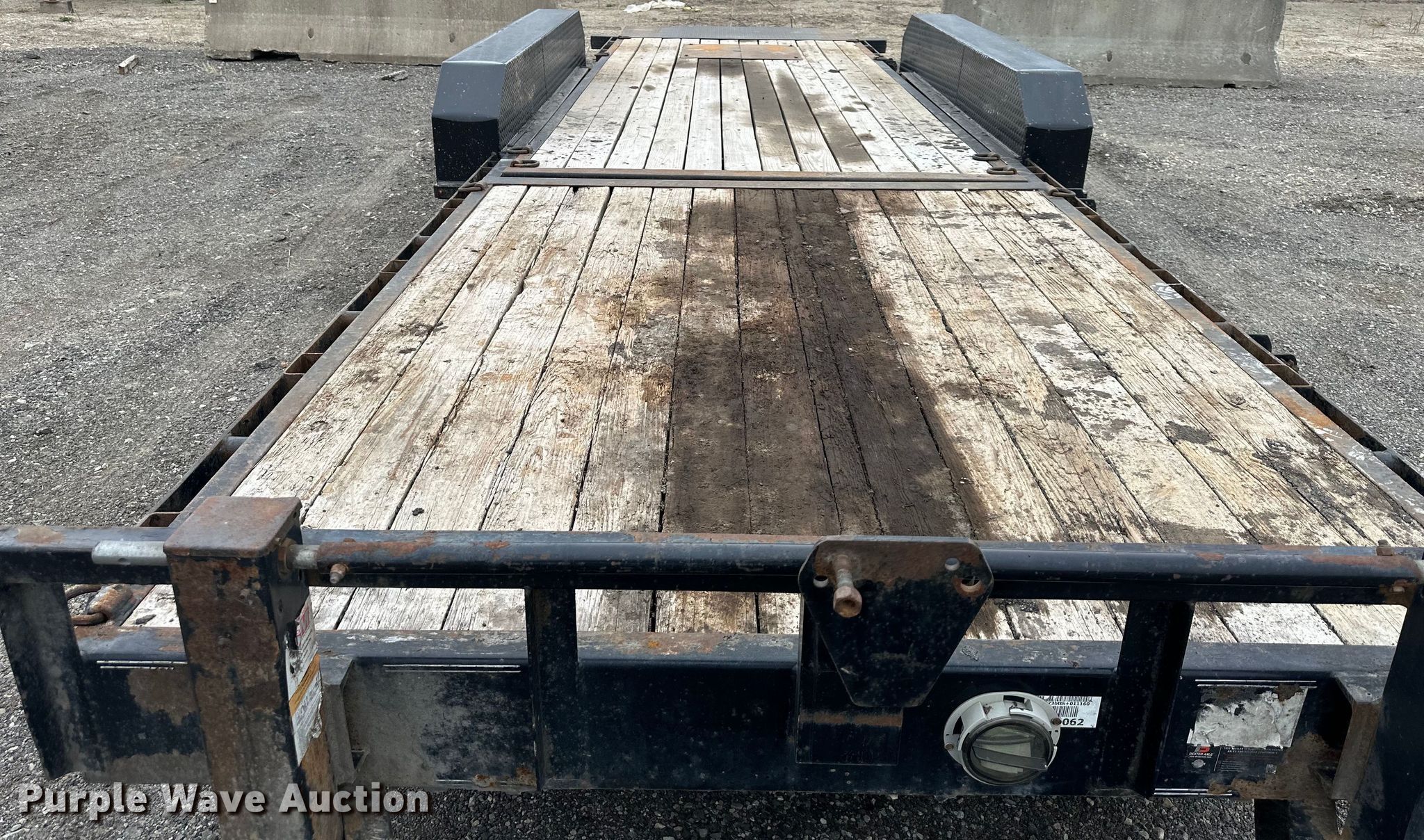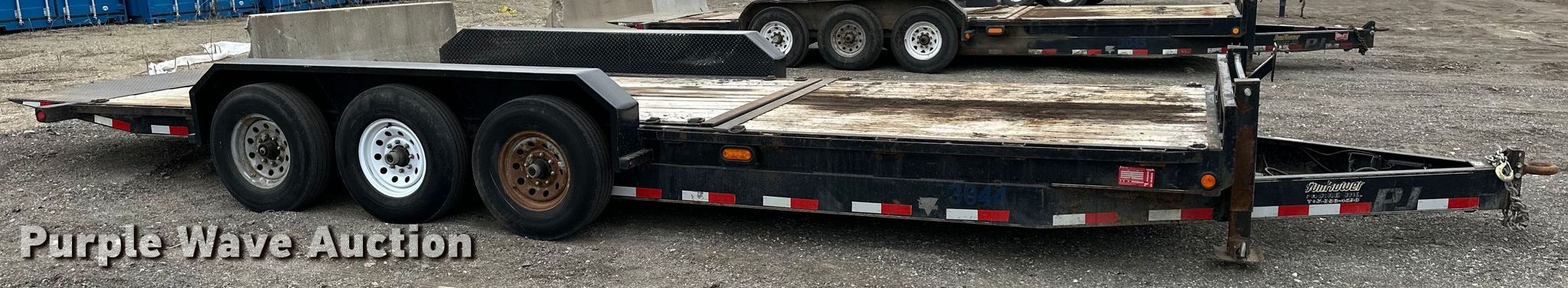 2016 PJ tilt deck equipment trailer. VIN: 4P5T72430G1249062. Dimensions Overall: 28' L x 102" W, Deck: 25' L x 83" W. Features Deck type: Wood. Chassis Hitch: Pintle, Landing gear: Dual, Suspension: Spring, Brakes: Electric, Axles: Triple, GVWR: 21,000 lbs, GAWR: 7,000 lbs. Tires Steel wheels, Size: 235/80R16. Kansas title. Sunflower Paving Inc.. 4123 Northeast Seward Avenue. Topeka, KS 66616