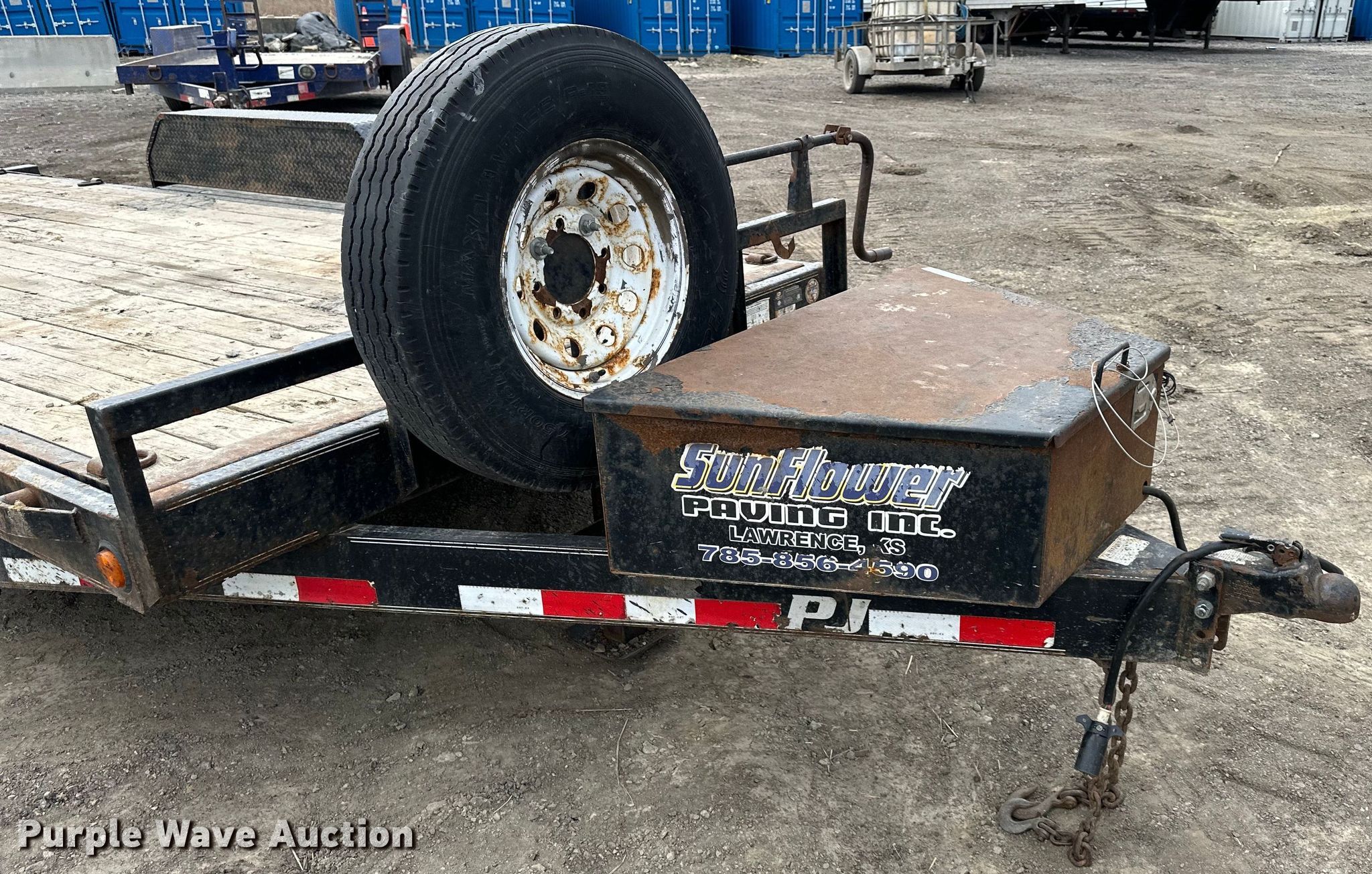 2016 PJ tilt deck equipment trailer. Dimensions. Overall: 24' L x 102" W, Deck: 19' L x 83" W. Features Deck type: Wood. Chassis Ball hitch: 2 5/16", Landing gear: Single, Suspension: Spring, Brakes: Electric, Axles: Tandem. Tires Steel wheels, Size: 235/80R16. Kansas title. Title distribution may be delayed up to 14 days from verification of funds. Sunflower Paving Inc.. 4123 Northeast Seward Avenue. Topeka, KS 66616
