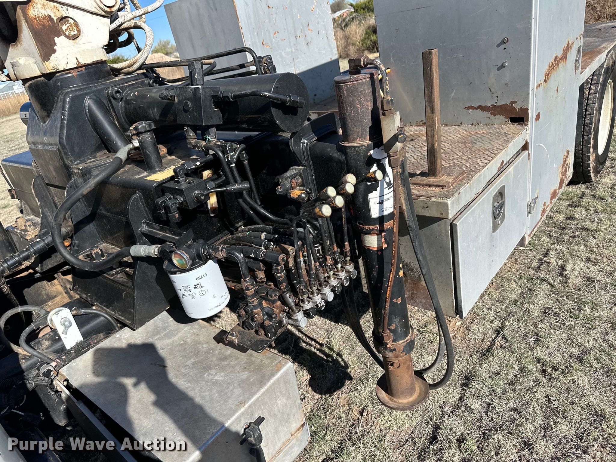 1997 Freightliner FL80 crane truck. Miles: 53,982 on odometer, Hours: 4,321 on meter, VIN: 1FV6JJBB7VL572995. Engine Caterpillar 3126, Displacement: 7.2L, Cylinders: 6, Fuel type: Diesel. Transmission Automatic. Chassis Axles: Single, Suspension: Spring, Brakes: Air, GVWR: 36,220 lbs. Interior AC, Heat, Cruise control. Features Flatbed 16' 9" L x 96" W, Crane Boom Telescopic, Sections: 4, Boom controls Ground.. Tires Size: 11R22.5. Kansas title. Title distribution may be delayed up to 14 days from verification of funds. CH Welding & Construction. Stratford, TX 79084