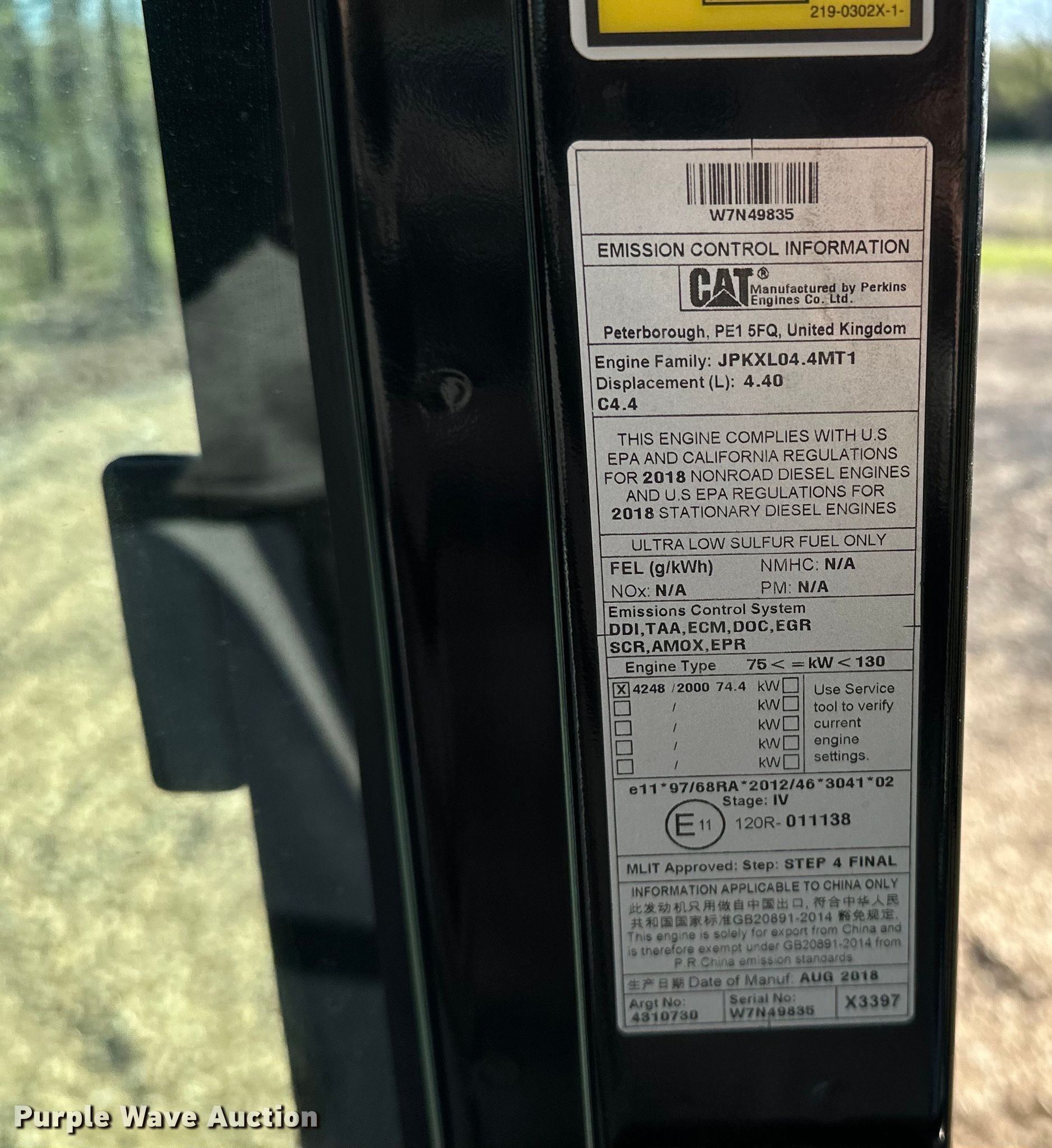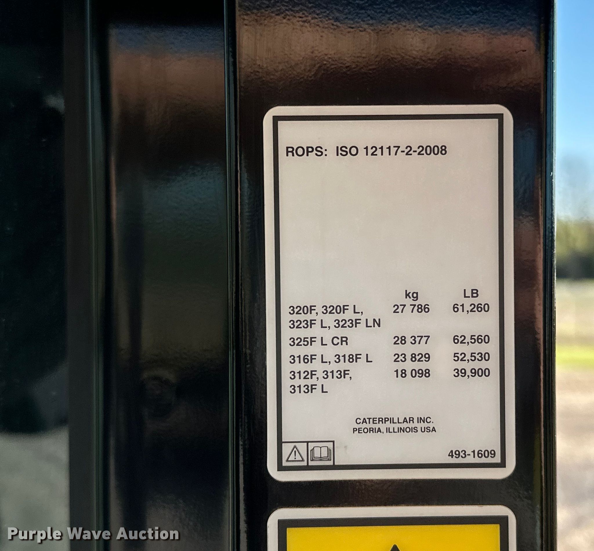 2019 Caterpillar 313FL excavator. Hours: 2,135 on meter, Serial: CAT0313FTDJE10553. Engine Caterpillar C4.4 Acert, Serial: W7N49835, Displacement: 4.4L, Cylinders: 4, Fuel type: Diesel. Transmission Hydrostatic, Two speed travel. Operators station Enclosed cab, AC, Heat, Pattern changer. Features Auxiliary hydraulics Standard, Two-way, Boom Standard, Stick Stick length: 9', Thumb: Hydraulic Caterpillar, Bucket Caterpillar, Width: 40", Teeth: 7. Tracks Width: 27.5", Steel, Grouser pads: Triple. Gates Excavation & Hauling, Inc... Vian, OK 74962