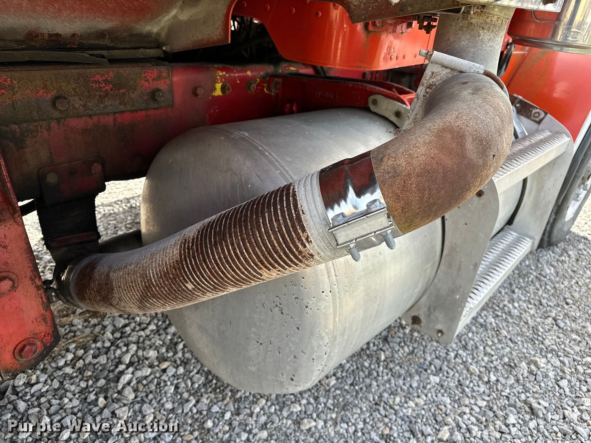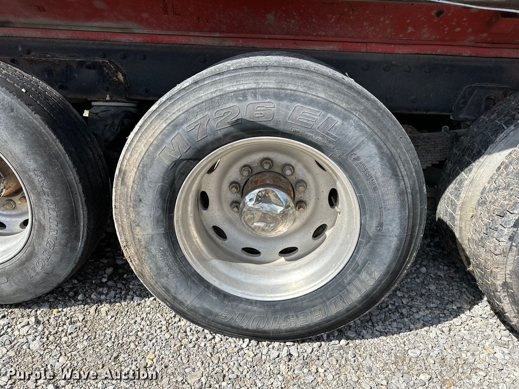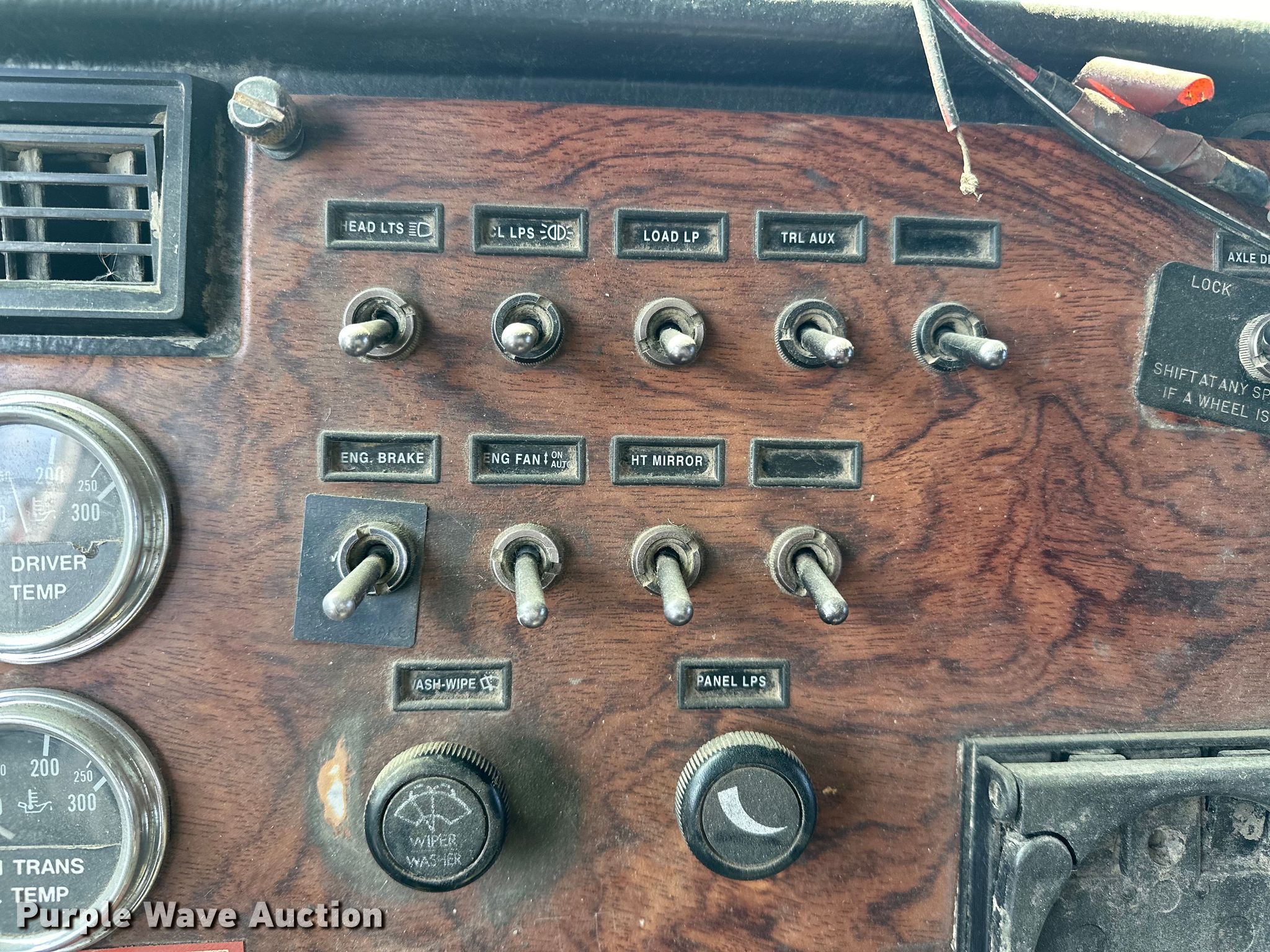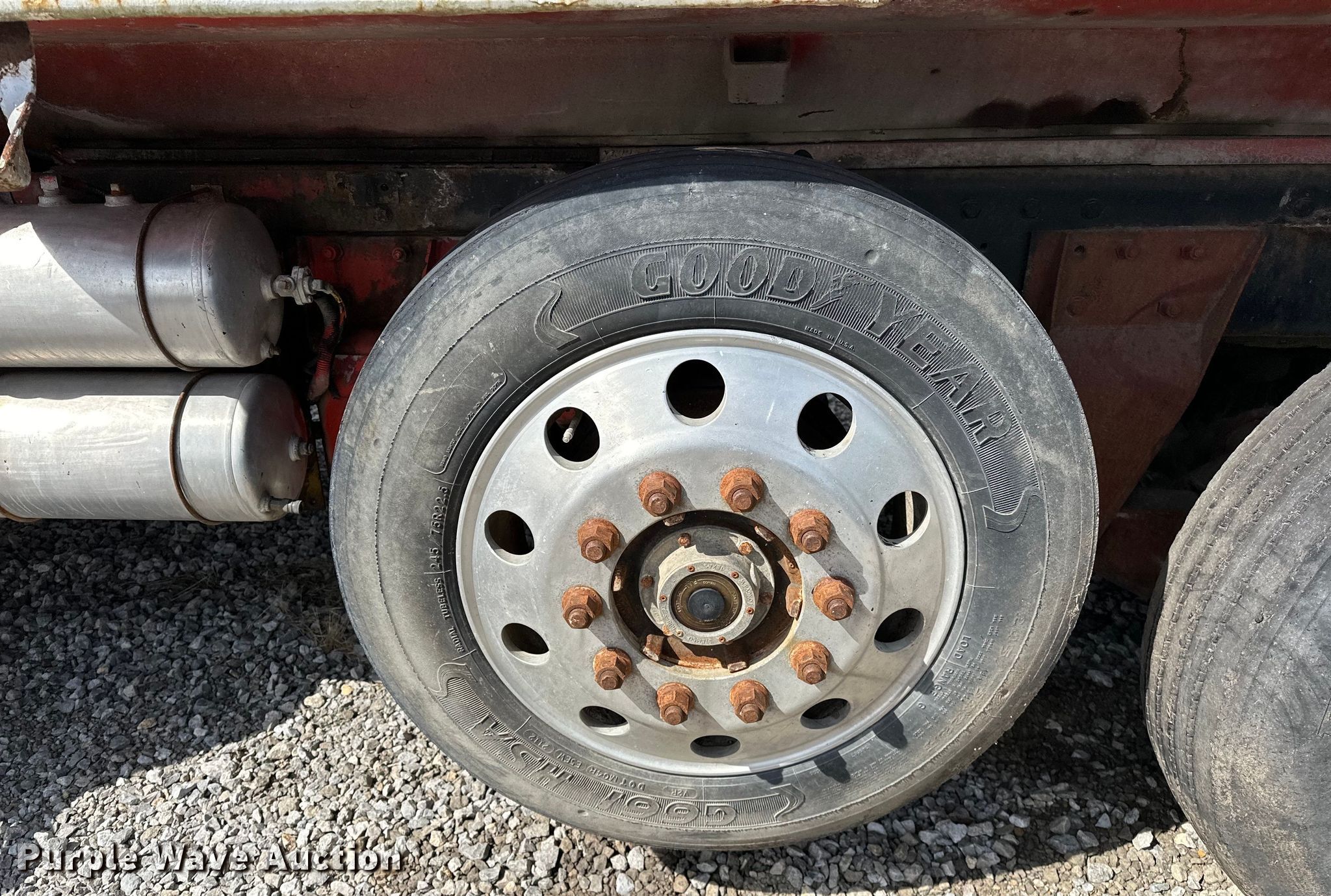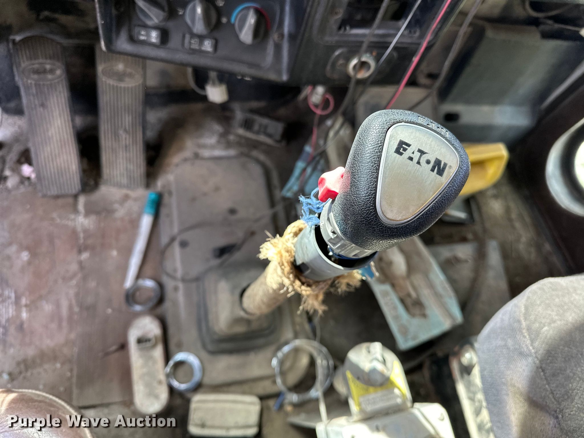 1996 Peterbilt 357 dump truck. Miles: 857,893 on odometer, VIN: 1XPALB0X2TN406324. Engine Caterpillar, Displacement: 14.6L, Cylinders: 6, Fuel type: Diesel, Engine brake. Transmission Eaton Fuller, Manual, Speed: 13. Chassis Axles: 4, Pusher axle, Differential lock: Inter-axle, Suspension: Spring over walking beam, Brakes: Air, PTO. Interior AC, Heat, Heated mirrors, Power windows. Features Dump bed 18' L x 95" W, Side height: 46", Bed type: Barrel, Roll tarp, Ram: Single, End gate: Air operated. Tires Front: 385/65R22.5, Rear: 11R24.5, Lift axle: 11R24.5. Notes Roll tarp net ripped, Windshield chipped or cracked, Non-operational unit. Oklahoma title. Title distribution may be delayed up to 14 days from verification of funds. 9600 S 4060 Rd. Talala, OK 74080