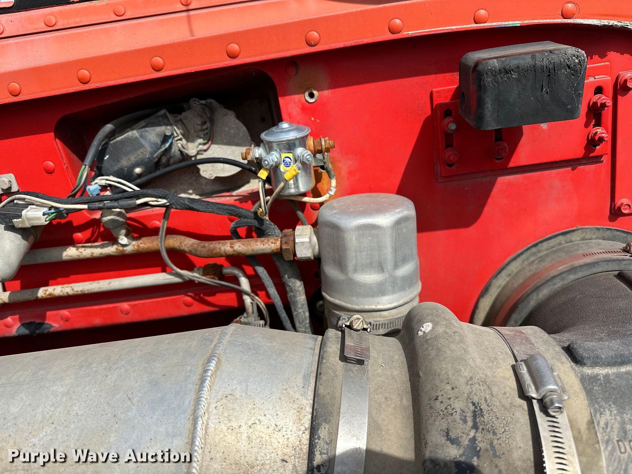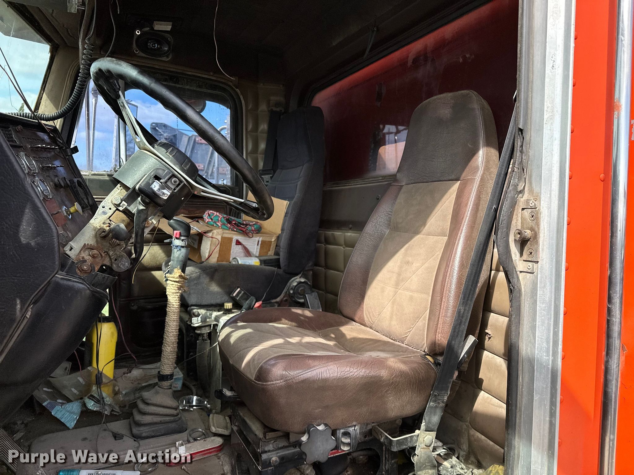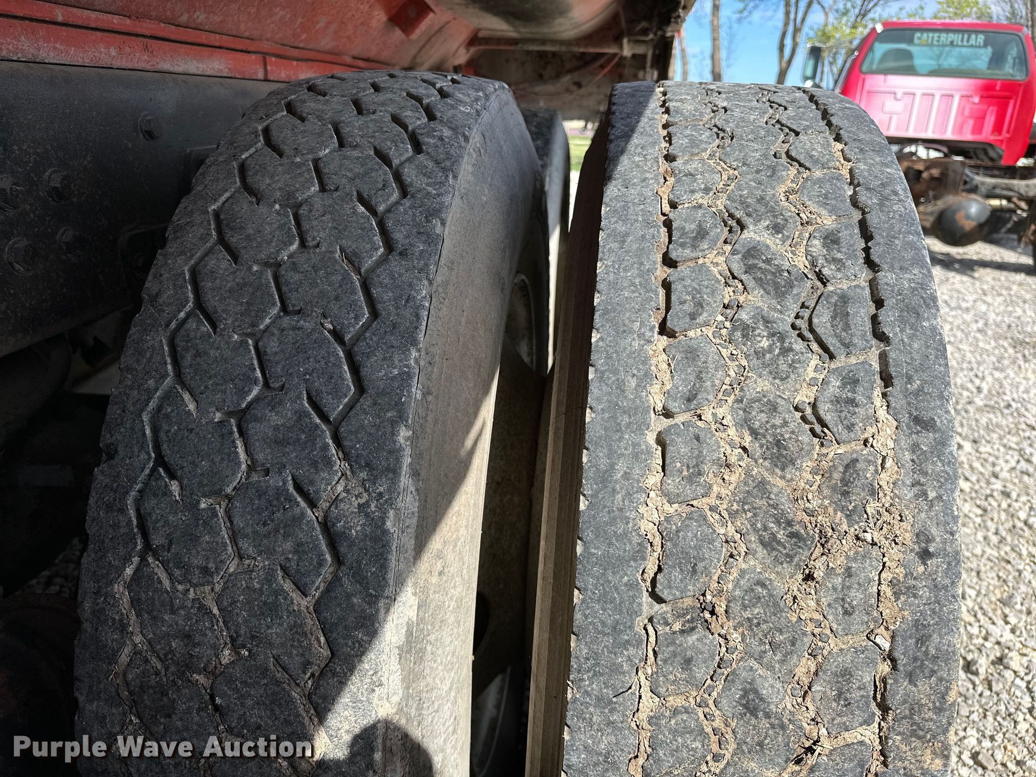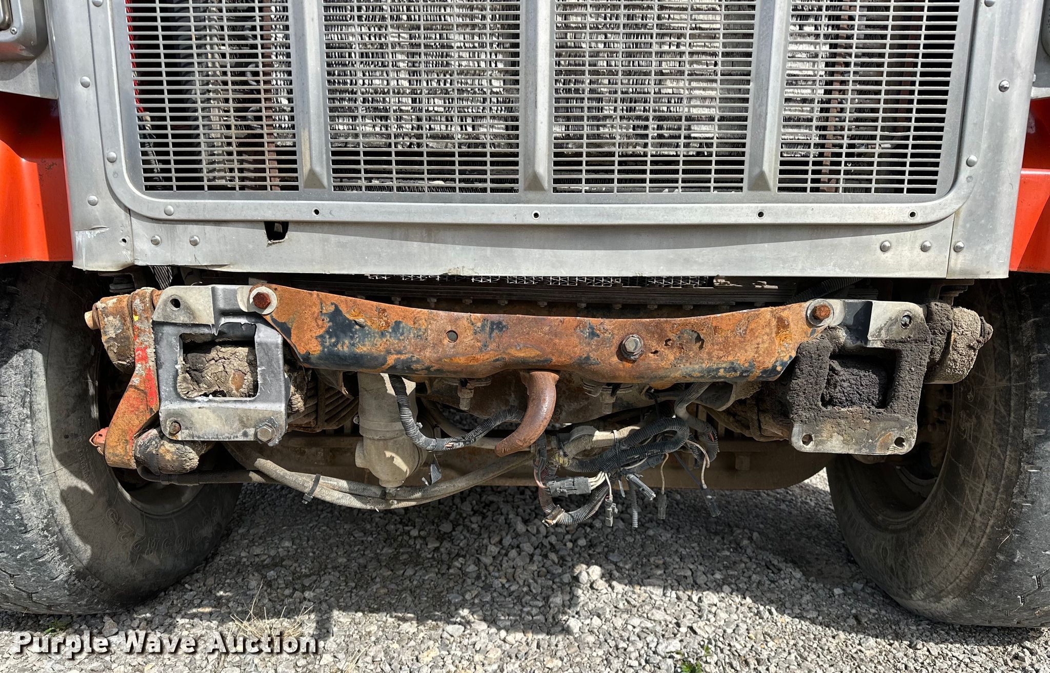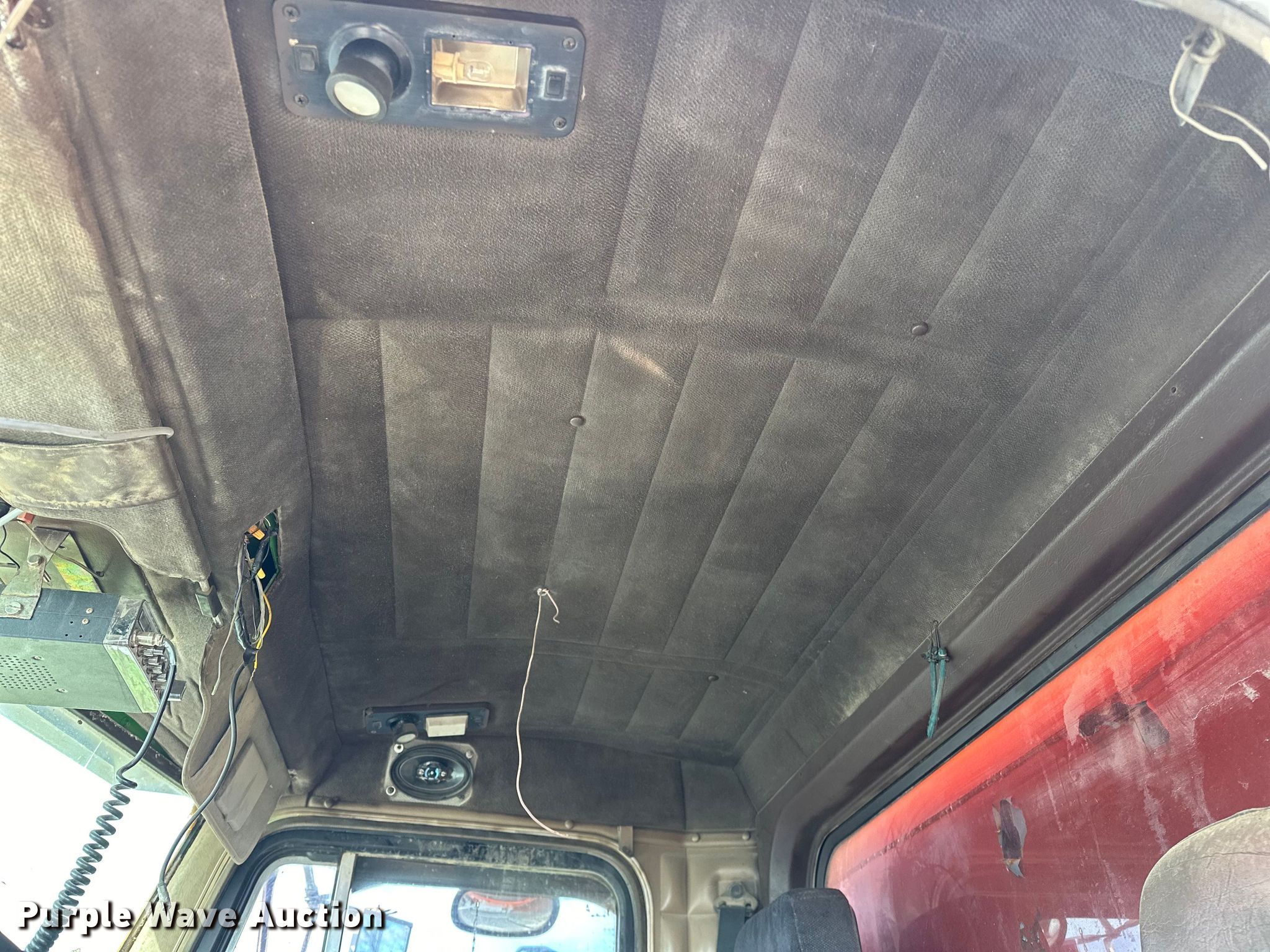 1996 Peterbilt 357 dump truck. Miles: 857,893 on odometer, VIN: 1XPALB0X2TN406324. Engine Caterpillar, Displacement: 14.6L, Cylinders: 6, Fuel type: Diesel, Engine brake. Transmission Eaton Fuller, Manual, Speed: 13. Chassis Axles: 4, Pusher axle, Differential lock: Inter-axle, Suspension: Spring over walking beam, Brakes: Air, PTO. Interior AC, Heat, Heated mirrors, Power windows. Features Dump bed 18' L x 95" W, Side height: 46", Bed type: Barrel, Roll tarp, Ram: Single, End gate: Air operated. Tires Front: 385/65R22.5, Rear: 11R24.5, Lift axle: 11R24.5. Notes Roll tarp net ripped, Windshield chipped or cracked, Non-operational unit. Oklahoma title. Title distribution may be delayed up to 14 days from verification of funds. 9600 S 4060 Rd. Talala, OK 74080