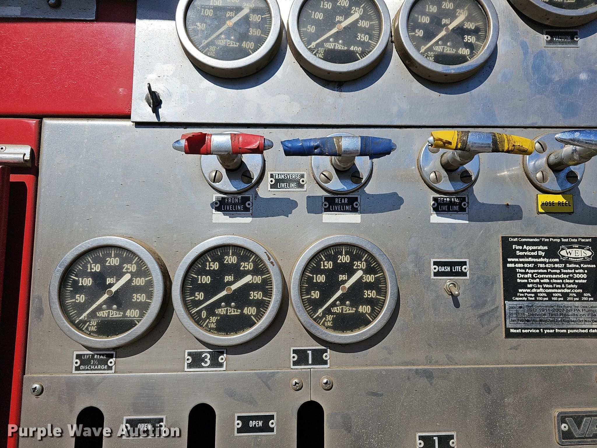 1985 Van Pelt Spartan fire truck. Miles: 139,526 on odometer, Hours: 8,872 on meter, VIN: S29XT6F0XFC443748, Unit #: 679. Engine Detroit Diesel 6V92, Fuel type: Diesel, HP: 330, Engine brake. Transmission Automatic. Chassis Four wheel drive, Axles: Single, Suspension: Spring, Brakes: Air, GVWR: 37,180 lbs, Wheelbase: 176". Interior Heat. Features Fire truck body Elevated deck gun 1,008 gpm, Pump 1,008 gpm, Hose Hose length: 100', PA/ siren controls, Lombardini auxiliary pump Hard to start, Hale main pump Model: QSMFHD12520, Serial: 50813, Single stage, Electric primer, Tank capacity: 500 gallons, 14' roof ladder, Approx. 40-45' extension ladder Sections: 3. Tires Size: 315/80R22.5, Brand: Bridgestone, Brand: BF Goodrich. Notes Equipment, tools and hard suction hoses not included, Not set up for AC, Auxiliary pump issues, fuel leak, Main pump issues Valve sticks and leaks, Seal leaks. Kansas title. Title distribution may be delayed up to 14 days from verification of funds. Mitchell County Rural Fire District #3. Beloit, KS 67420