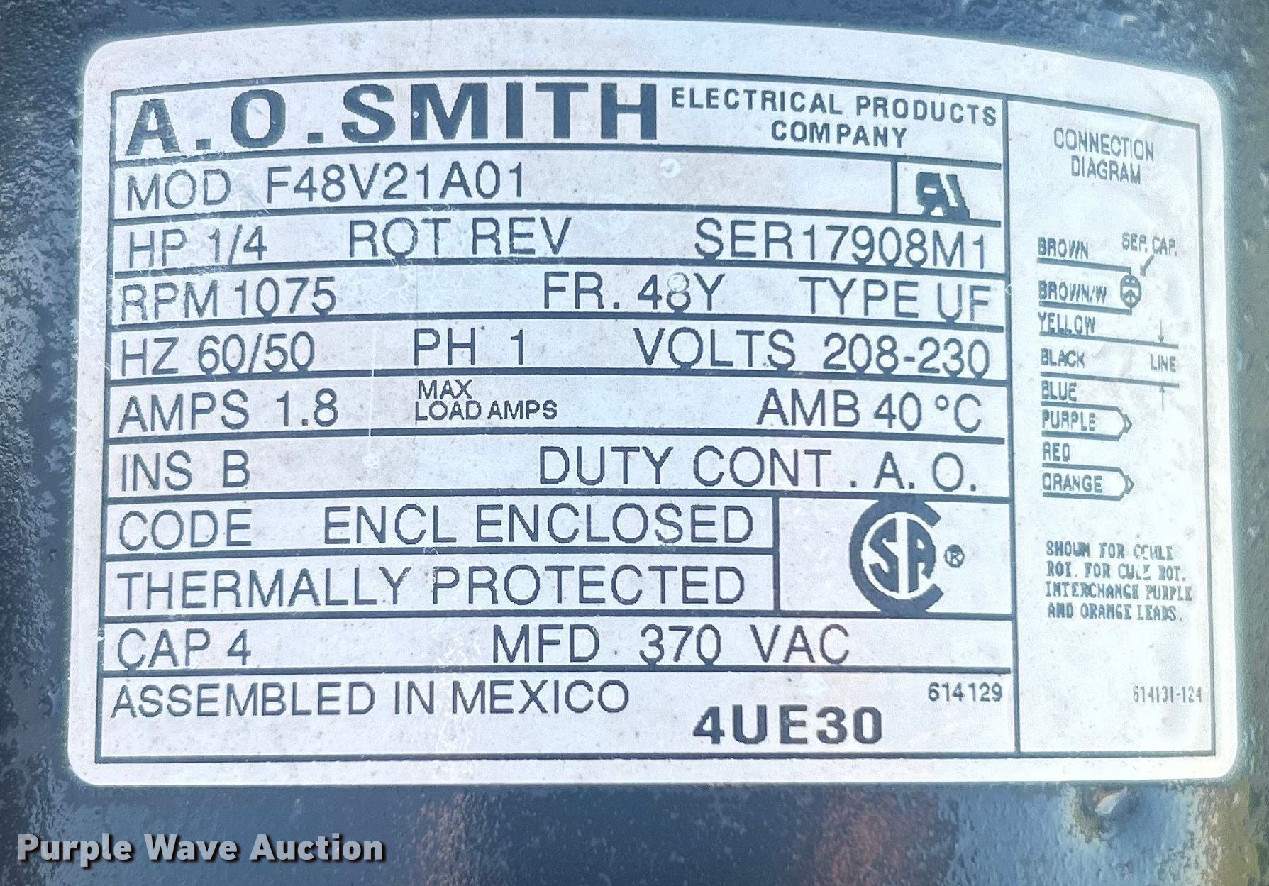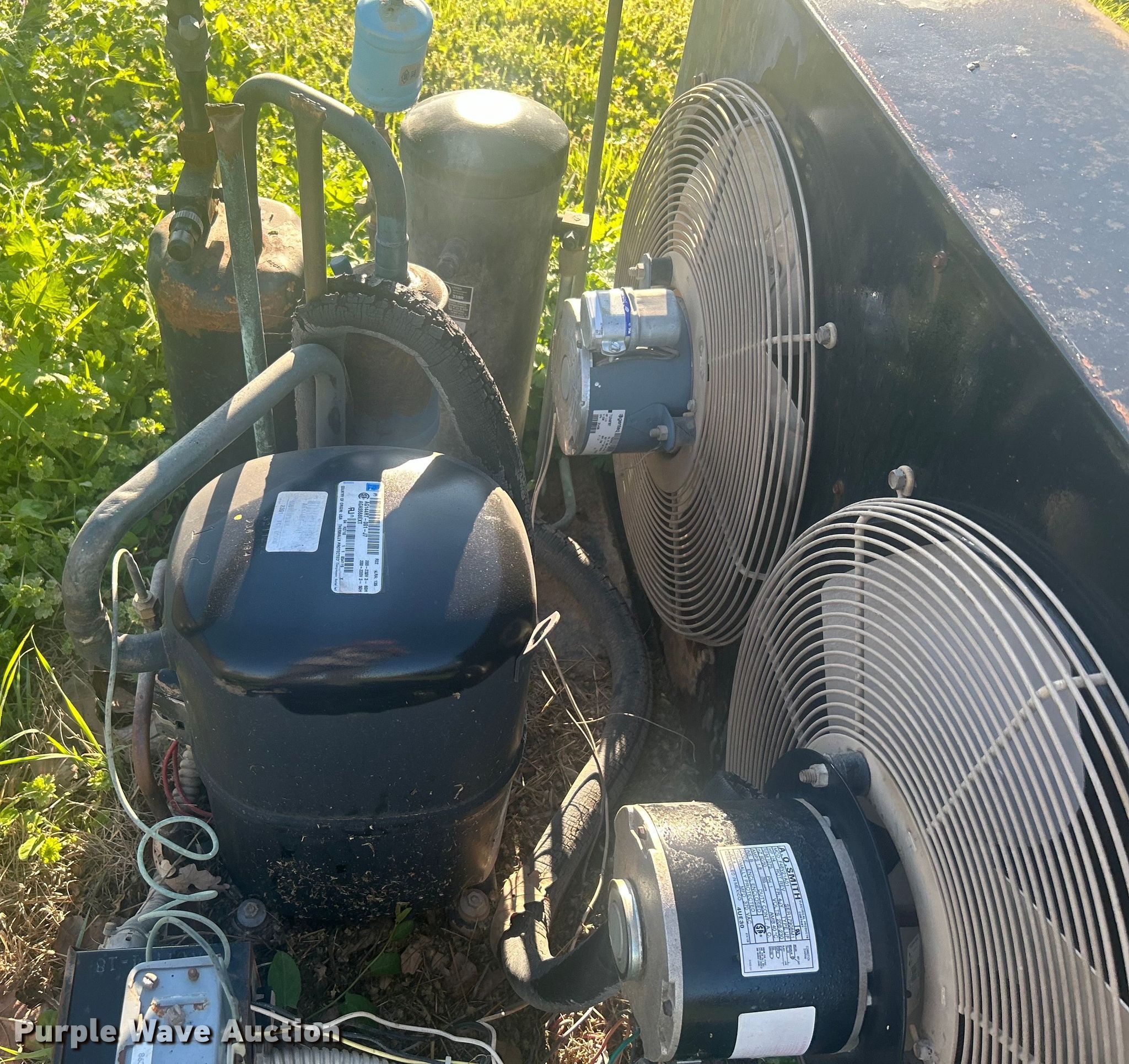 Alfa Laval Model AC3000 Stainless steel milk tank. Serial: 82718, Sale #: 2439-KP. Features Capacity: 3,000 gallons, (2) compressors, (4) electric fans Phase: Single, HP: 1/4, Volts: 230, Wash system Phase: Single. Oklahoma State University. 2624 West McElroy Road. Stillwater, OK 74075