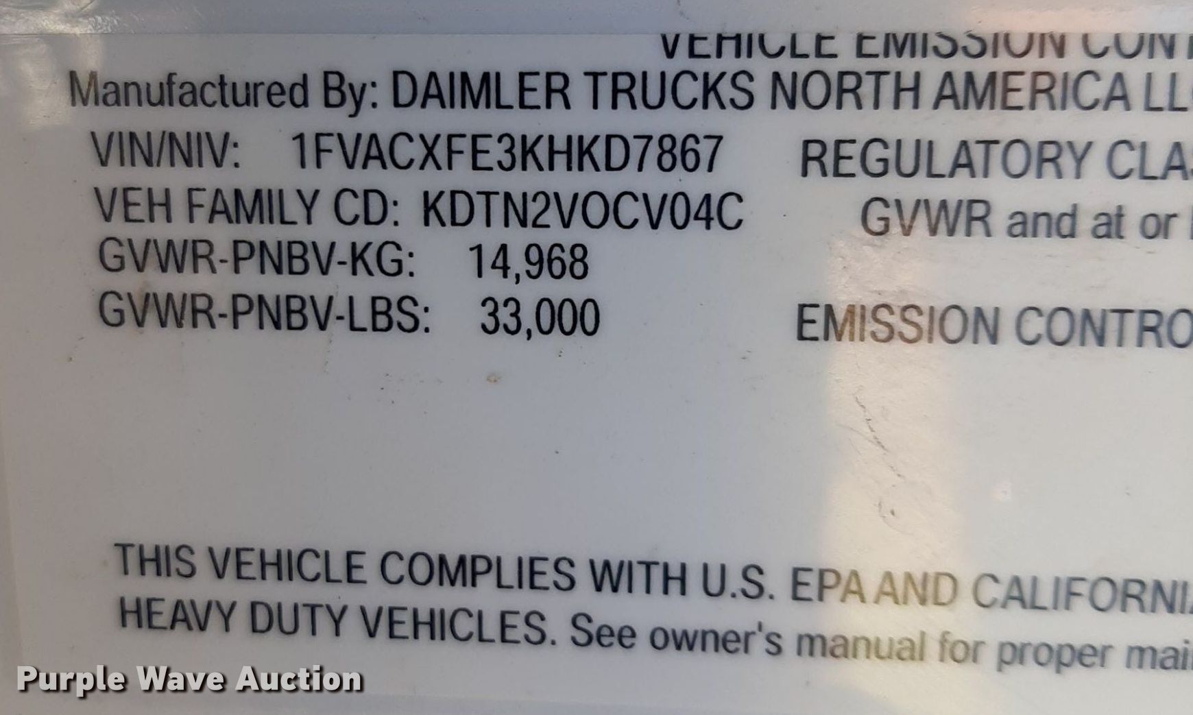 Purple Wave is selling a used Refuse Truck in Kansas. This item is a 2019 Freightliner Business Class M2 106 refuse truck with the following: Miles: 100,174 on odometer, Hours: 7,703 on meter, VIN: 1FVACXFE3KHKD7867