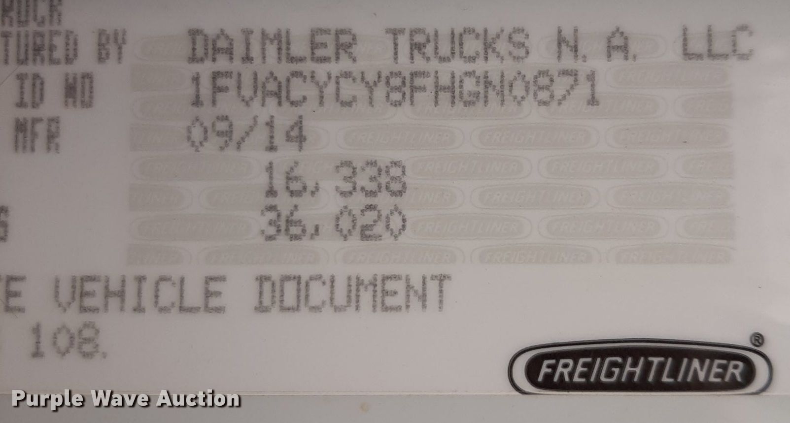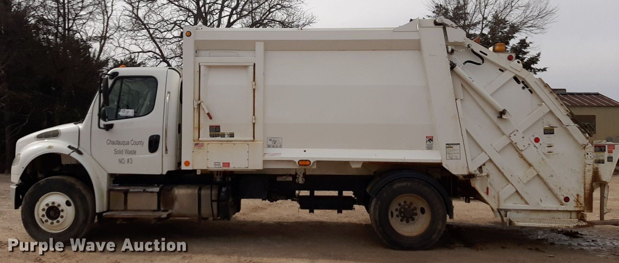 Purple Wave is selling a used Refuse Truck in Kansas. This item is a 2015 Freightliner Business Class M2 106 refuse truck with the following: Miles: 154,607 on odometer, Hours: 10,010 on meter, VIN: 1FVACYCY8FHGN0871