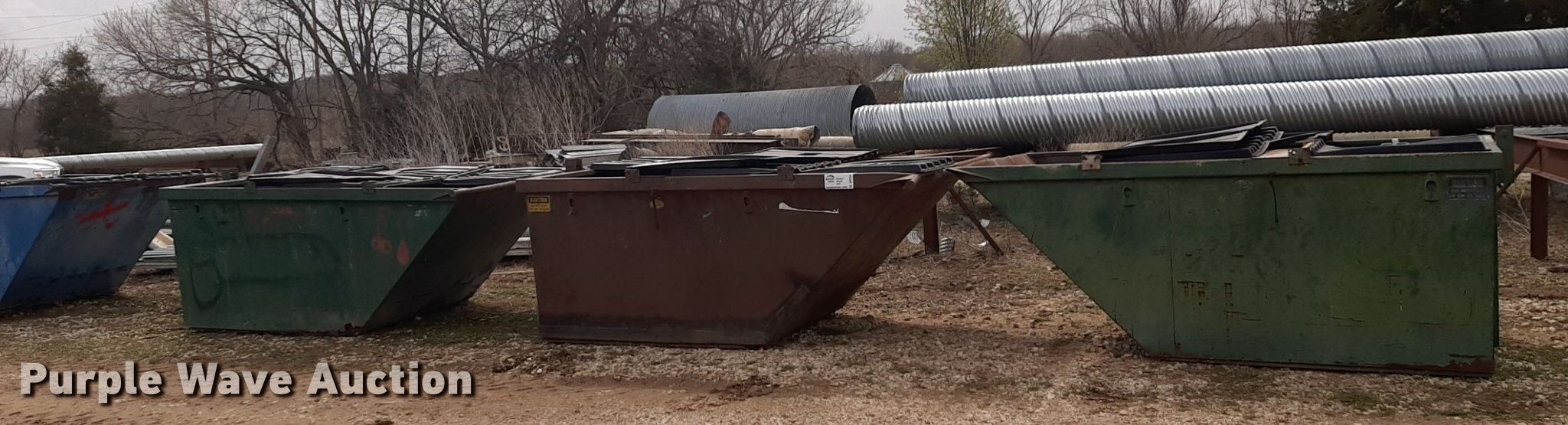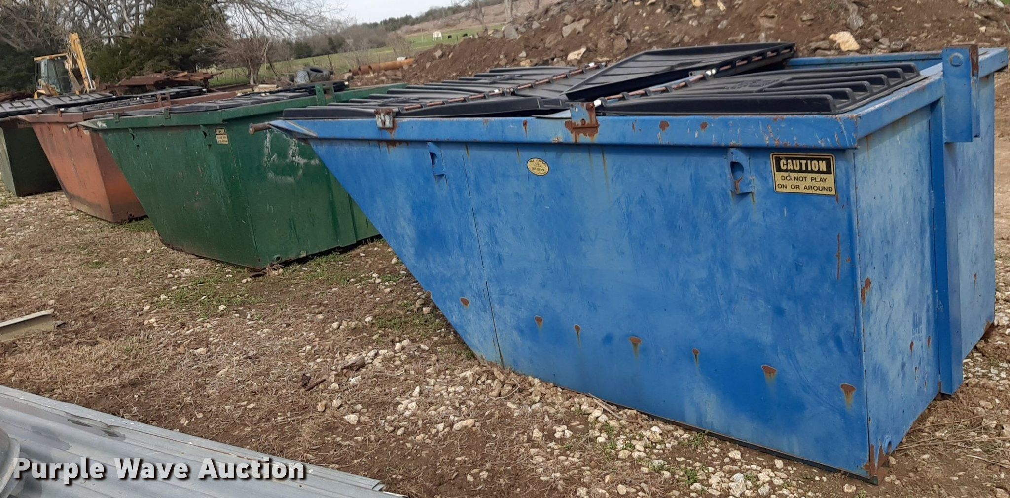 Purple Wave is selling a used Refuse or Compaction Equip. in Kansas. This item is a (4) dumpsters with the following: Capacity: Approx. 6 cu. yds.