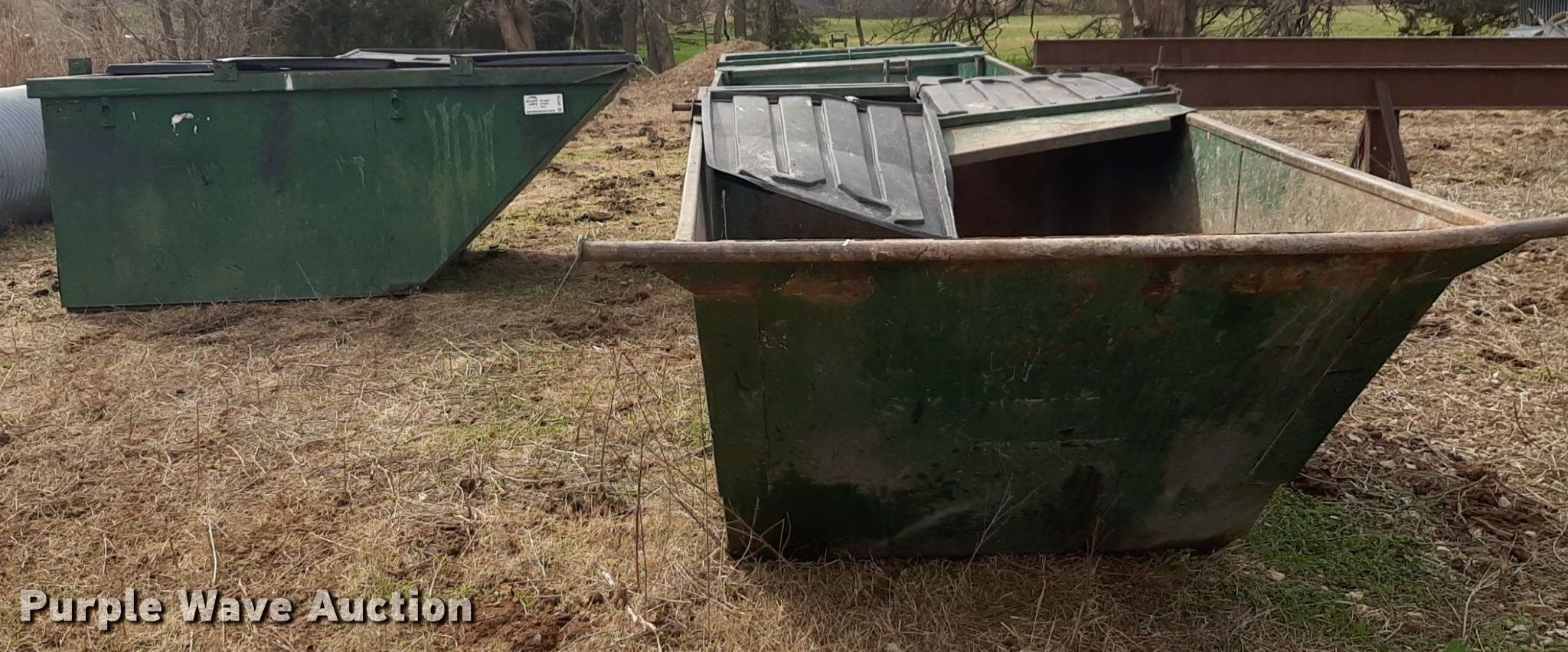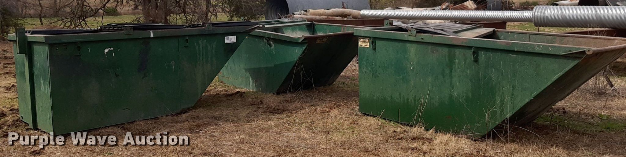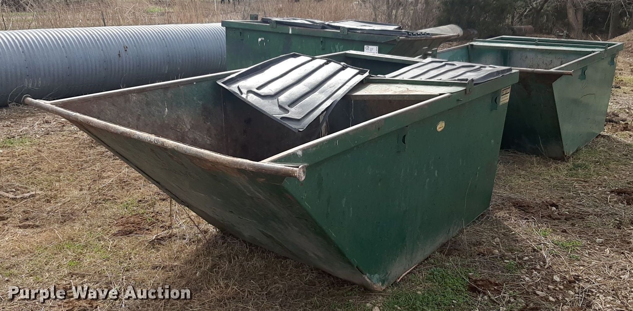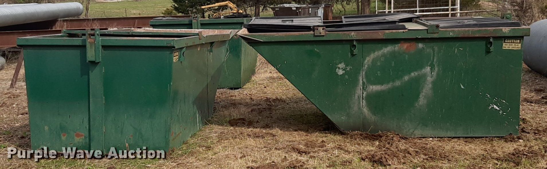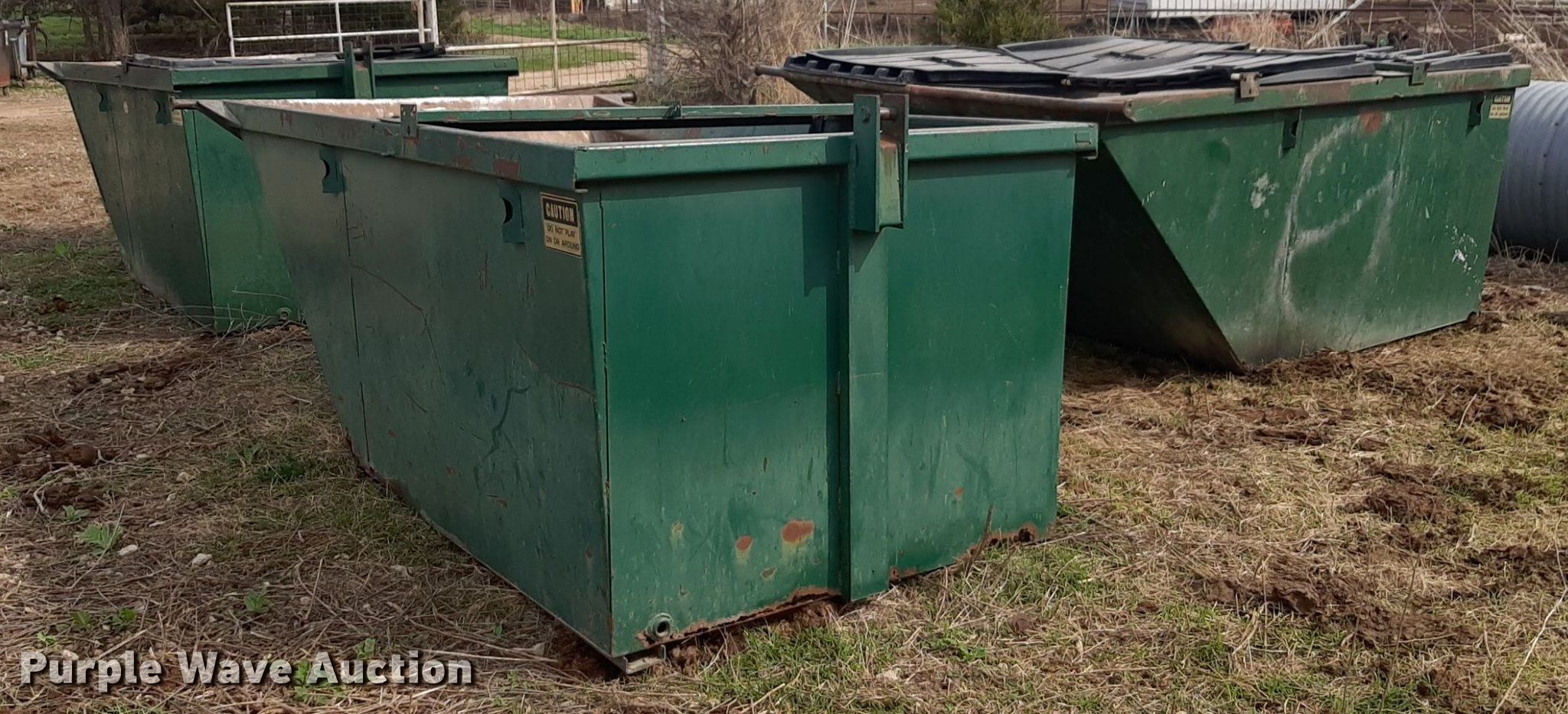 Purple Wave is selling a used Refuse or Compaction Equip. in Kansas. This item is a (3) dumpsters with the following: Capacity: Approx. 6 cu. yds.