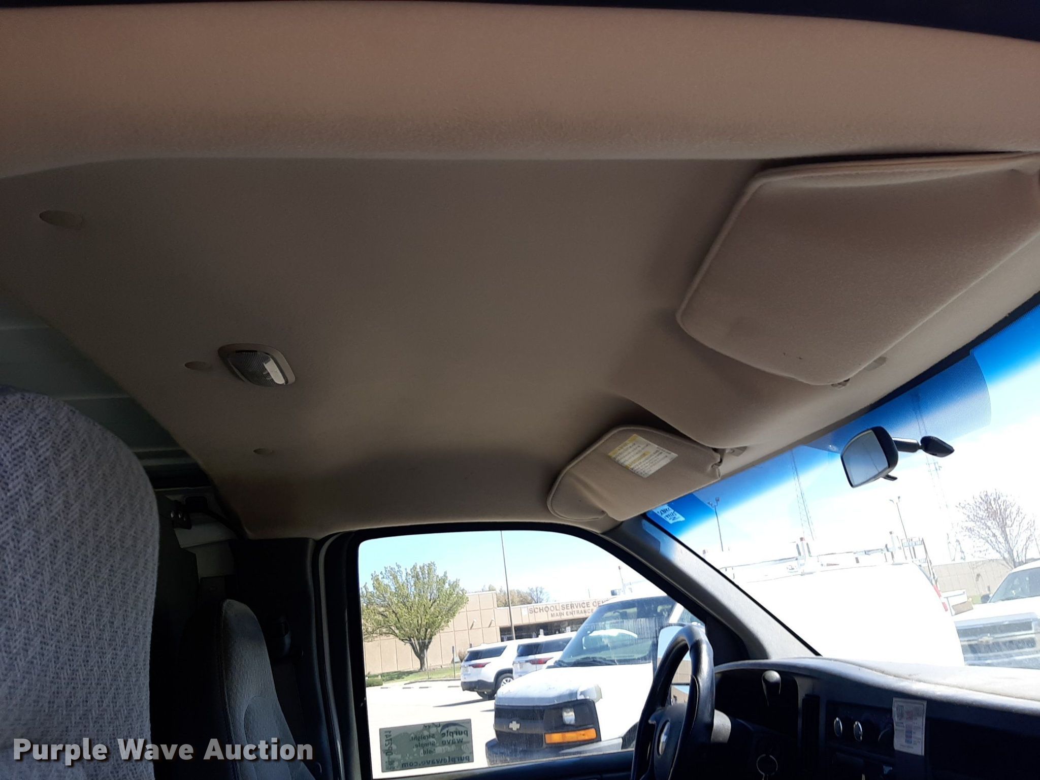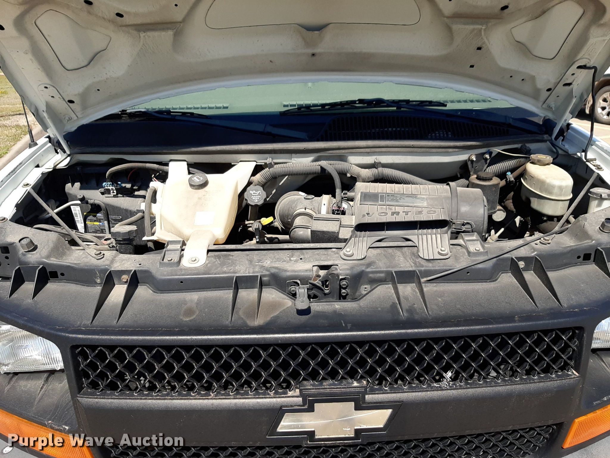 2009 Chevrolet Express 2500 van. Miles: 141,822 on odometer, VIN: 1GCGG25K591155442, Unit #: 20-459. Engine Displacement: 6.0L V8 OHV, Cylinders: 8, Fuel type: Gas. Transmission Automatic. Interior AC, Heat. Tires Size: 245/75R16. Notes Dash warning indicator: TPMS. Kansas title. Wichita Public Schools - USD 259. Wichita, KS 67219