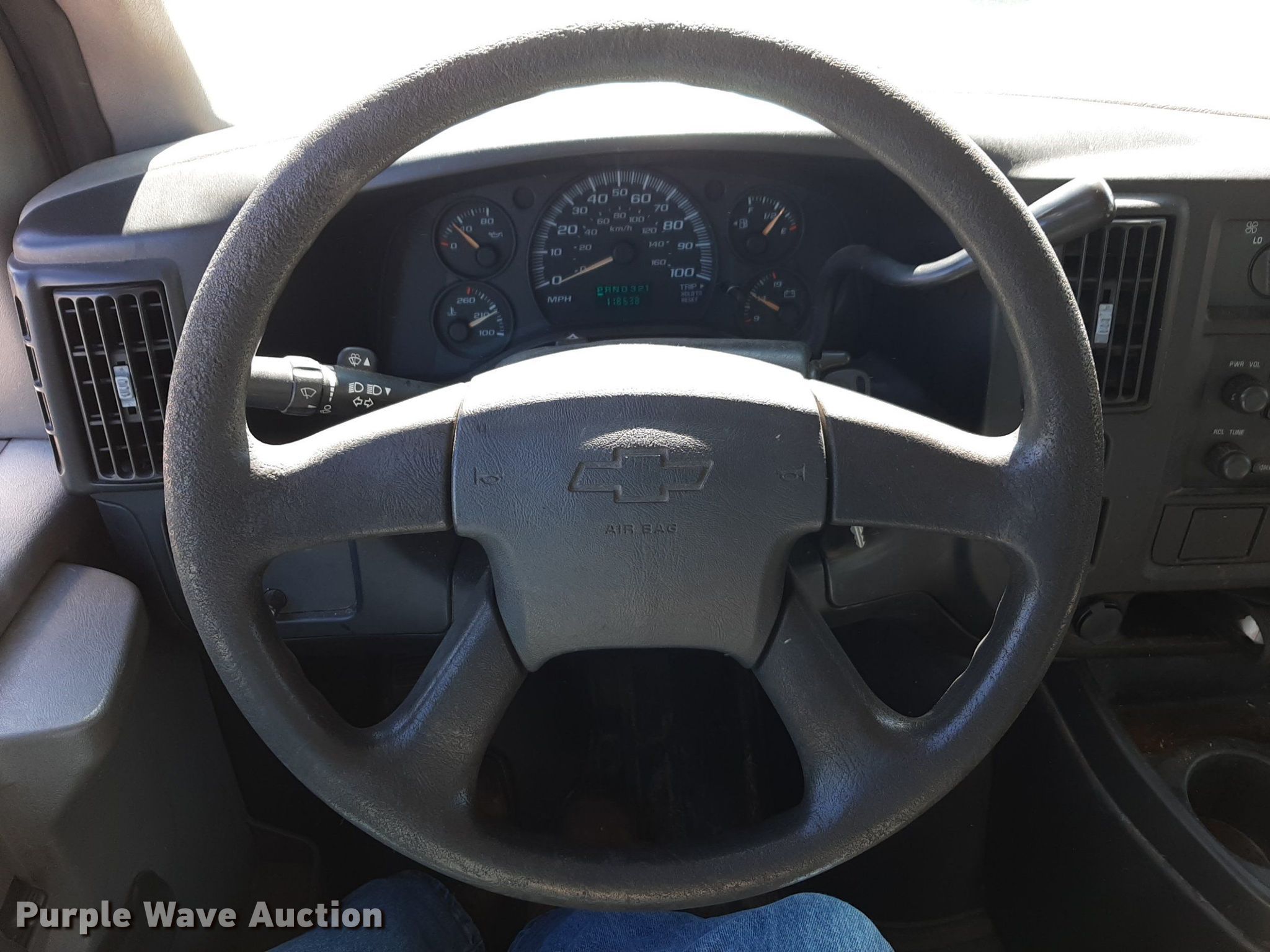 2007 Chevrolet Express 2500 van. Miles: 118,638 on odometer, VIN: 1GCGG25V771186750, Unit #: 20-424. Engine Displacement: 4.8L V8 OHV, Cylinders: 8, Fuel type: Gas. Transmission Automatic. Interior AC, Heat. Tires Size: 245/75R16. Notes Dead battery. Kansas title. Wichita Public Schools - USD 259. Wichita, KS 67219